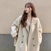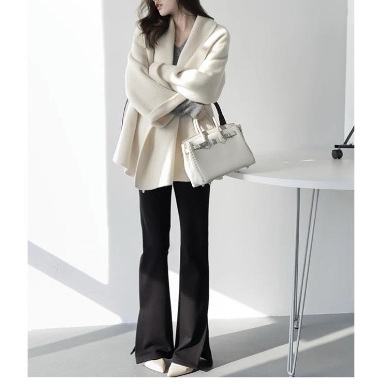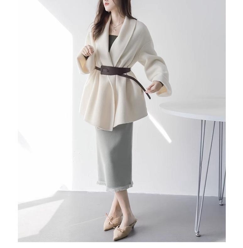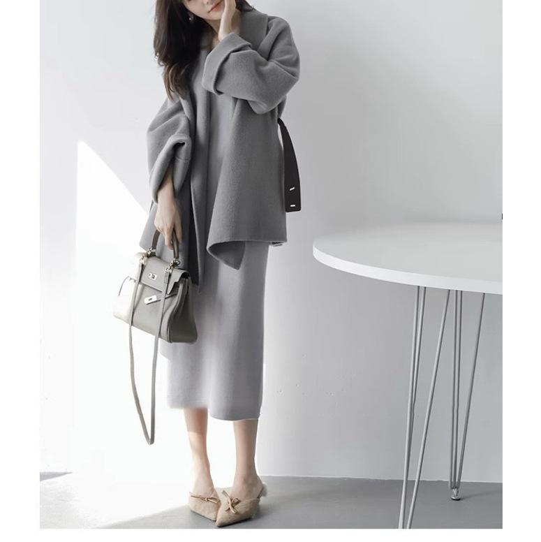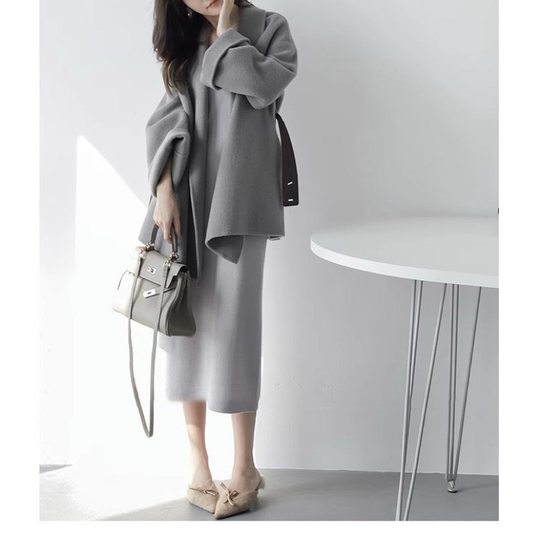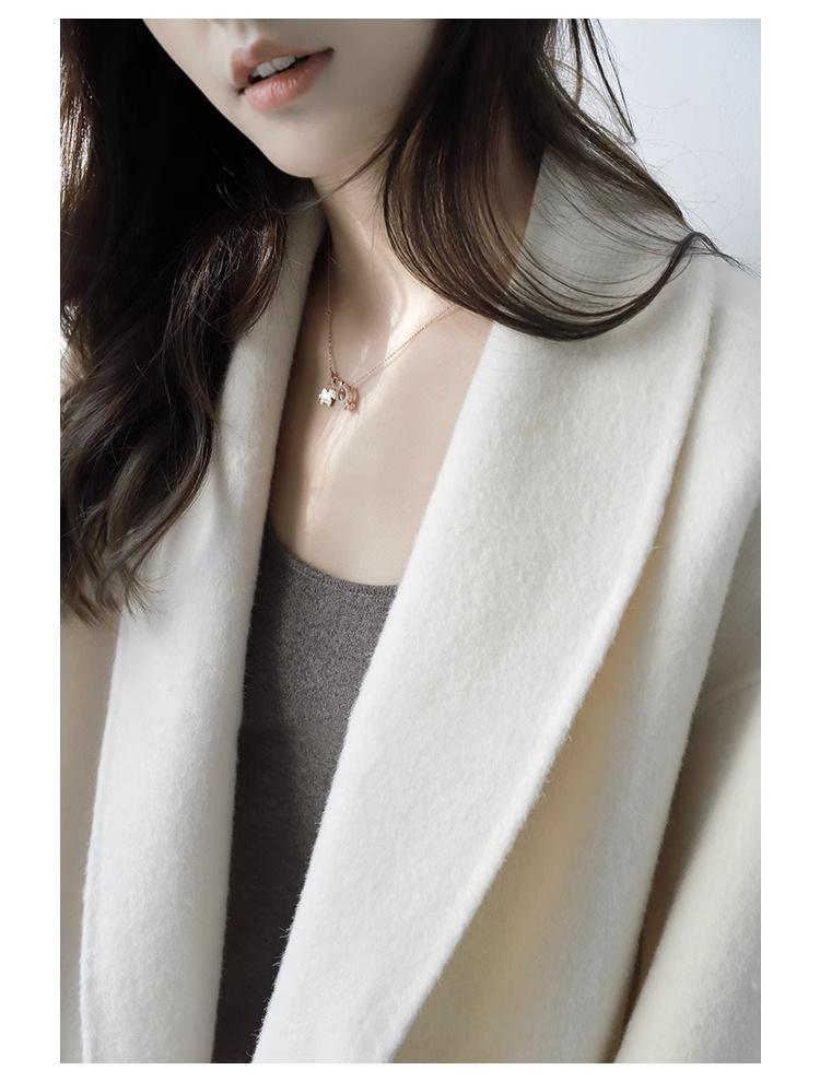 Abrigo de lana de doble cara en stock, abrigo de lana corto de temperamento invernal para mujer