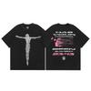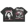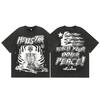 Camiseta de manga corta con lavado pesado de marca de moda hip-hop europea y americana al por mayor transfronteriza para hombres y mujeres, camiseta holgada con estampado de calle principal