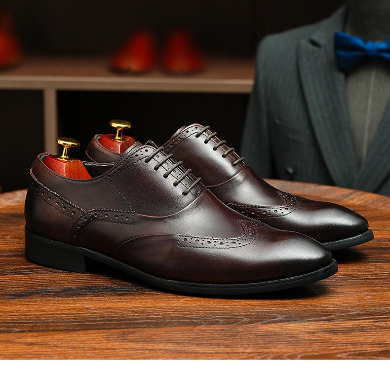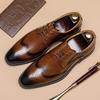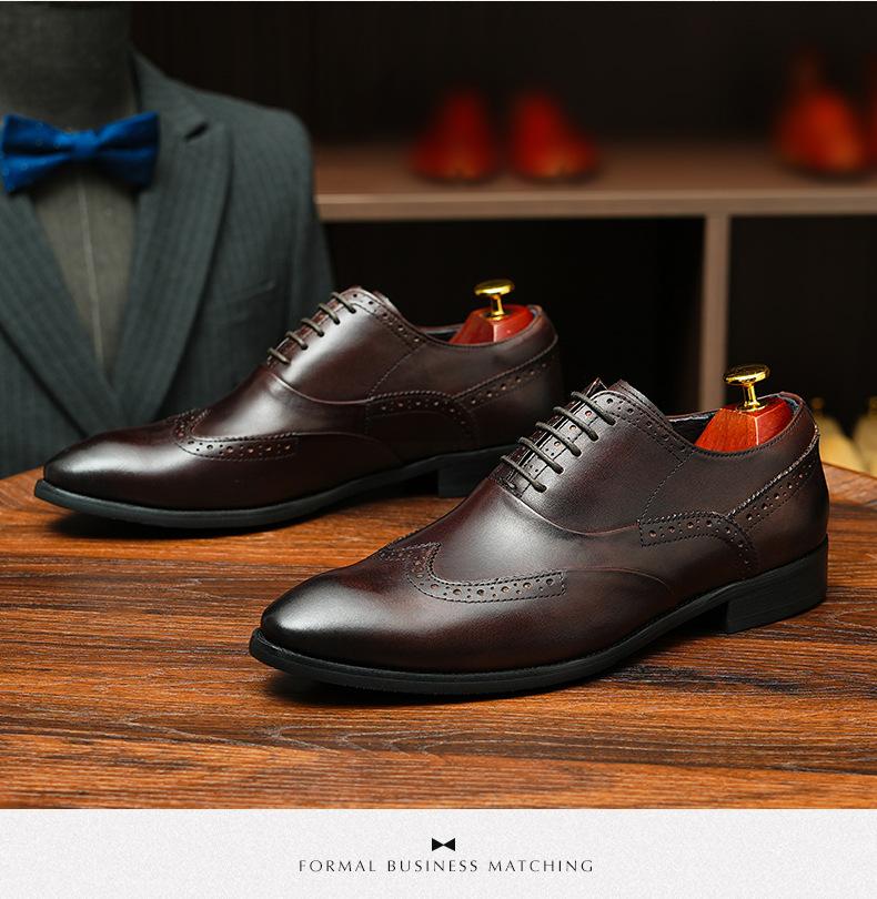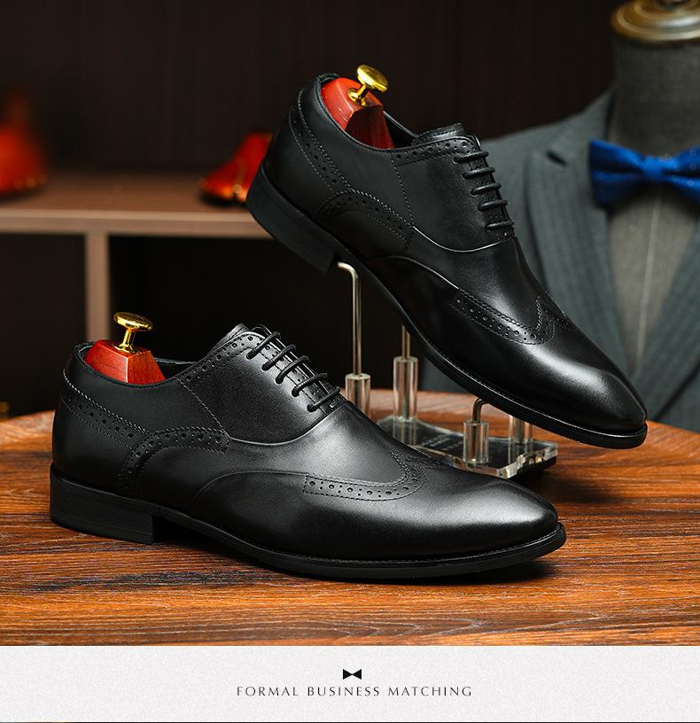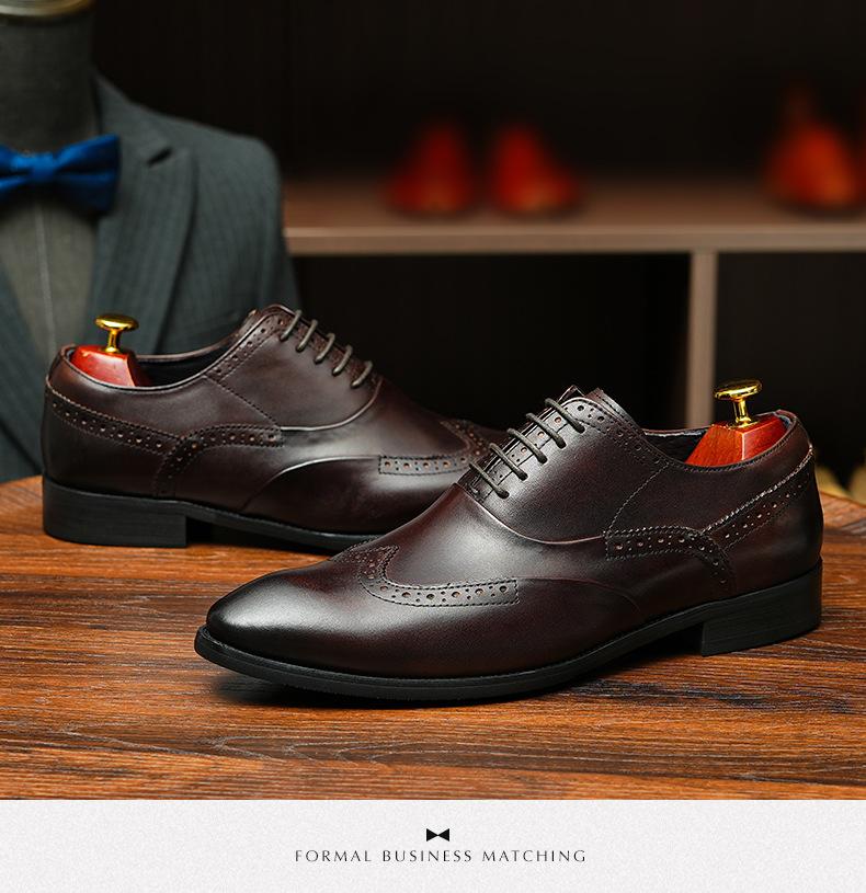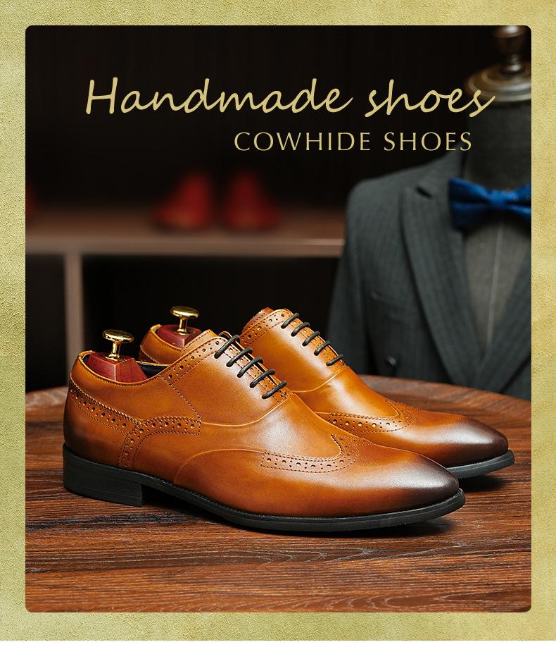 Zapatos de hombre con punta de cuero genuino, hechos a mano, con cordones y hebillas, estilo Oxford, de talla grande, para negocios y formales.