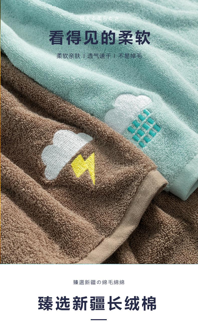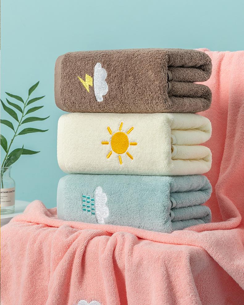 Toalla de Algodón Puro al Por Mayor Hogar Pareja Toalla Facial Clima Dibujos Animados Lindo Bordado Suave Absorbente Toalla Facial