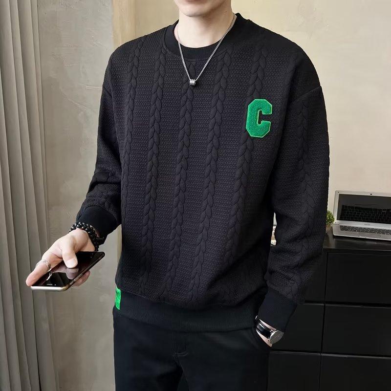 Sudadera para hombre, otoño e invierno 2023, nuevo diseño de nicho, informal, cuello redondo, manga larga, tops para hombre, camisa de fondo