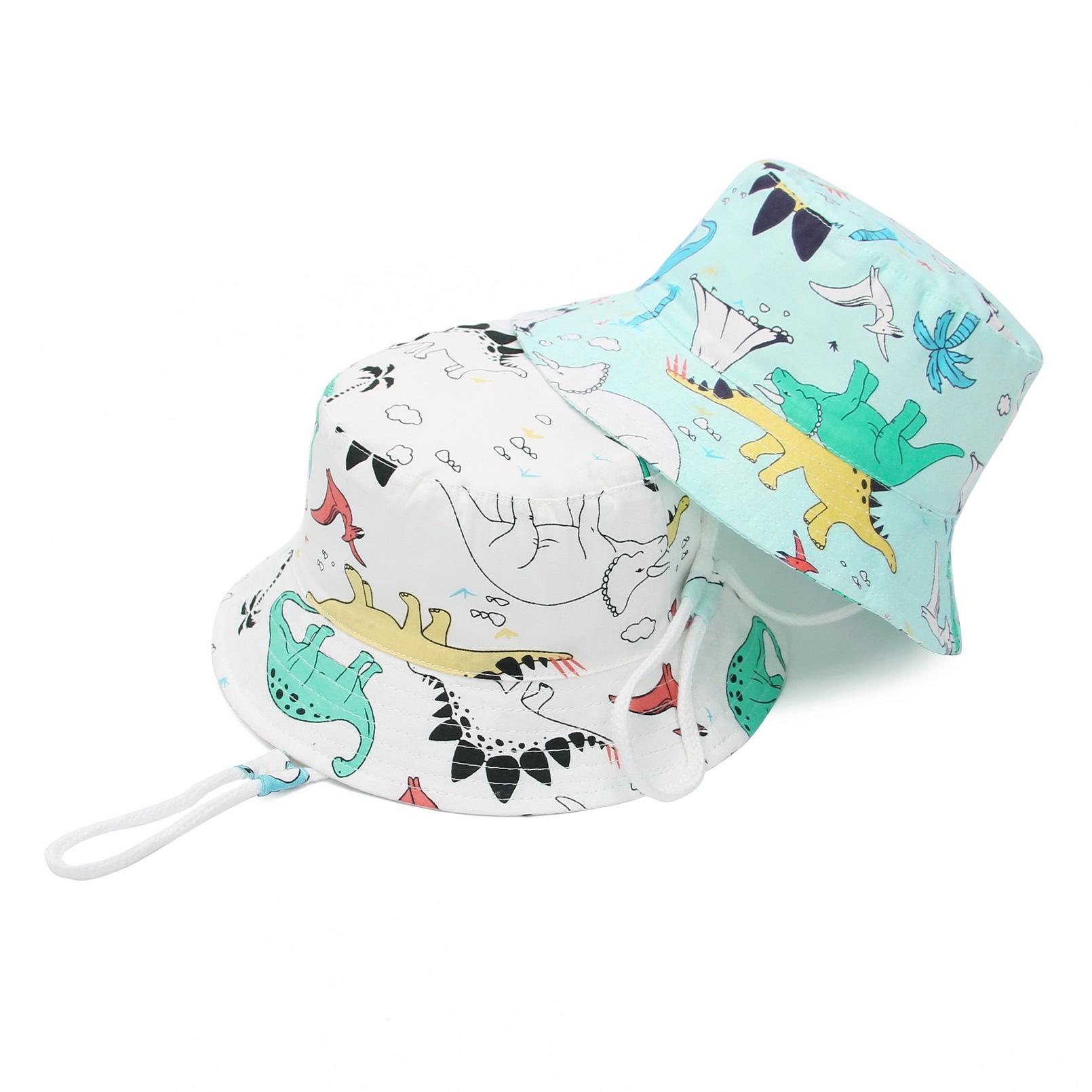 Sombrero de pescador con estampado de dinosaurios de algodón para primavera y verano para niños, sombrero de sol para exteriores, protector solar, sombrero de lavabo, venta al por mayor