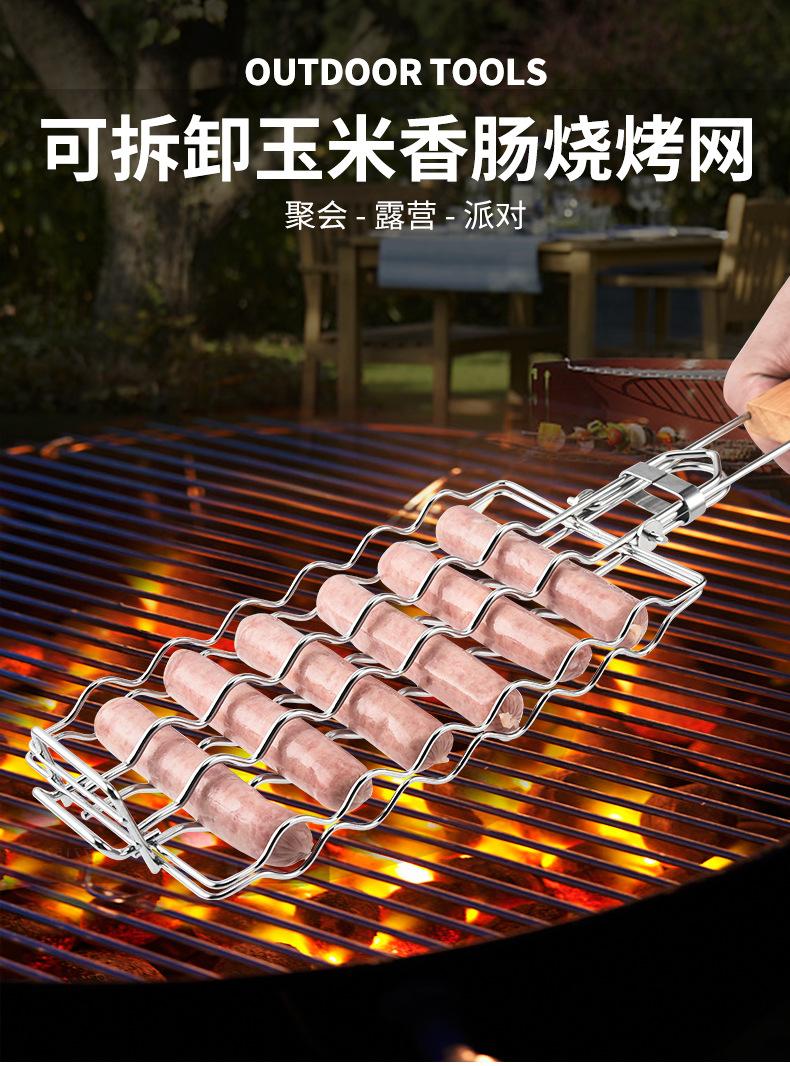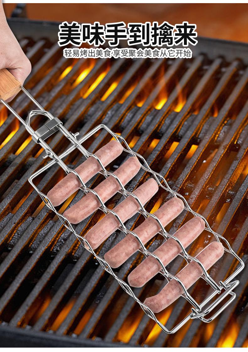 Red para barbacoa de salchichas herramienta para barbacoa acero inoxidable 304 parrilla para barbacoa de hot dogs desmontable plegable portátil clip de red para barbacoa