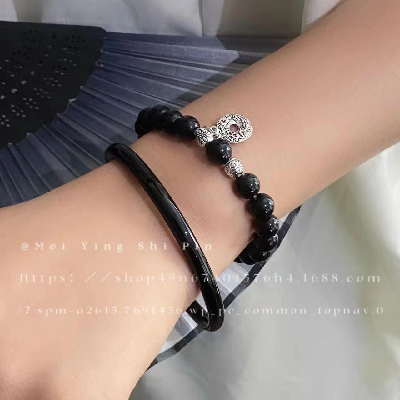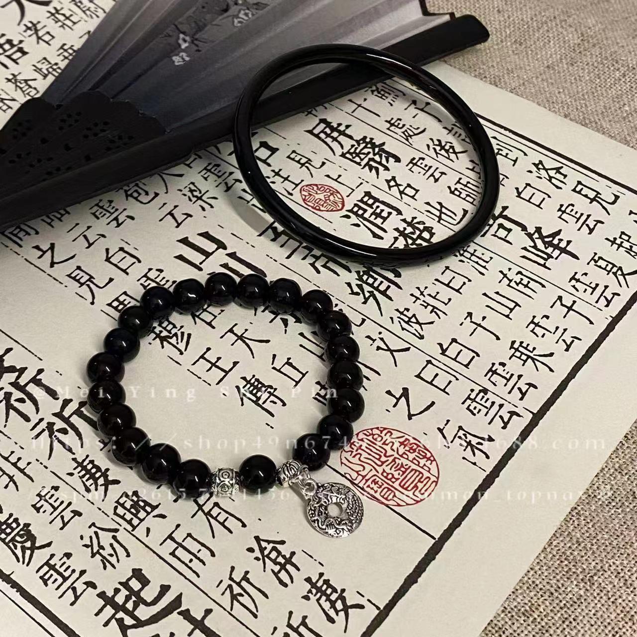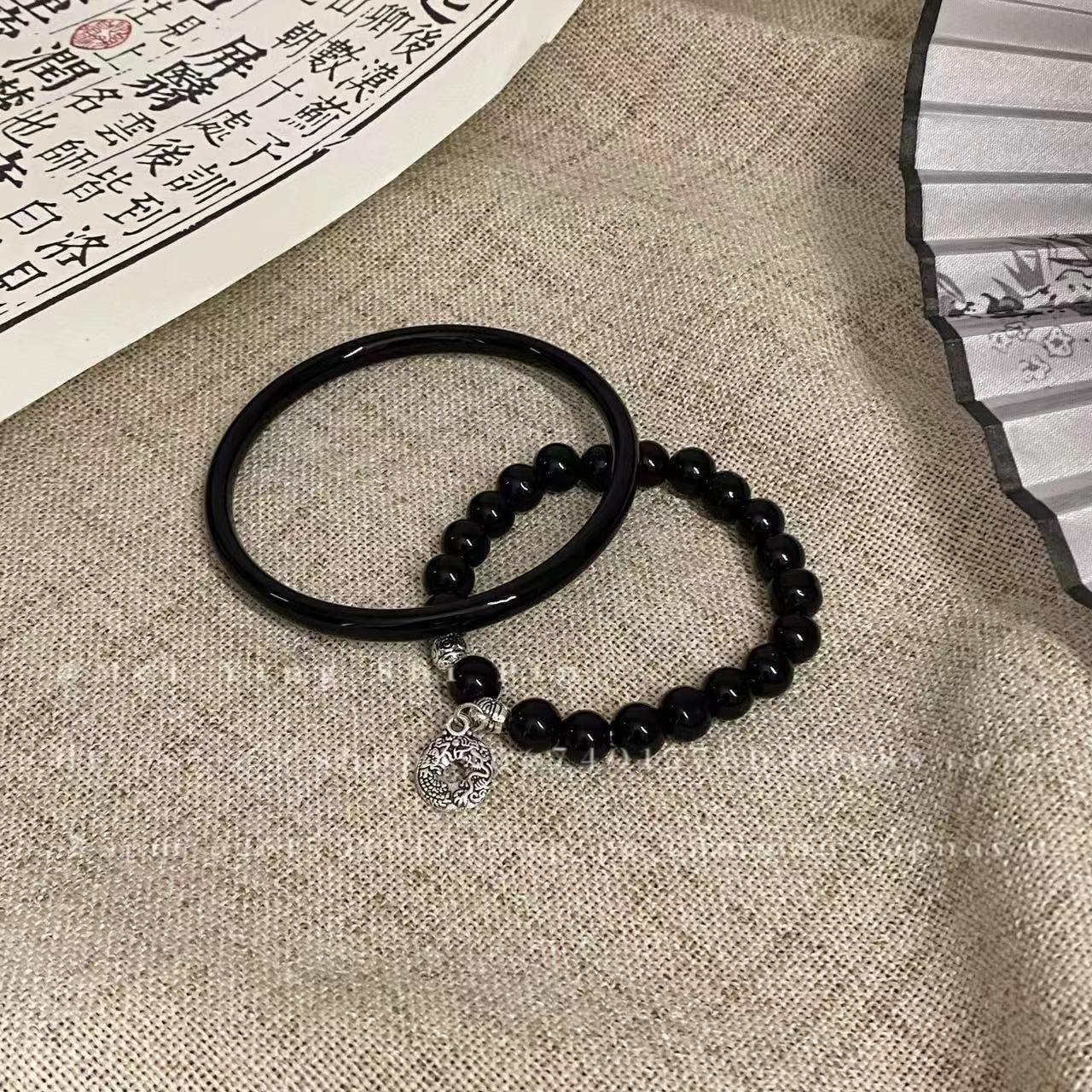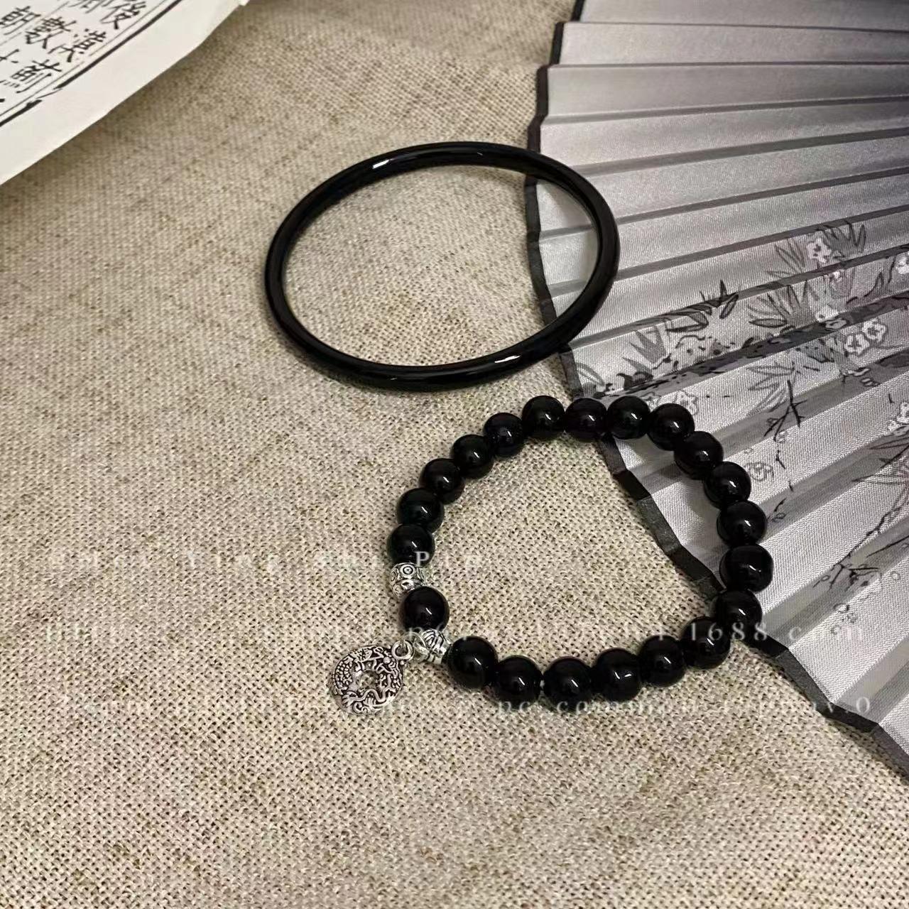 Black Ball Dragon Bracelet, Black Glass bracelet