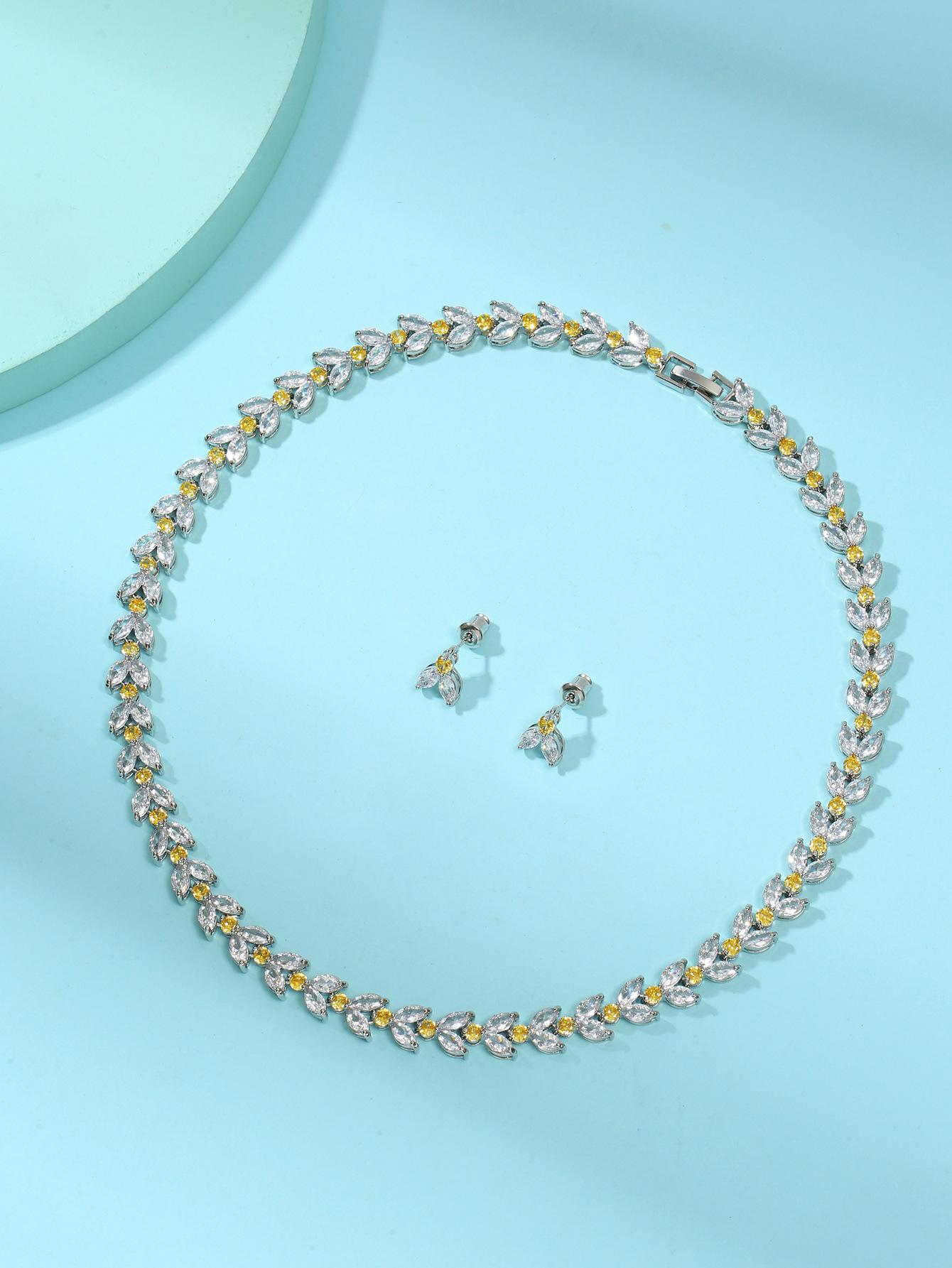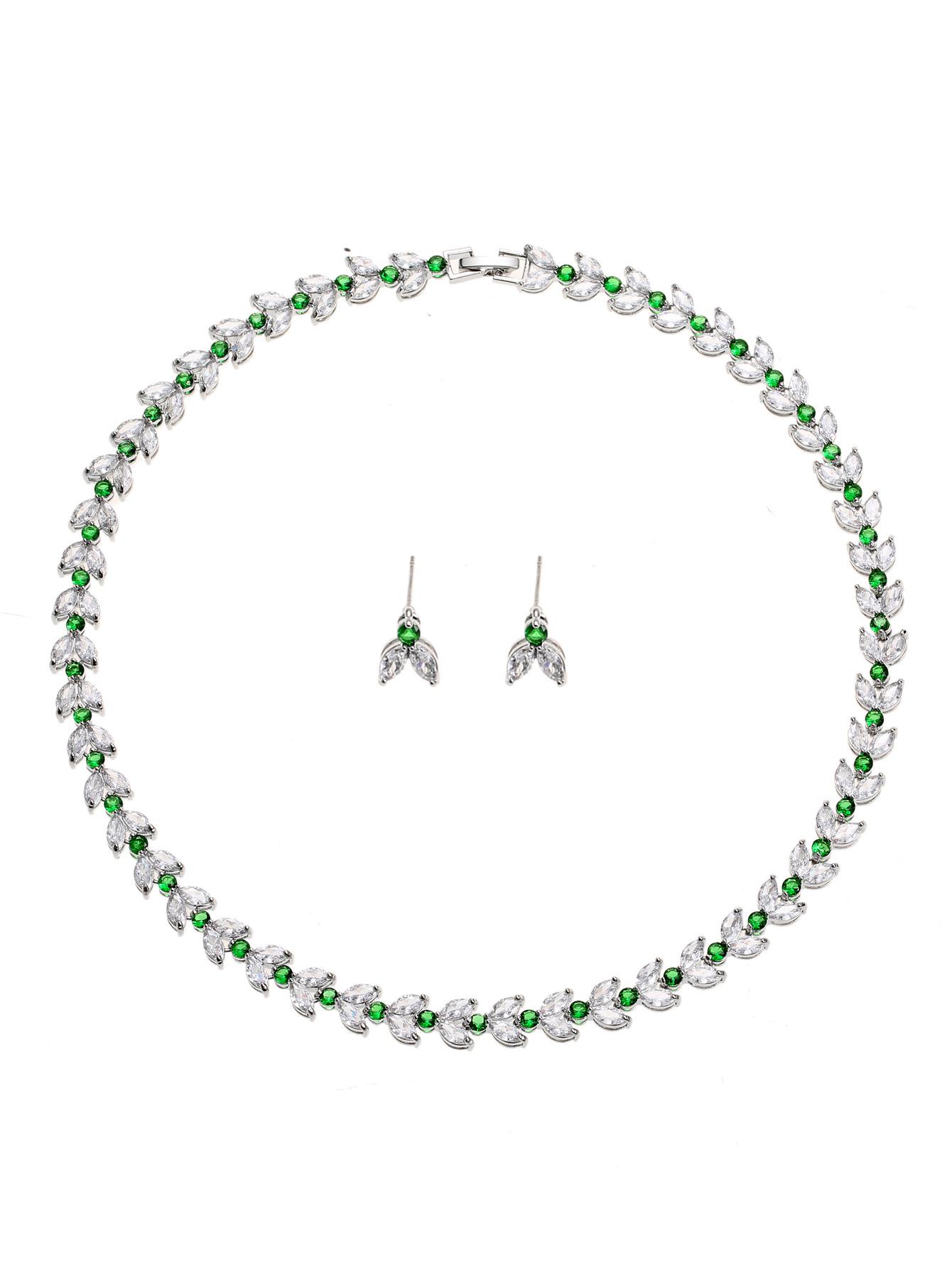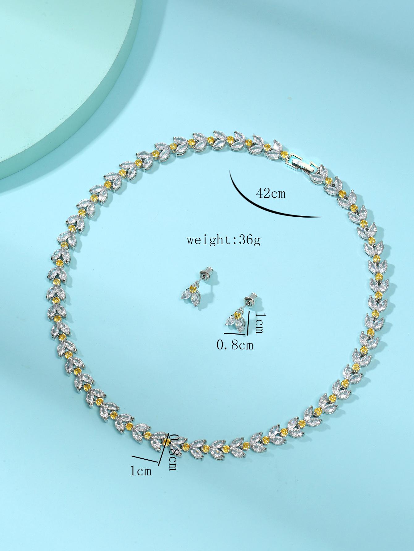 Juego de Collar y Aretes de Circonio Transfronterizo Europeo y Americano para Cena de Boda, Joyería de Alta Gama, Decoración de Hojas, Ropa de Fiesta para Mujer