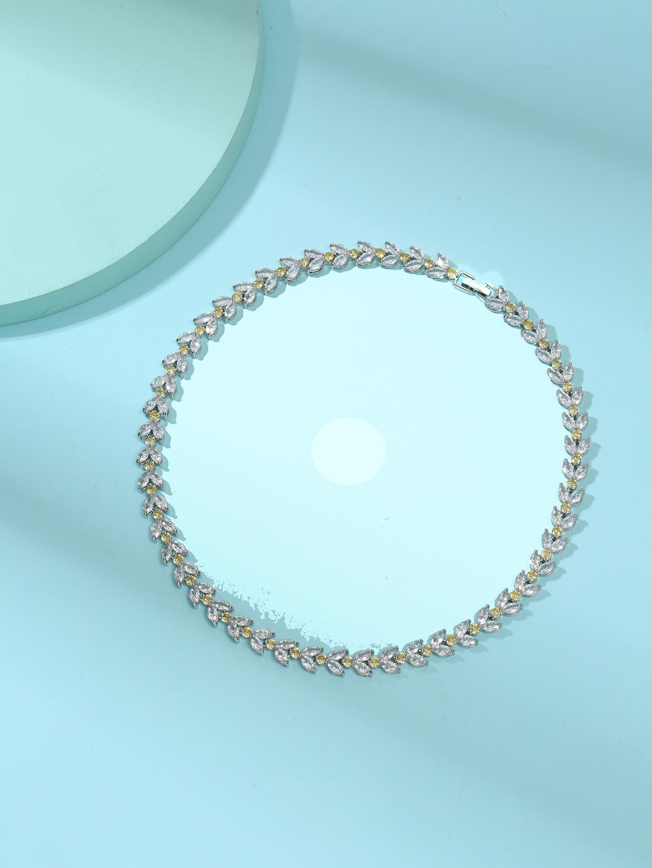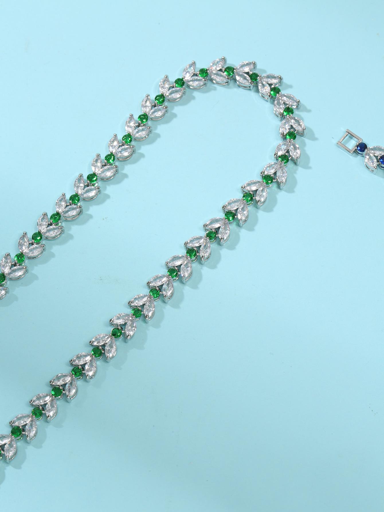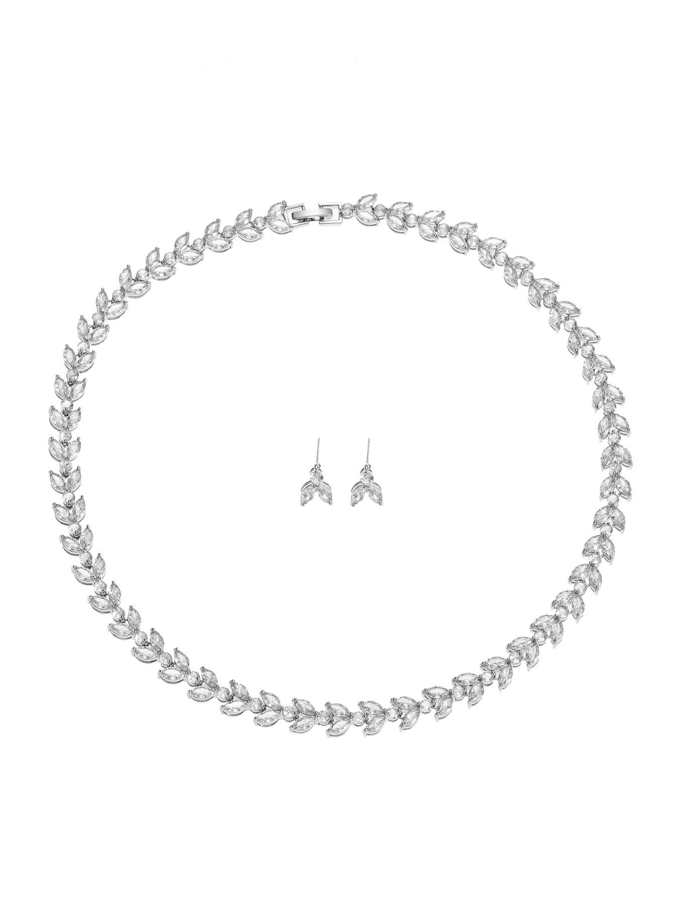 Juego de Collar y Aretes de Circonio Transfronterizo Europeo y Americano para Cena de Boda, Joyería de Alta Gama, Decoración de Hojas, Ropa de Fiesta para Mujer