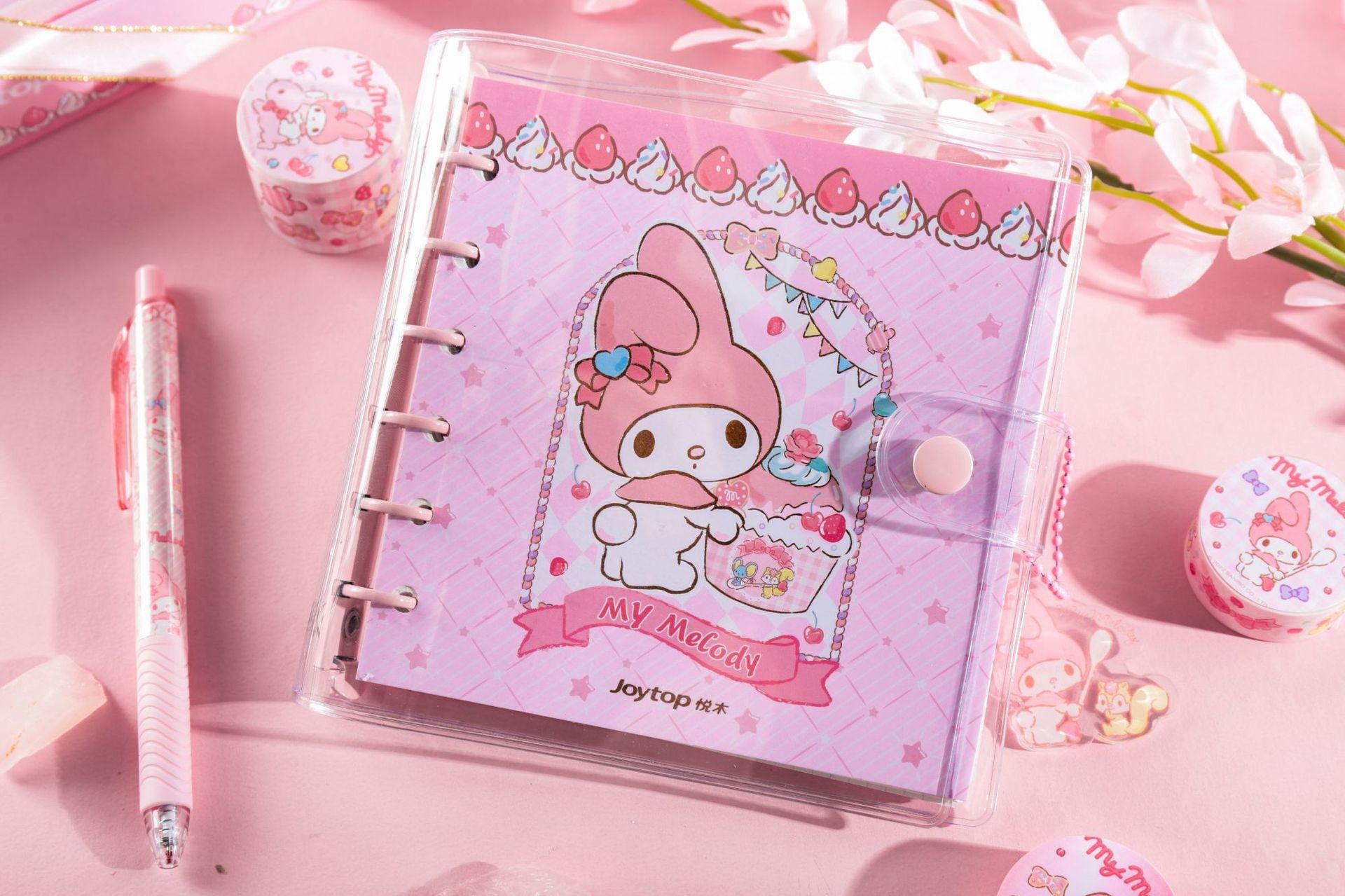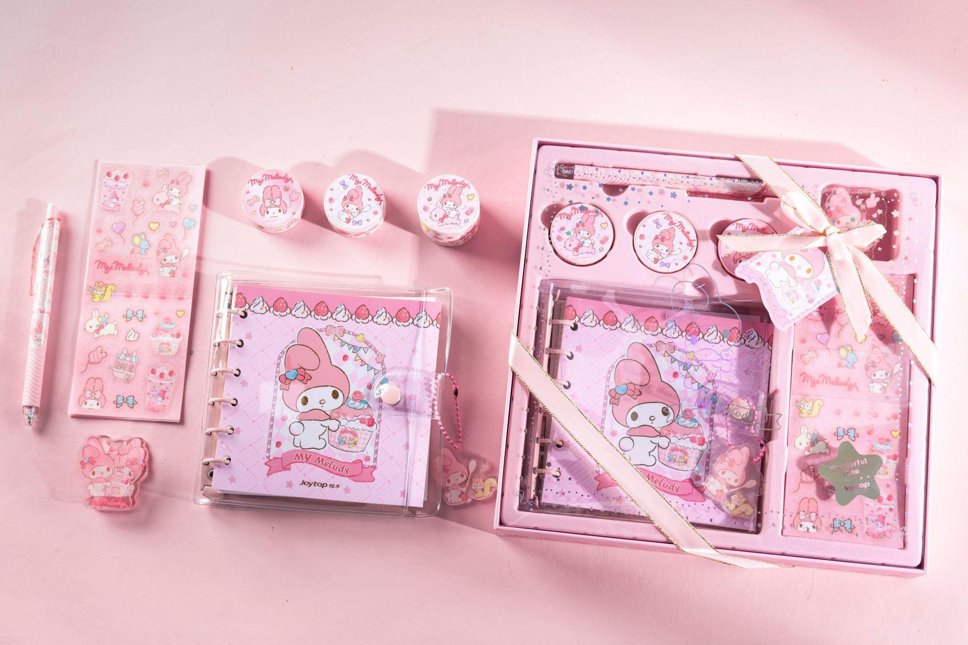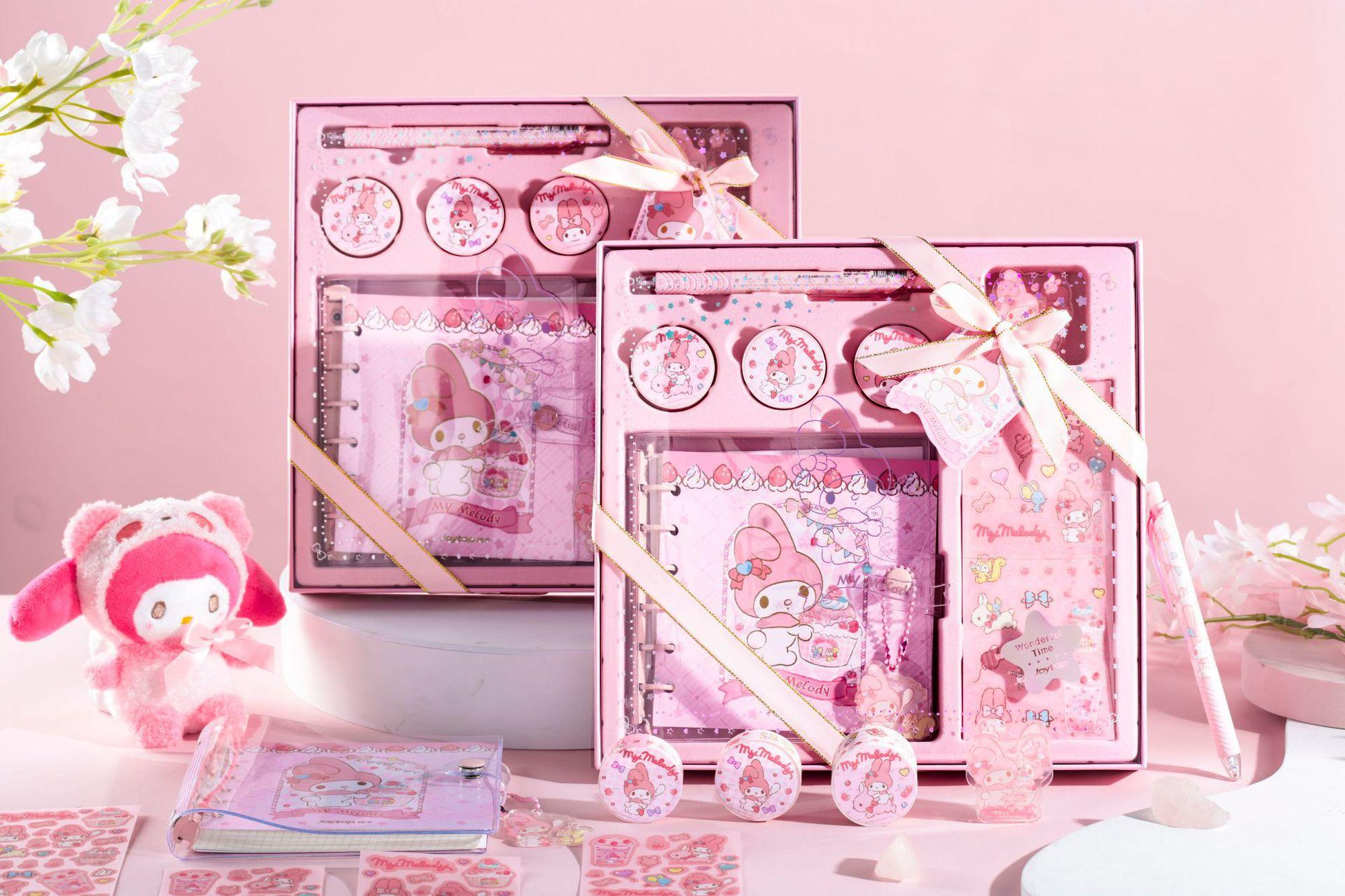 Yuemu Sanrio - Caja de regalo con cuenta de mano con melodía, conjunto de libreta con cuadrícula de corazón para estudiante y niña, libro de cuenta de mano