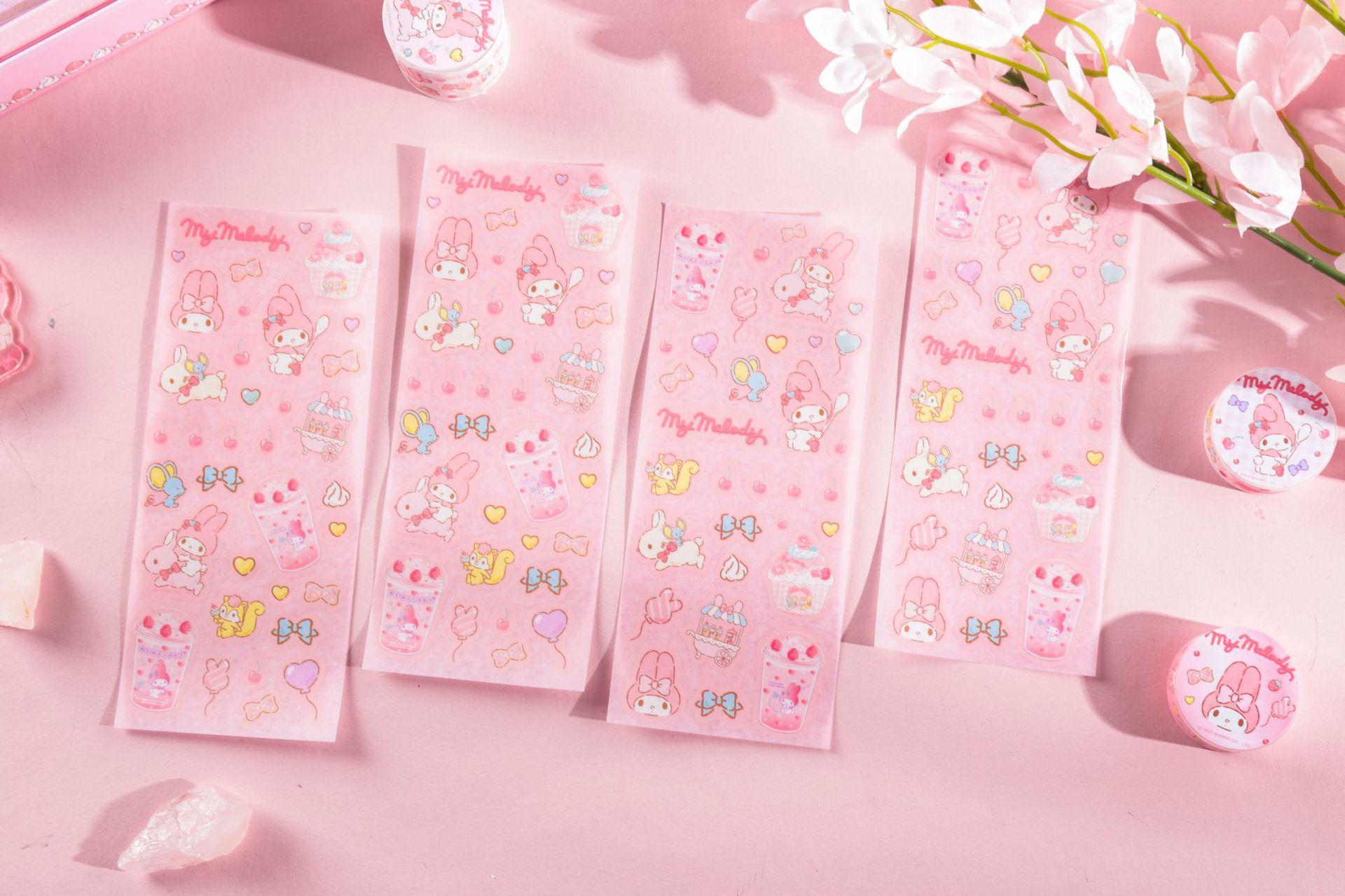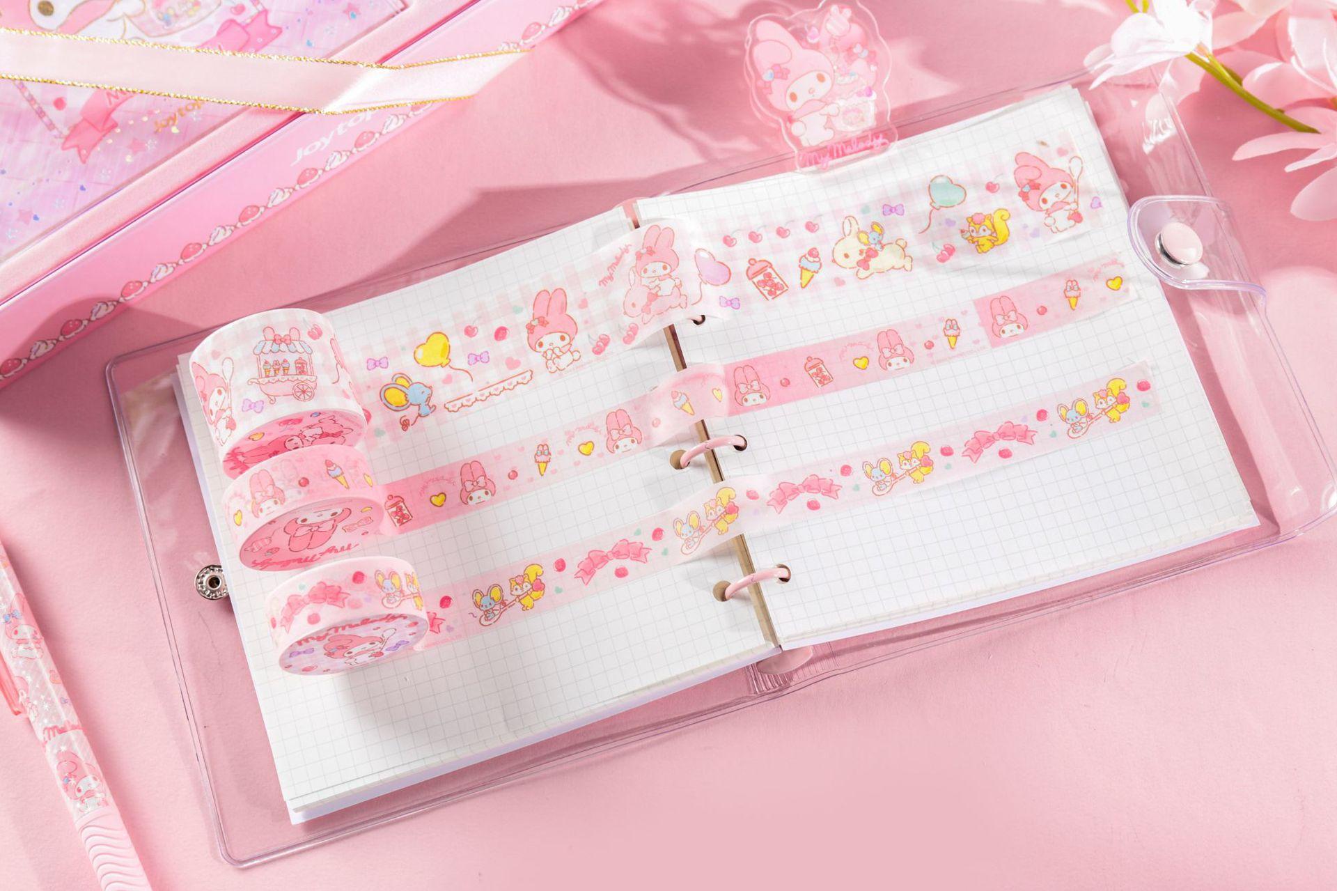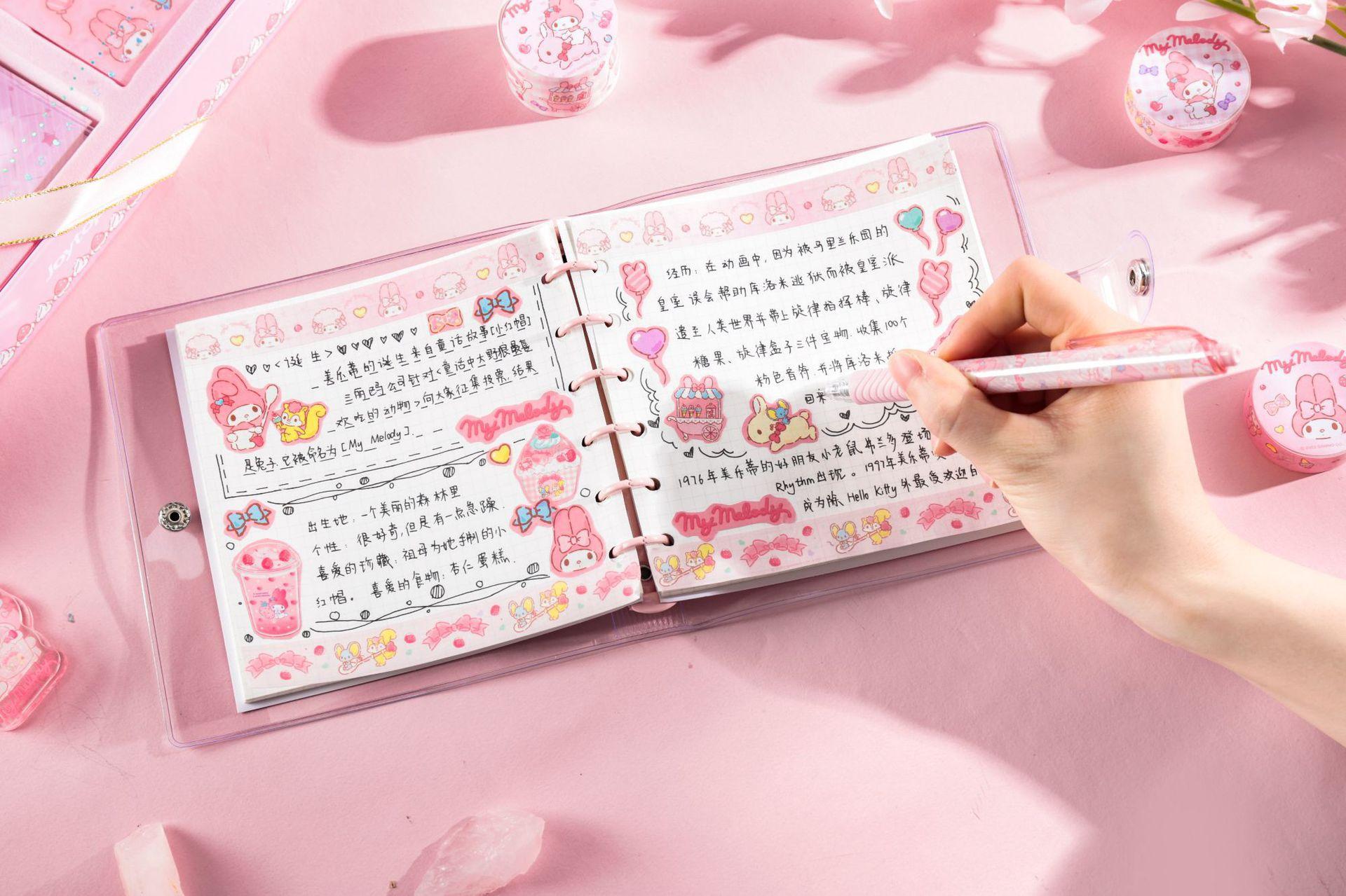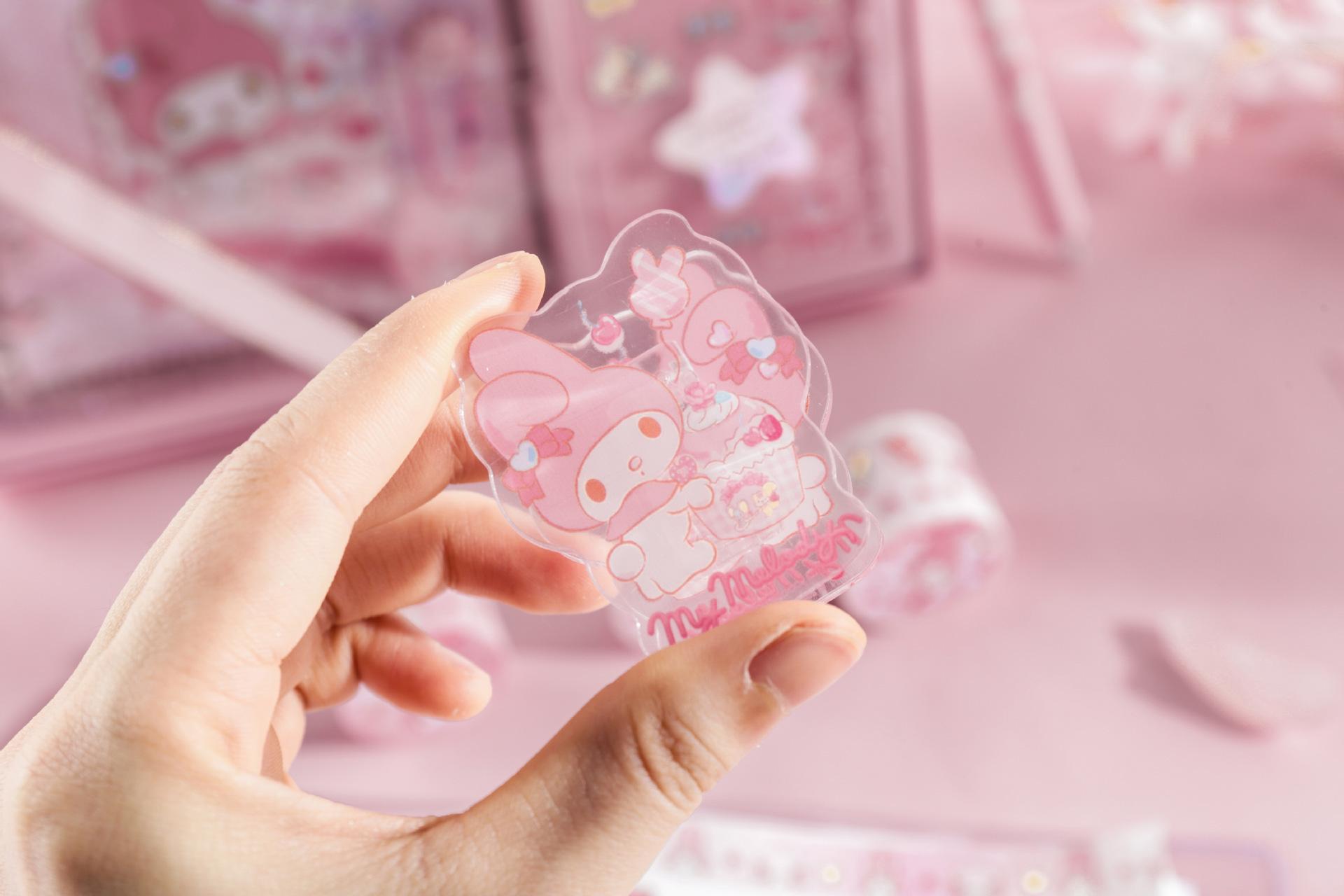 Yuemu Sanrio - Caja de regalo con cuenta de mano con melodía, conjunto de libreta con cuadrícula de corazón para estudiante y niña, libro de cuenta de mano