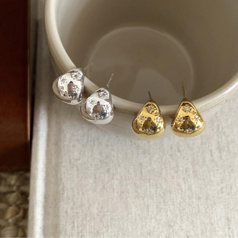 Aretes de Metal con Forma de Gota de Agua y Estrella de Seis Puntas con Zirconia Estilo Coreano para Mujer, Aretes Plateados, Lujo Ligero, Moda de Alta Gama, Simples, Nicho, Combinables con Todo