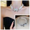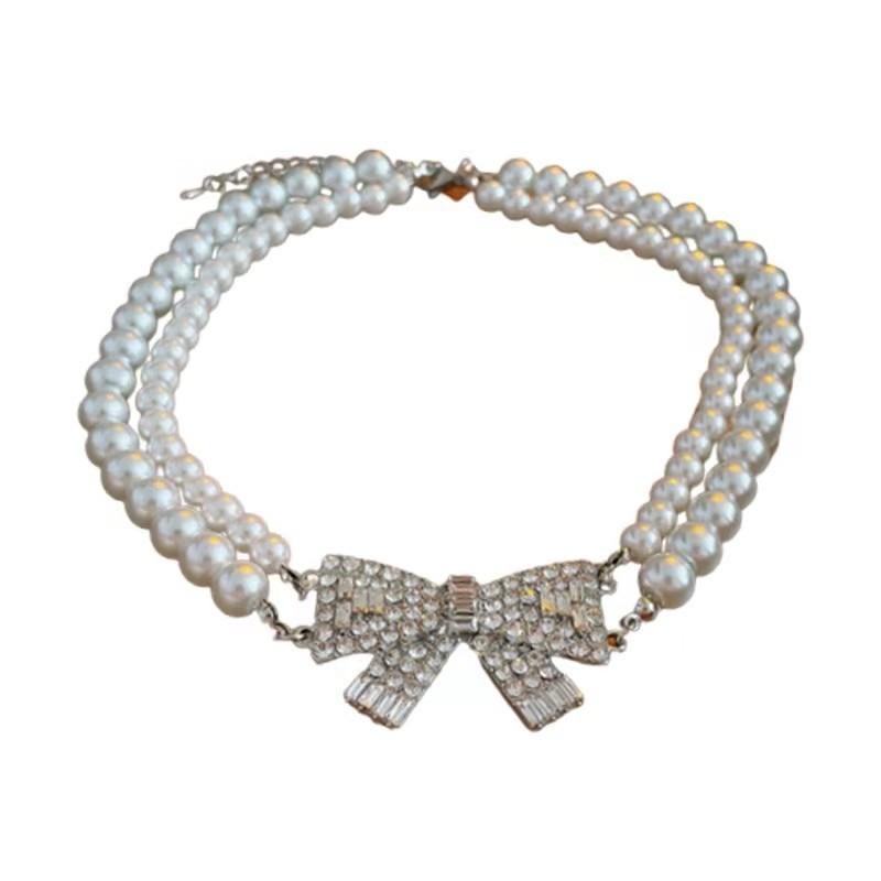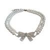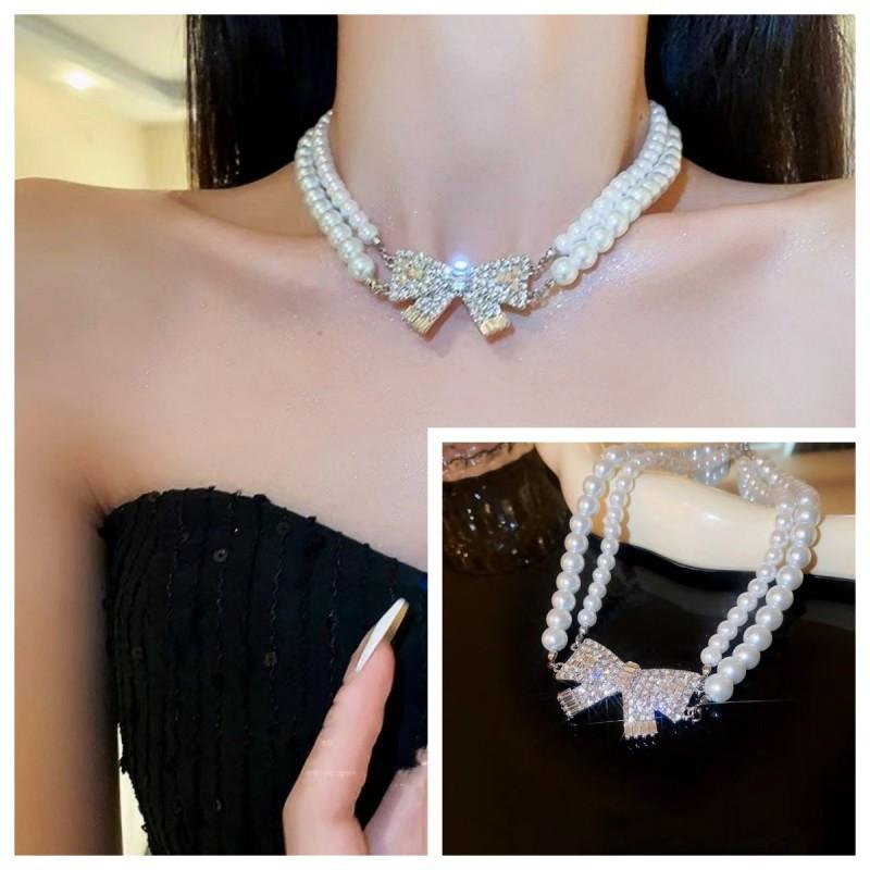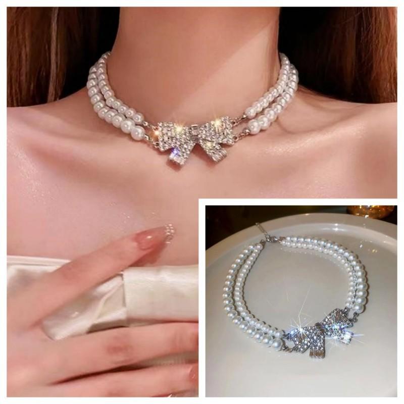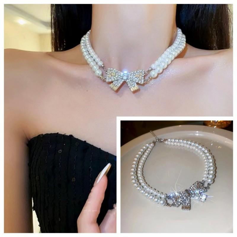 Compra Collar de doble capa con perlas dobladas y lazo superbrillante para mujer, cadena de clavícula, nuevo, ligero, de lujo, exquisito, de alta gama, accesorios de collar al por mayor en Joom.pro