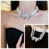 Collar de doble capa con perlas dobladas y lazo superbrillante para mujer, cadena de clavícula, nuevo, ligero, de lujo, exquisito, de alta gama, accesorios de collar