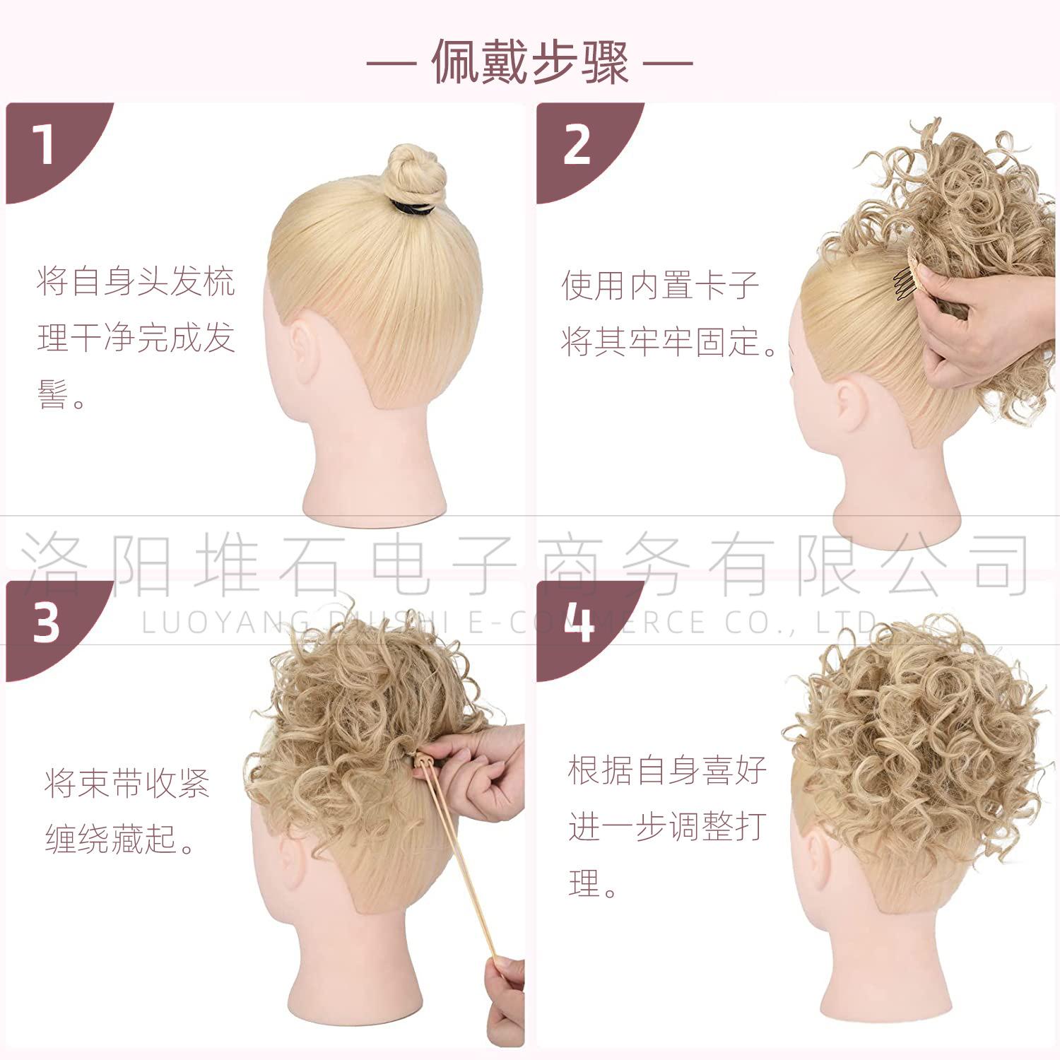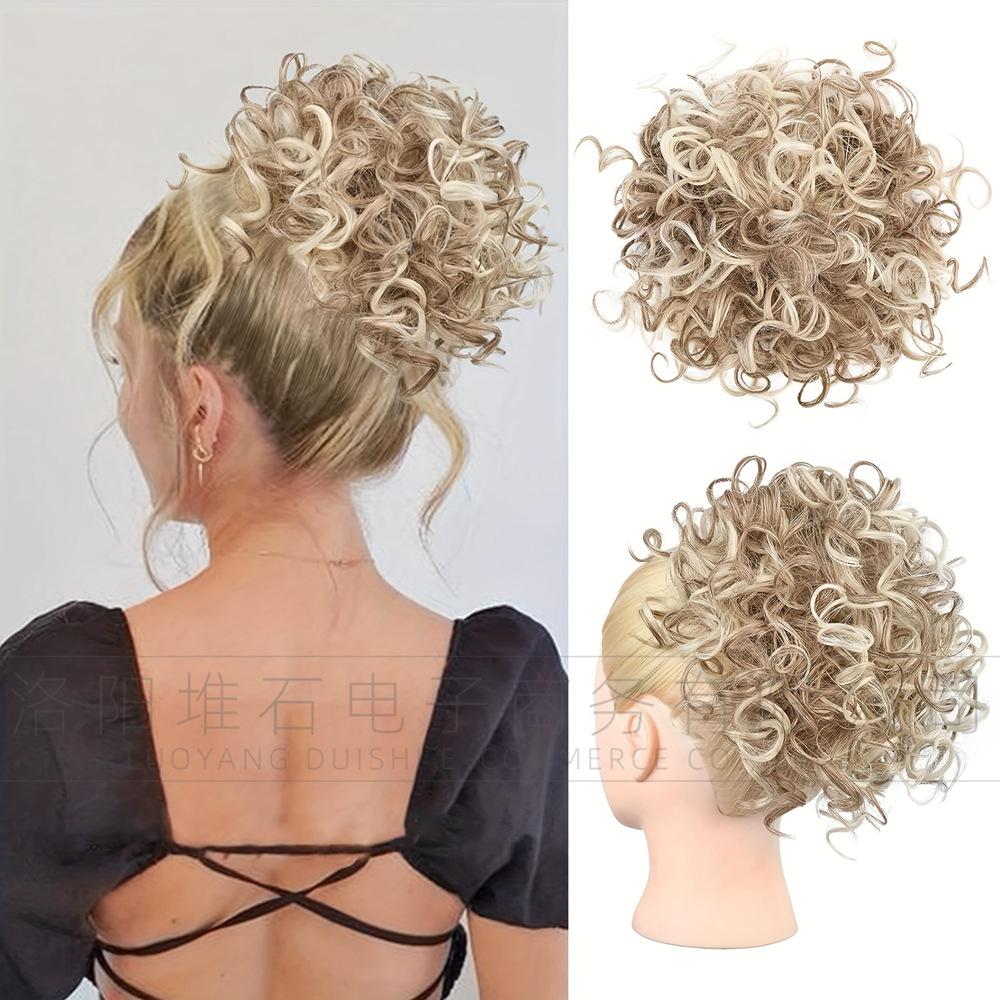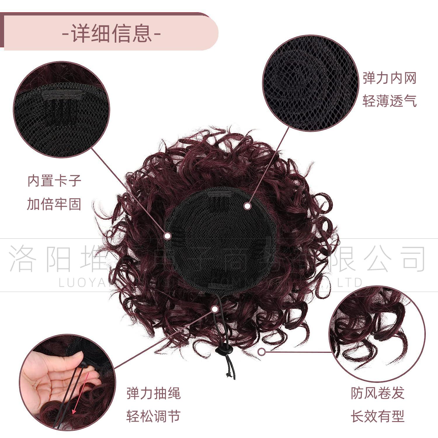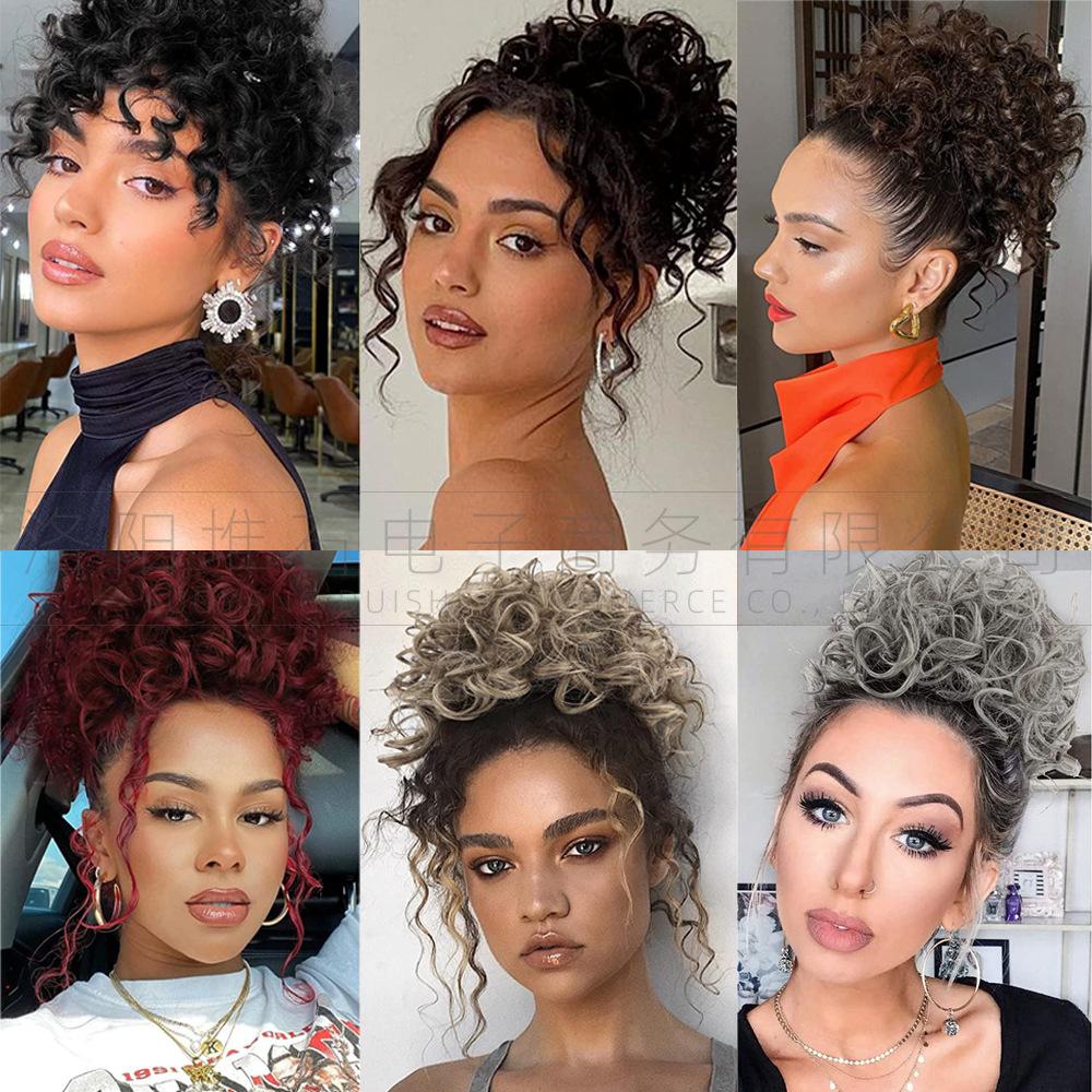 Peluca europea y americana para mujer, bolsa de pelo pequeño, cabello rizado, capullo, cordón elástico desordenado, cordón suelto, onda grande, moño rizado