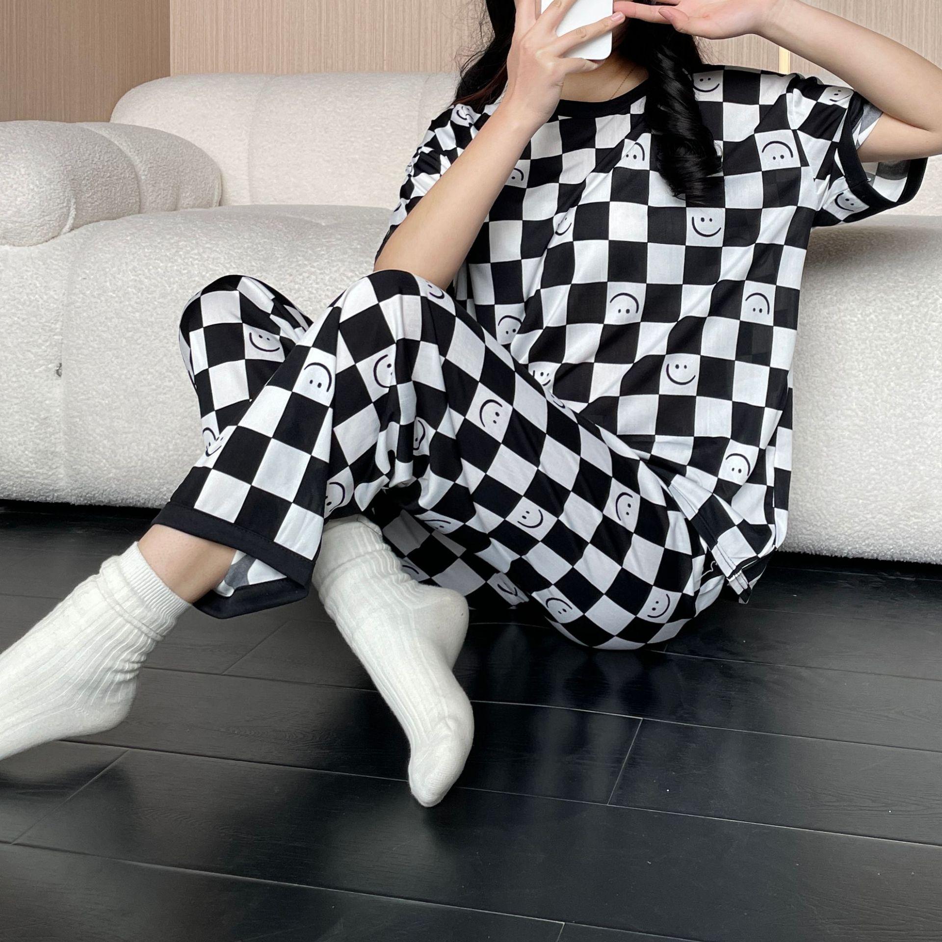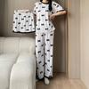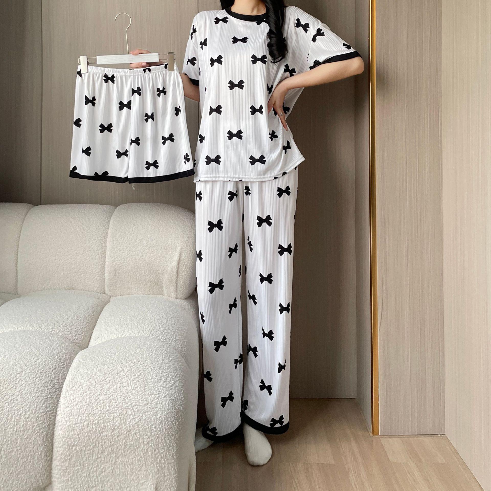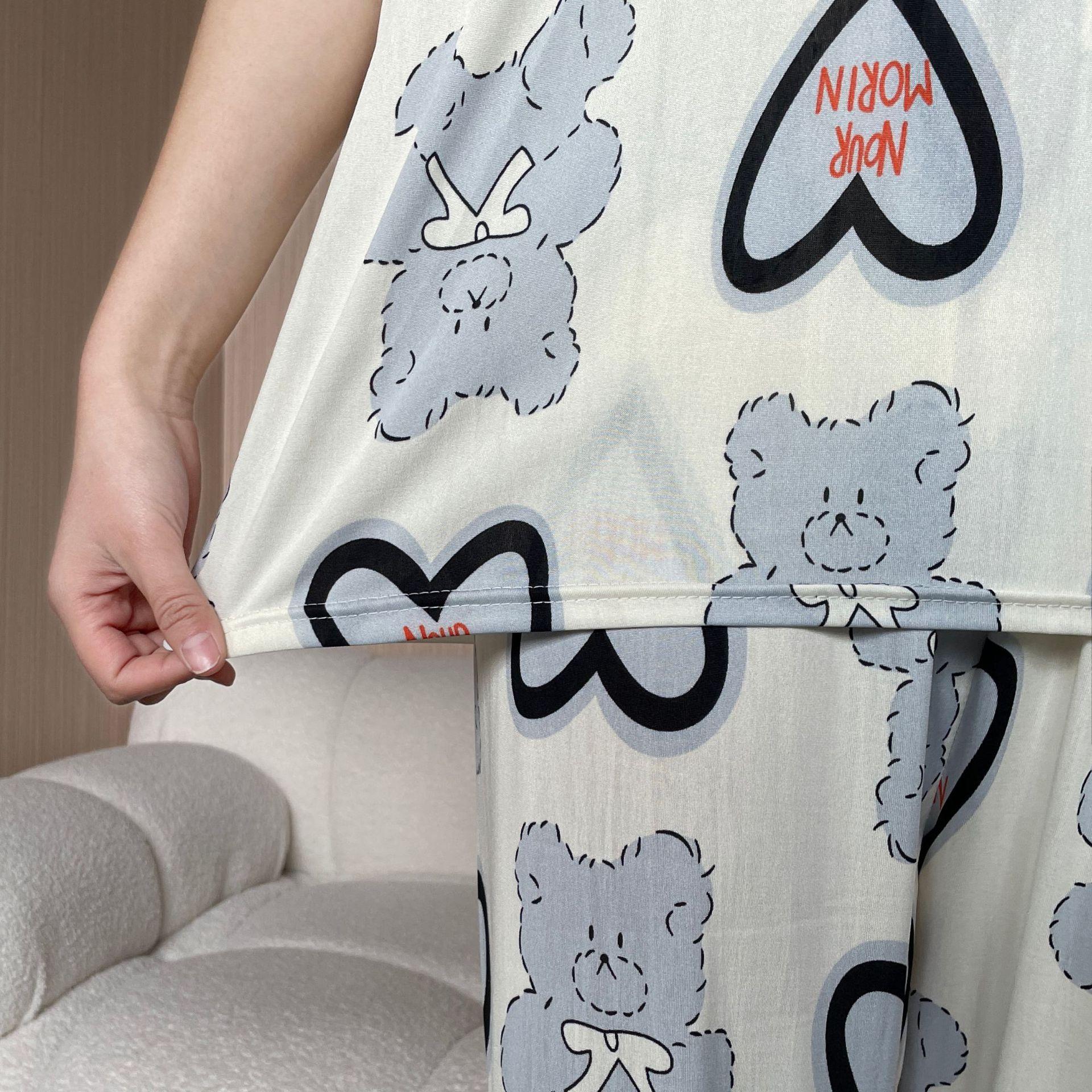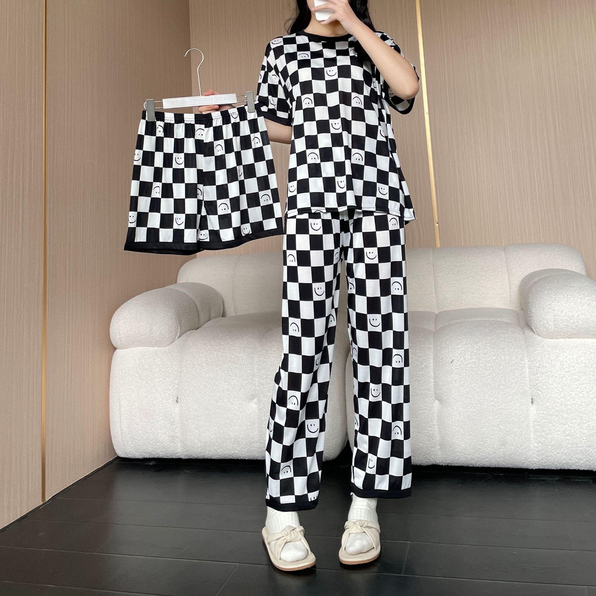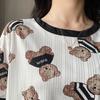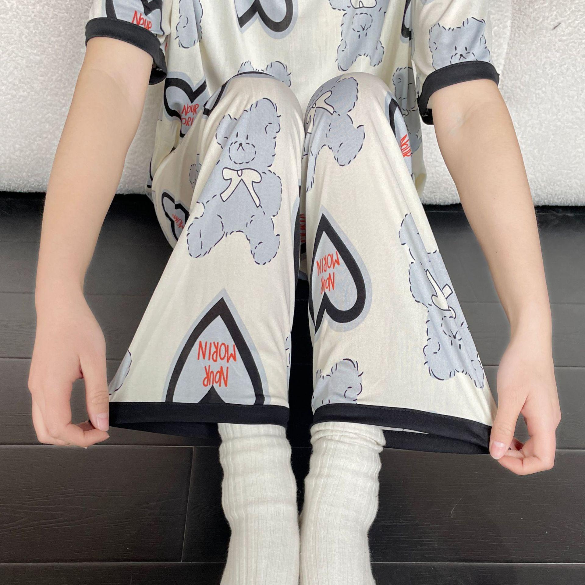 Pijama de Manga Corta de Primavera y Verano Conjunto de Tres Piezas con Estampado de Oso y Carita Sonriente Holgado Conjunto de Ropa para el Hogar Sencillo y Casual