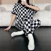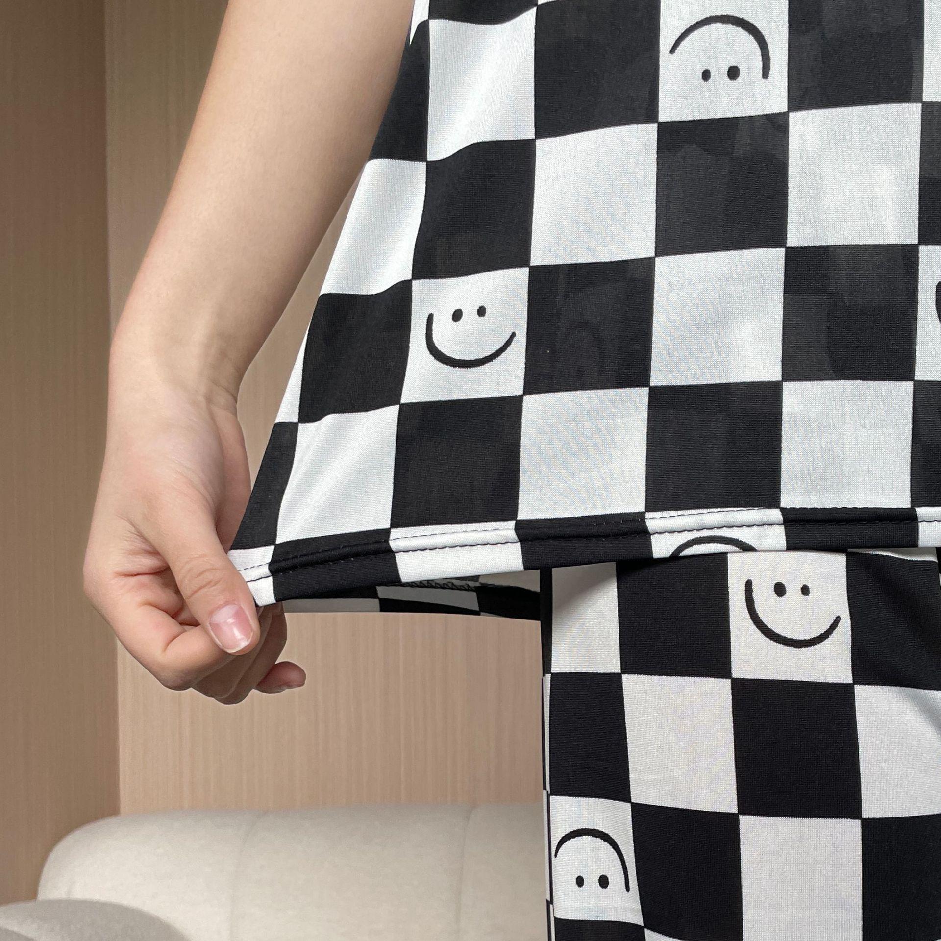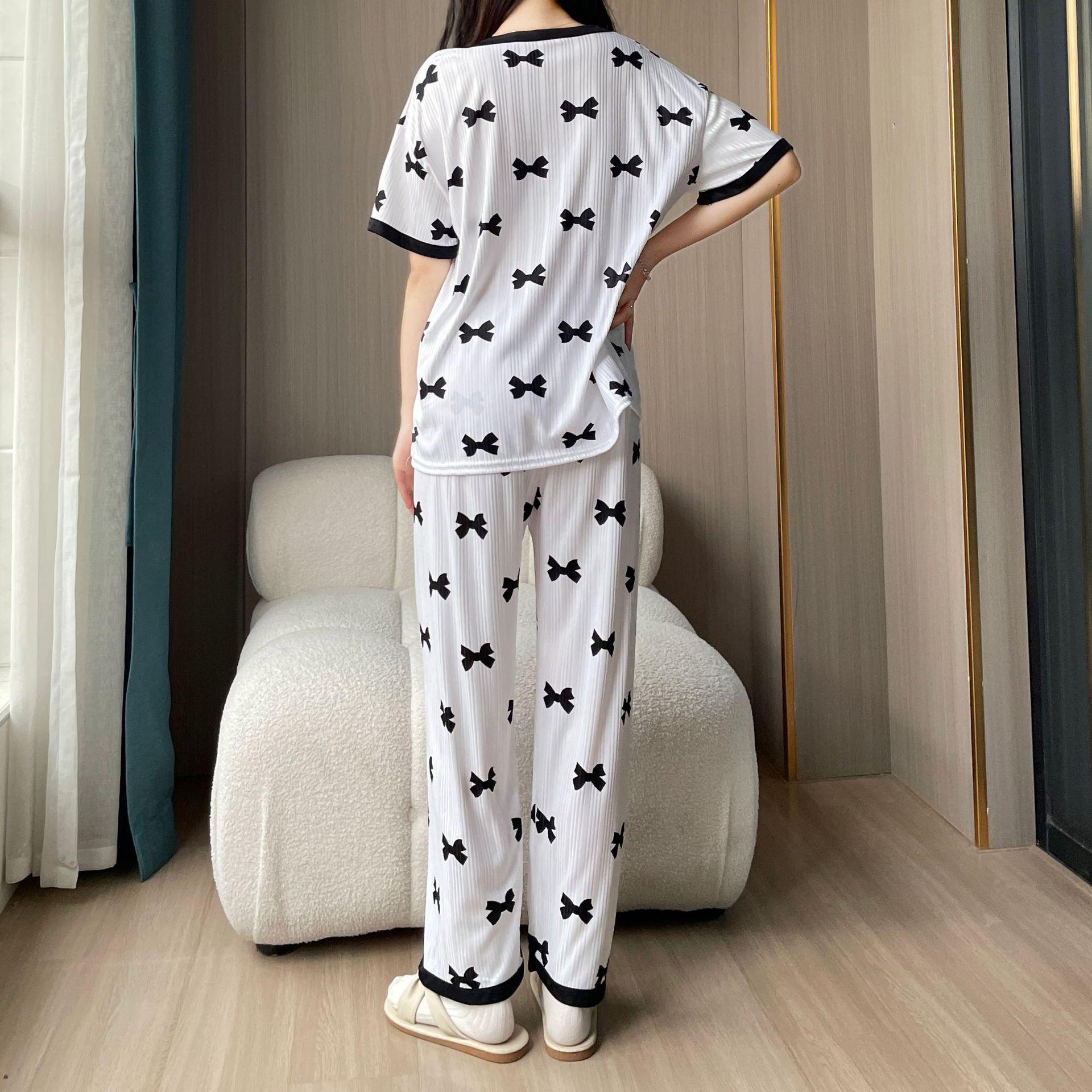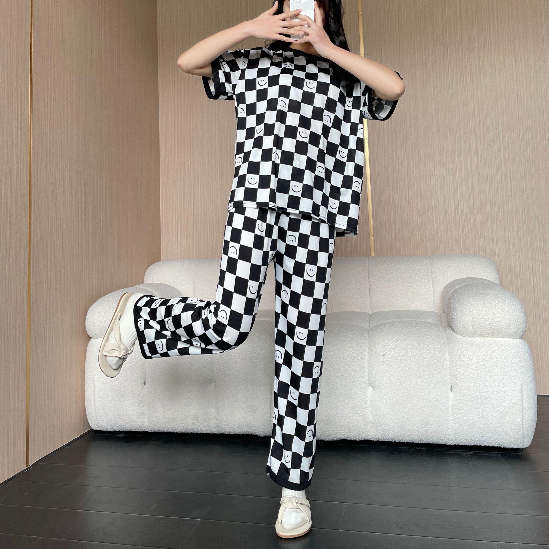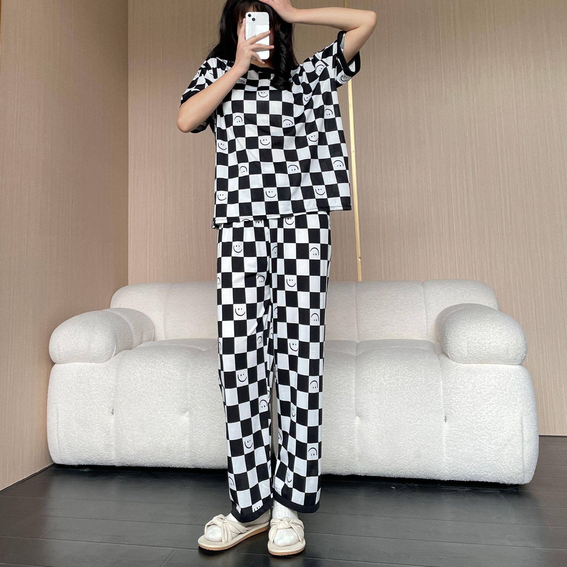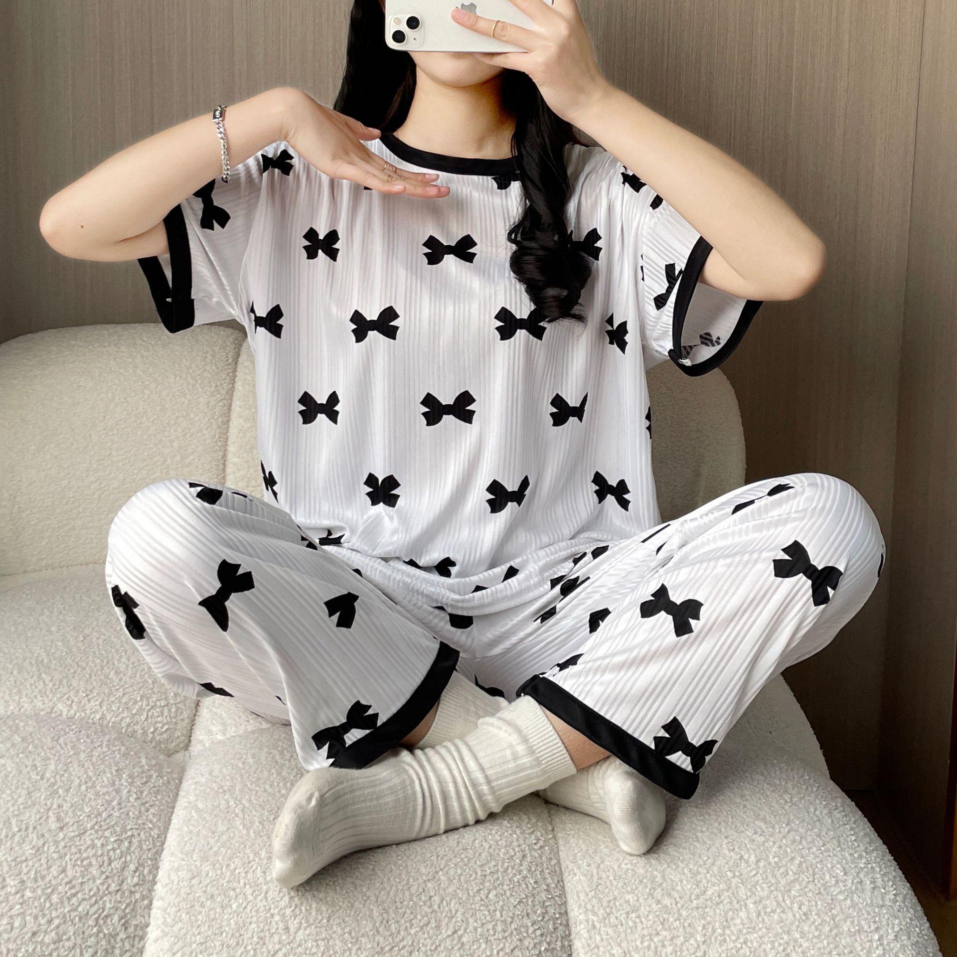 Pijama de Manga Corta de Primavera y Verano Conjunto de Tres Piezas con Estampado de Oso y Carita Sonriente Holgado Conjunto de Ropa para el Hogar Sencillo y Casual