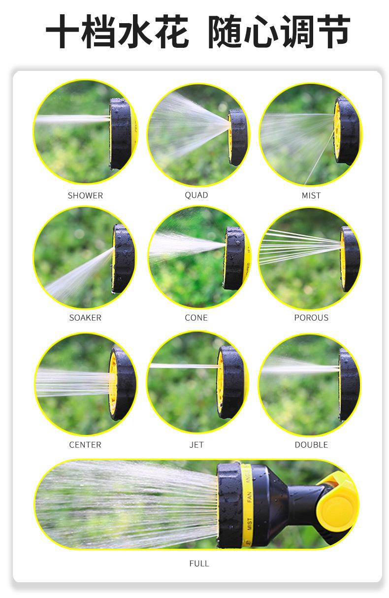 Venta directa de fábrica 10 funciones tubería de agua de resorte hogar riego boquilla de agua manguera aspersor lavado de autos pistola de agua artefacto
