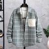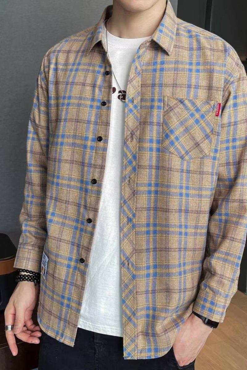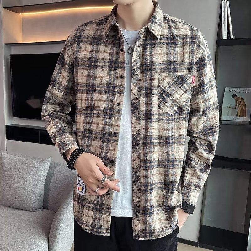 Camisa a cuadros para hombre, estilo coreano, de negocios, moderna, a rayas, holgada, informal, con pantalón y chaqueta de manga larga, para primavera y otoño