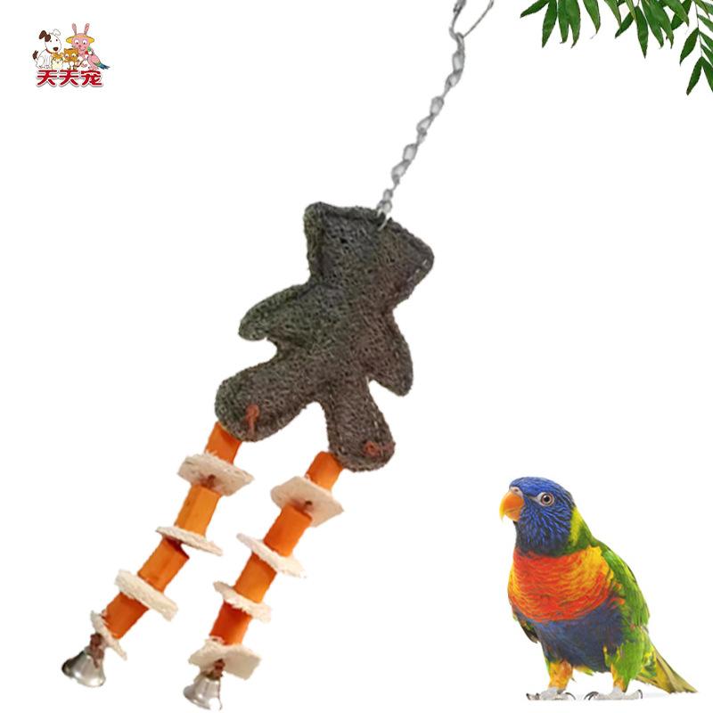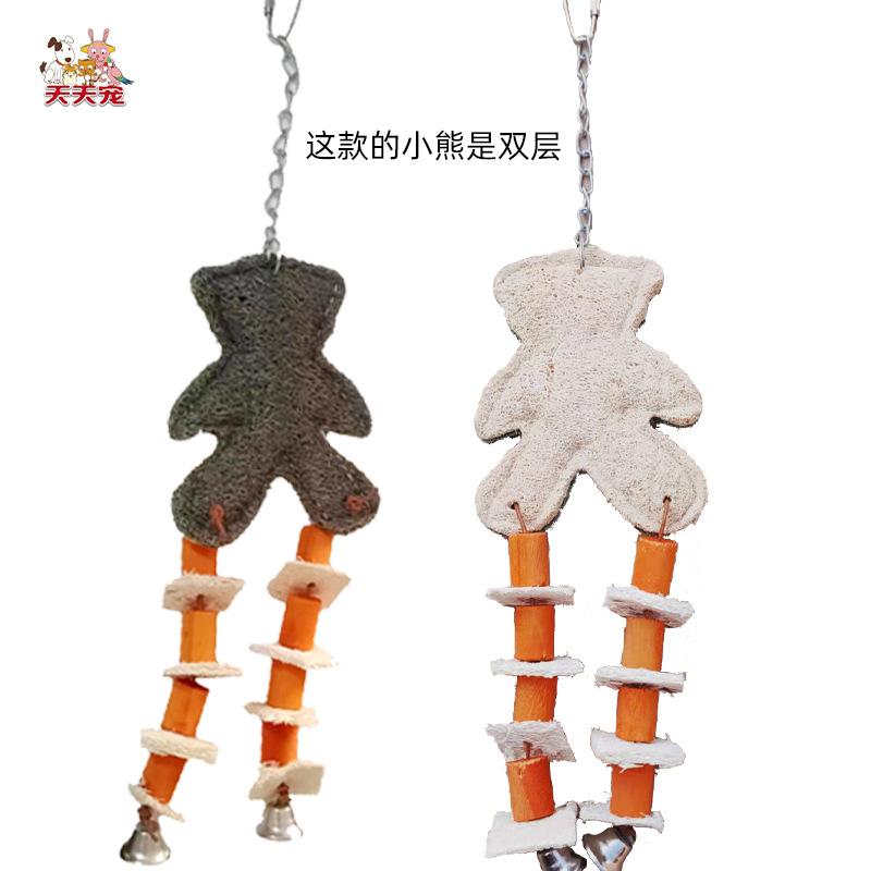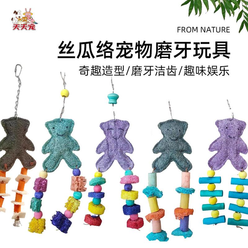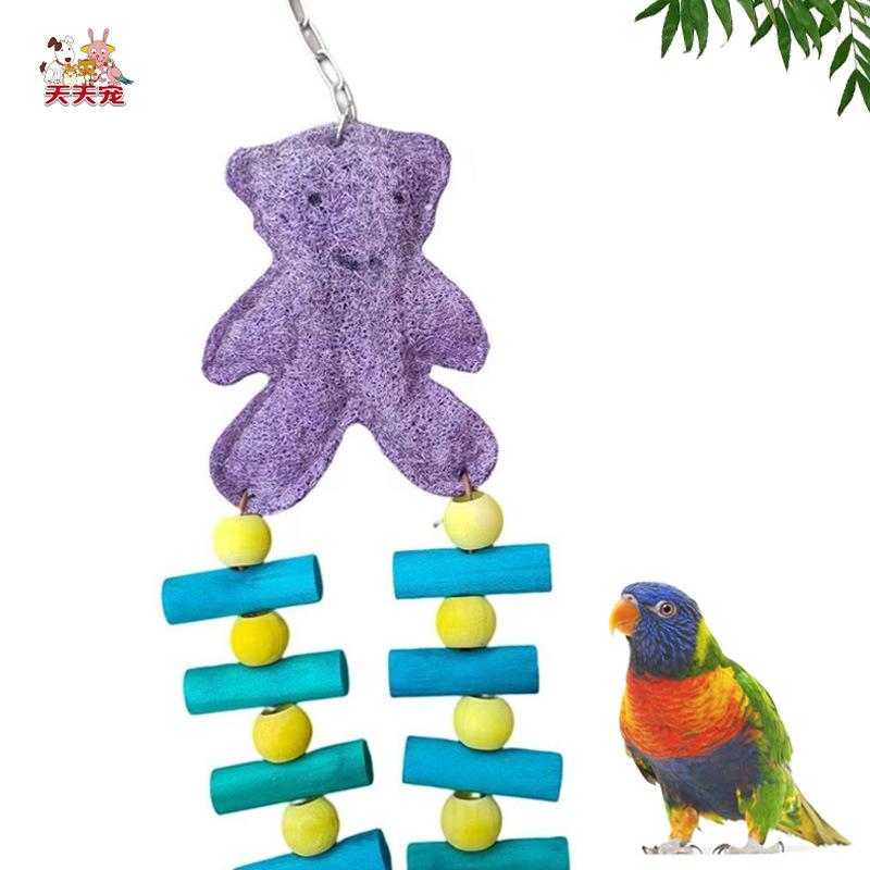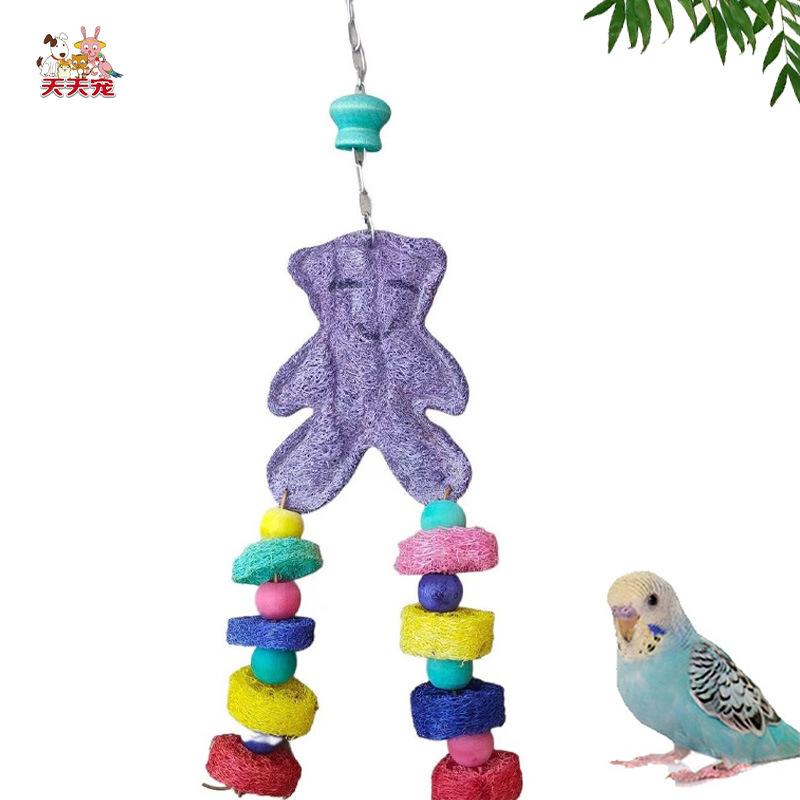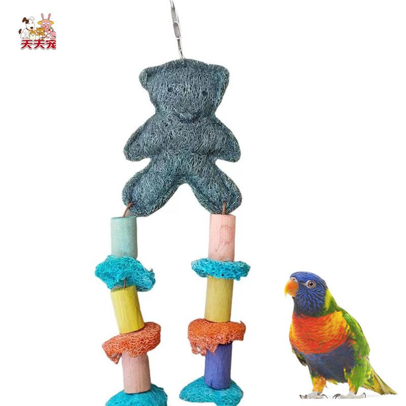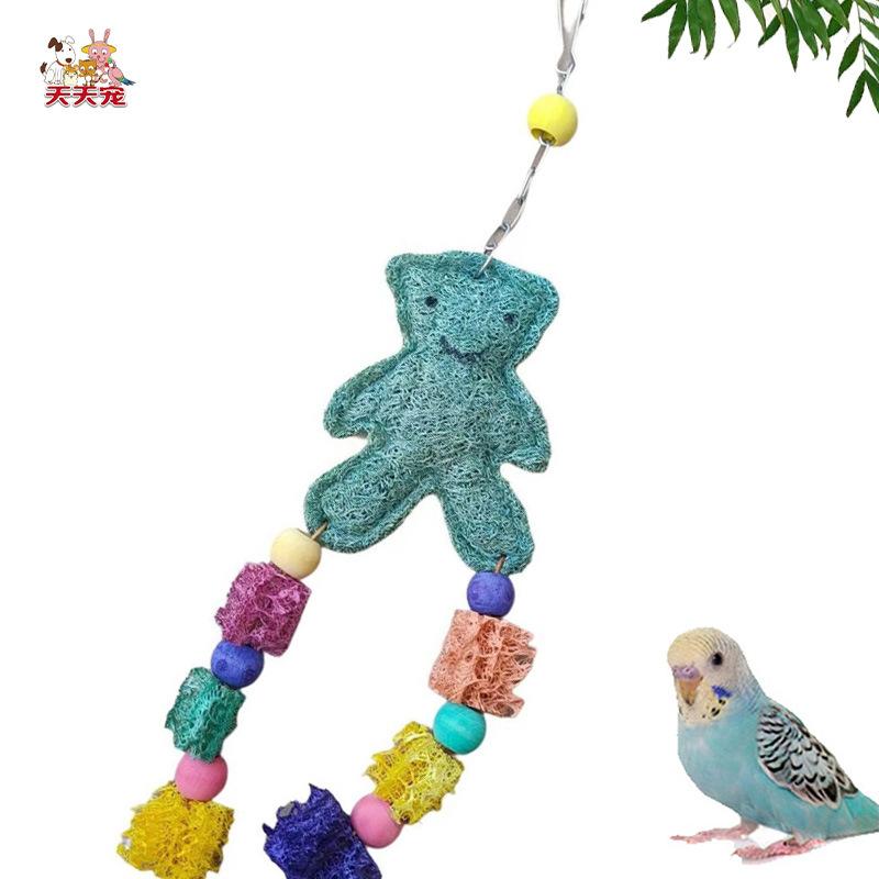 Juguete para pájaros, juguete para morder de loro, esponja vegetal, bola de oso de colores, cuerda colgante, accesorios para jaulas de pájaros, juguete para pájaros