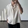 Camisa de Verano para Hombre de Moda Camisa de Manga Cinco Puntos para Hombre Guapo Ropa Superior de Manga Corta Camisa Fina de Manga Siete Puntos