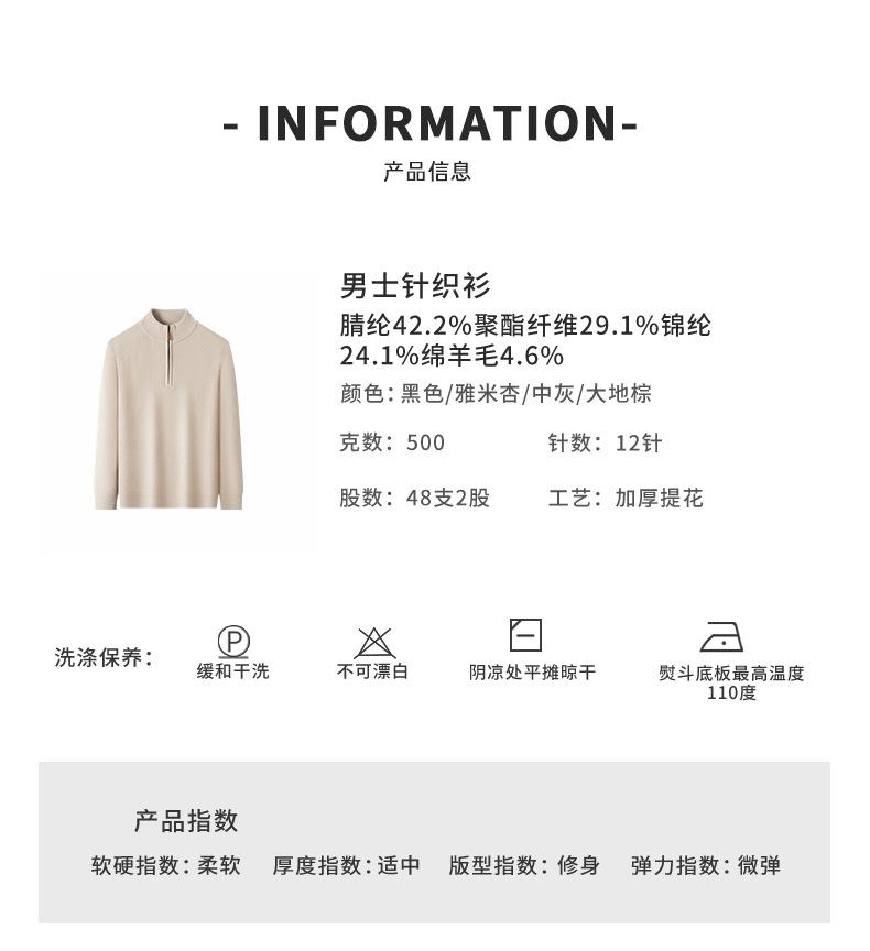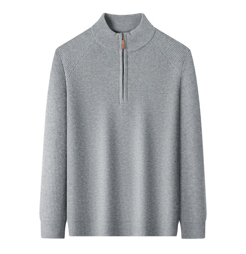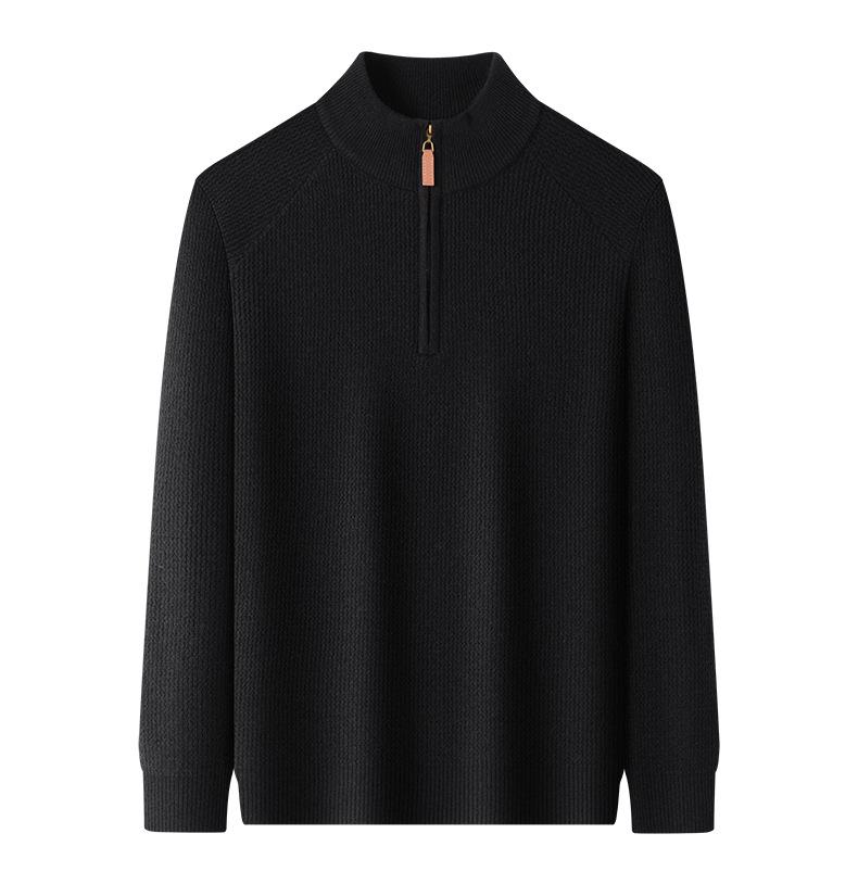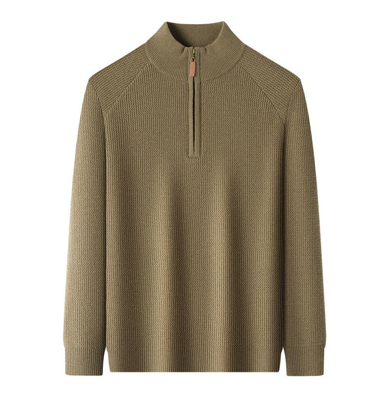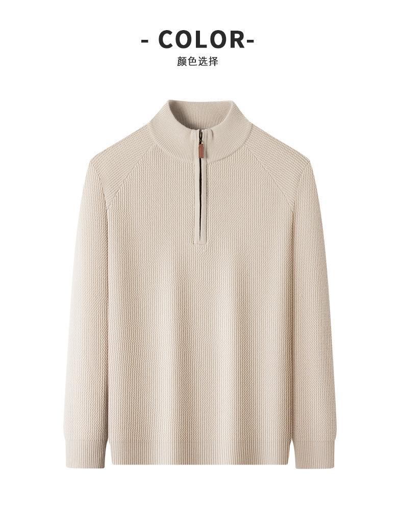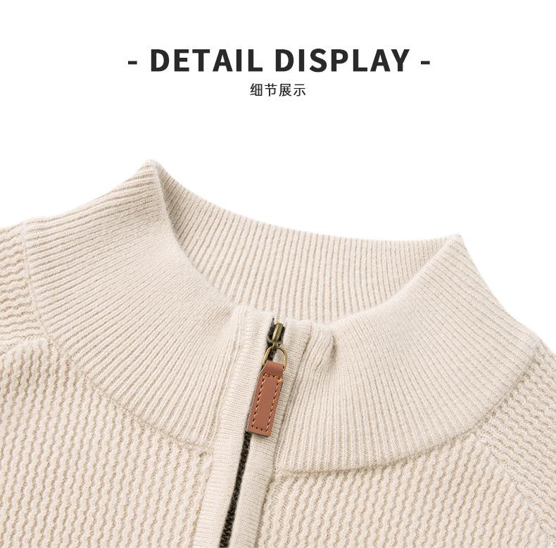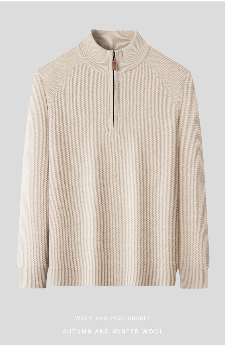 Suéter grueso para hombre con tacto de lana de otoño e invierno de 2024, no es fácil de formar bolitas con suéter de cuello alto con cremallera de lana