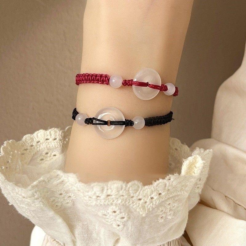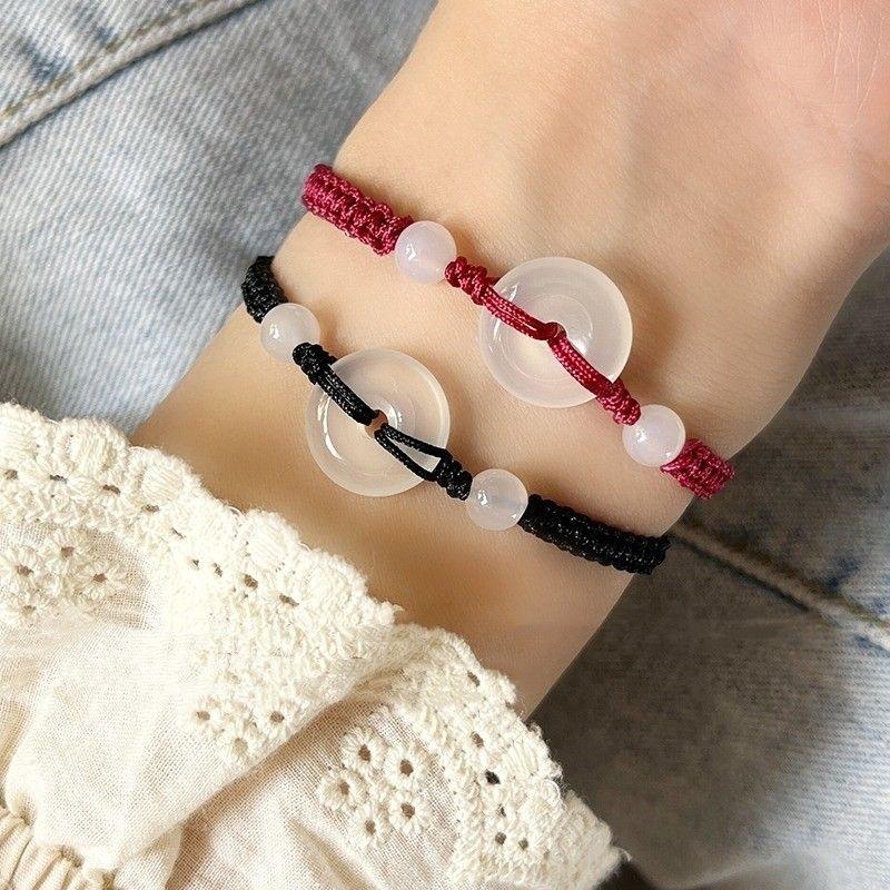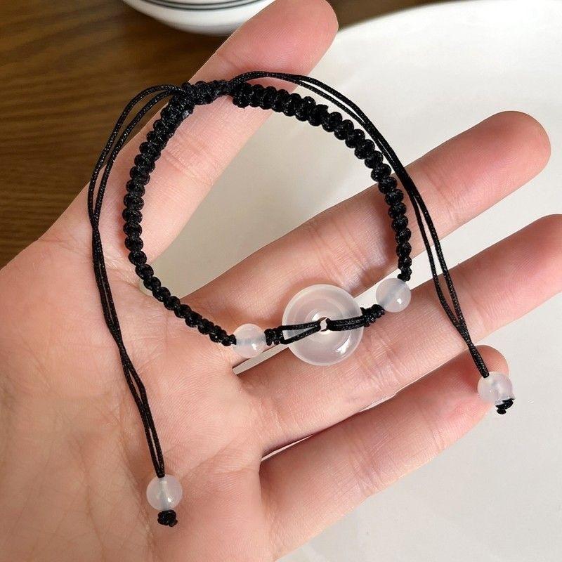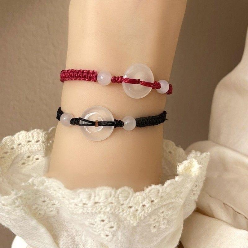 Pulsera trenzada para pareja con hebilla de paz de calcedonia blanca, pulsera de temperamento simple, estilo nacional, para estudiante, novia, regalo dulce