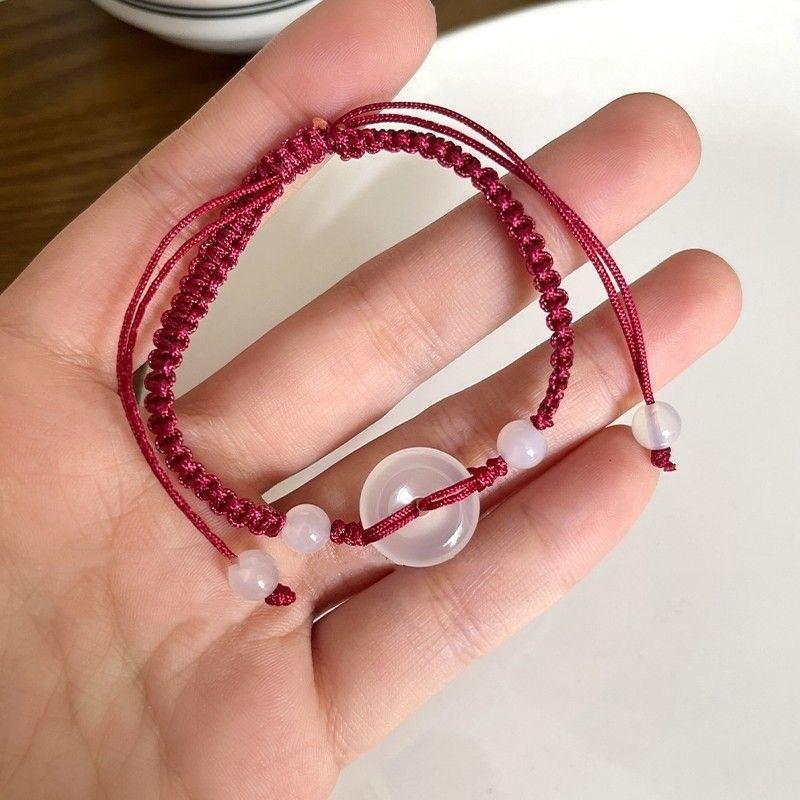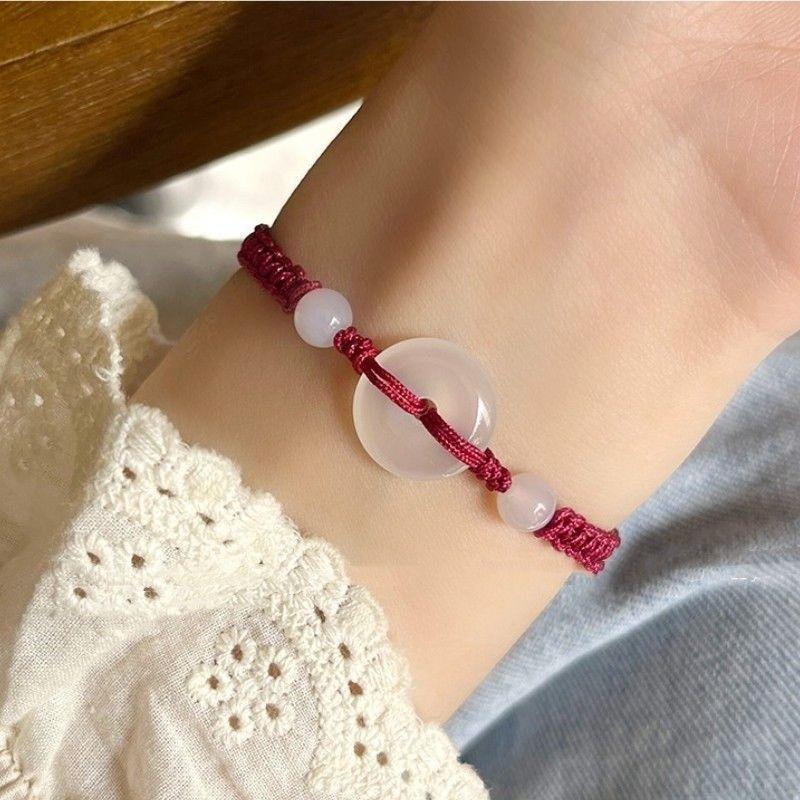 Hebilla Calcedonia Blanca Pulsera Tejida para Pareja Pulsera Temperamento Simple Guofeng Estudiante Novia Pulsera Dulce Regalo