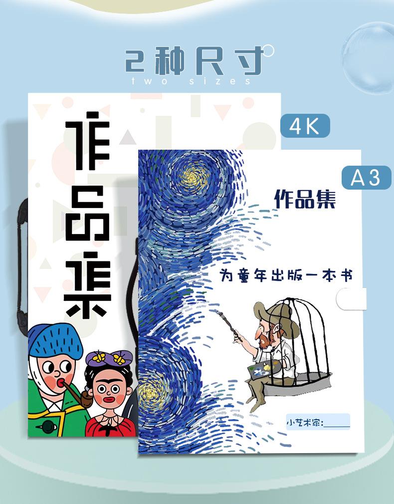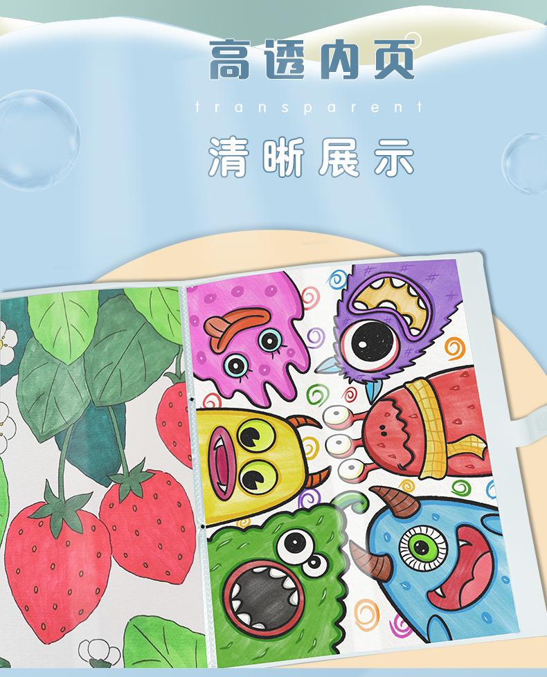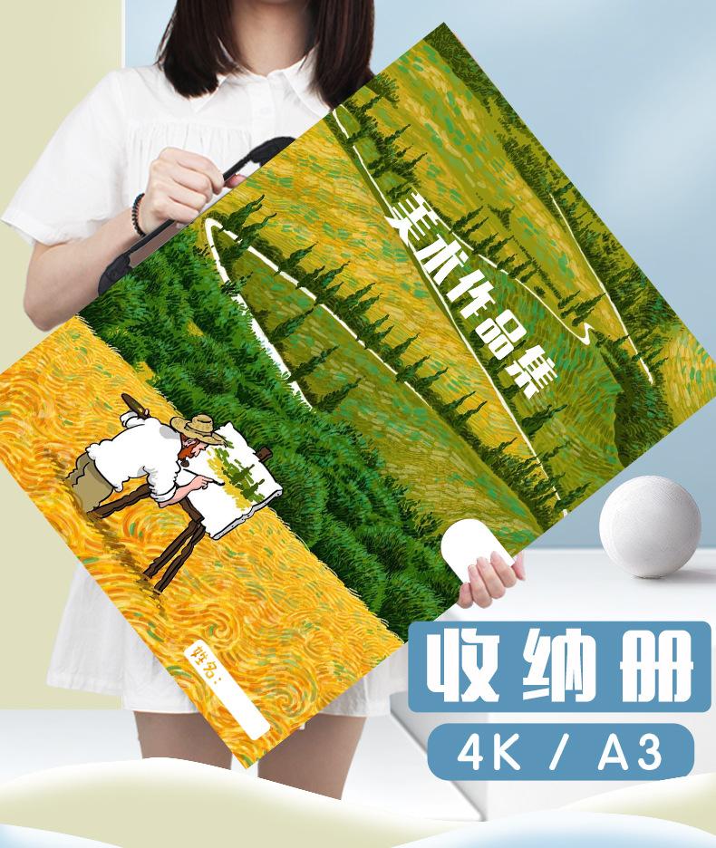 Libro de almacenamiento A3 en color Colección de arte infantil 8K Álbum de cuidado portátil 4K Carpeta de bolsa de colección de 4 borradores abiertos