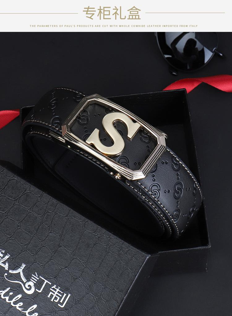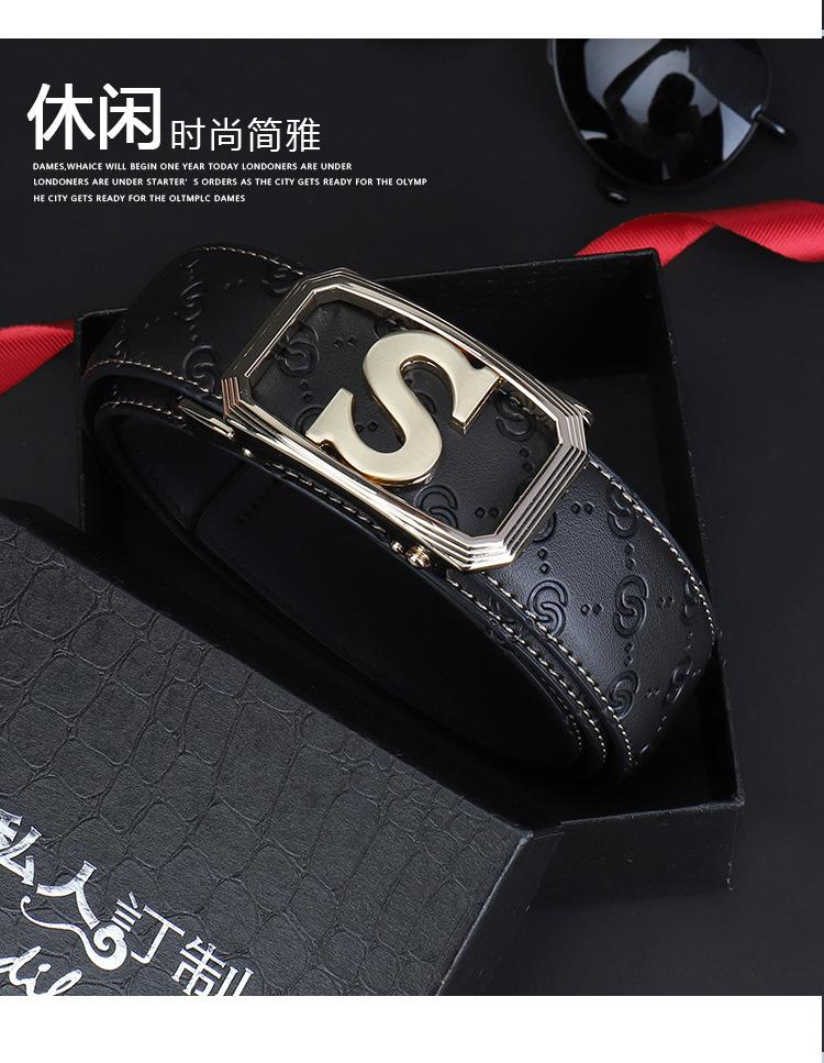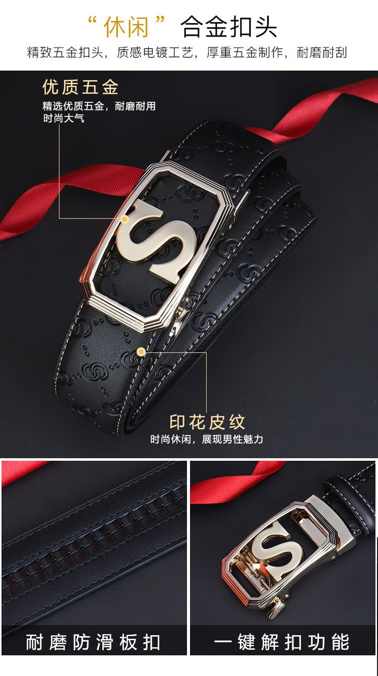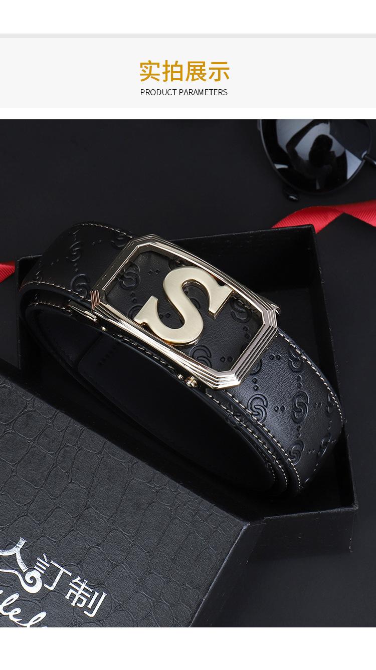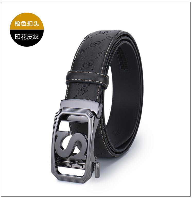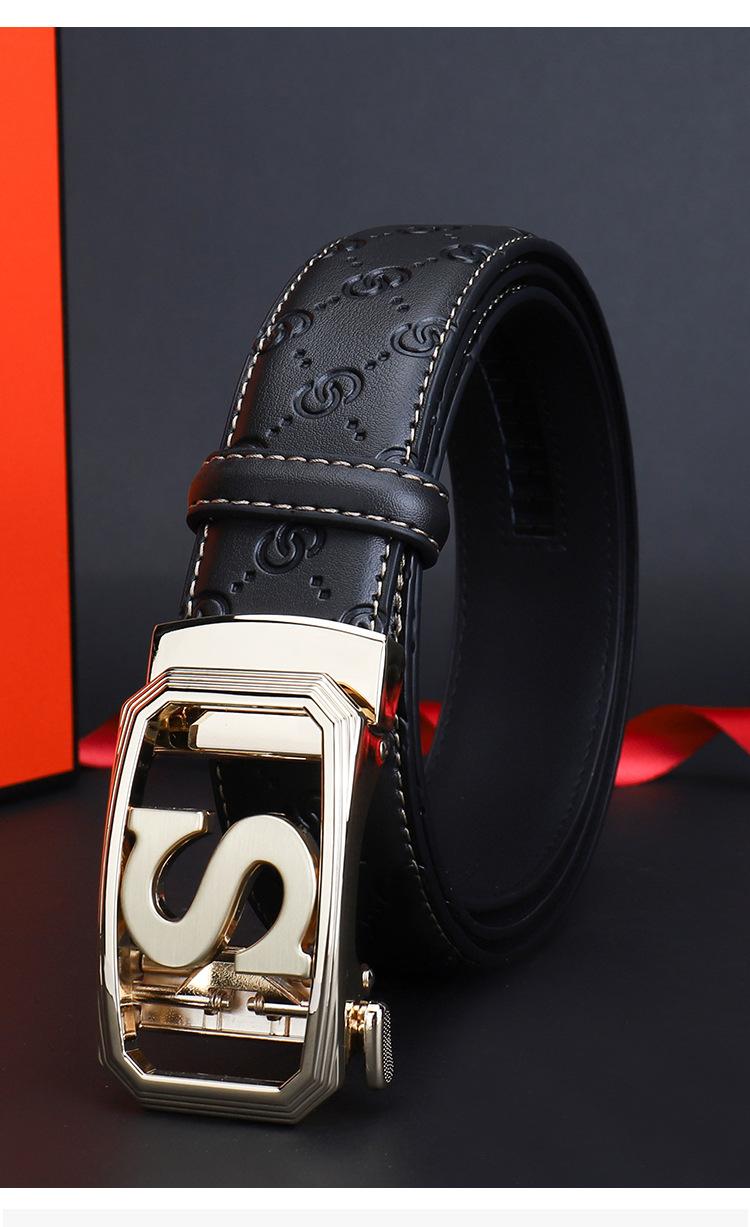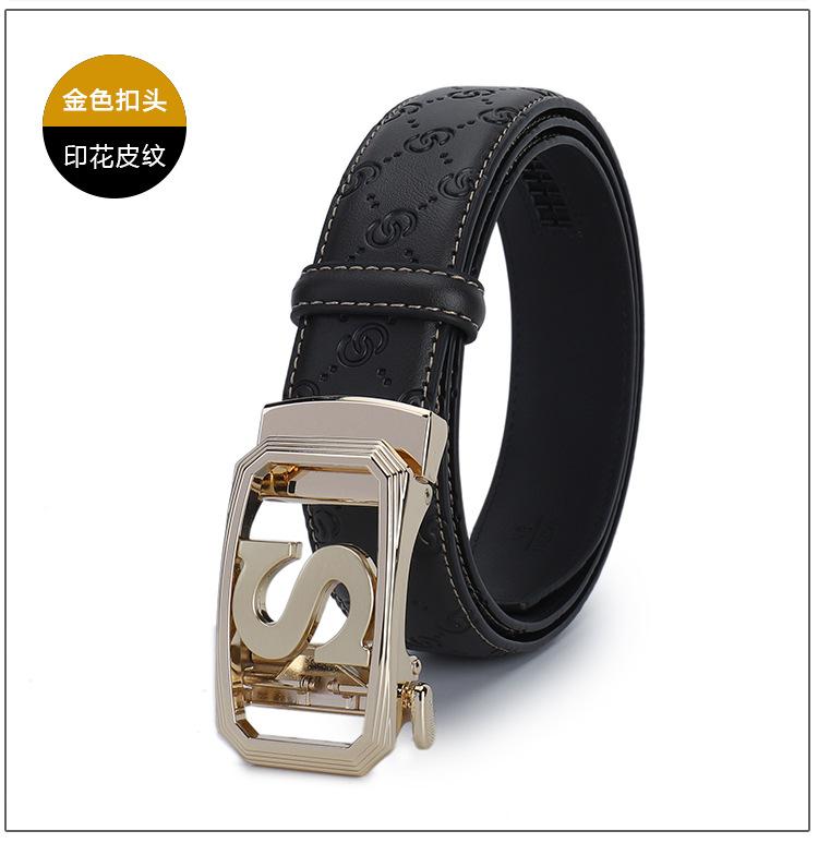 Cinturón de Acero Inoxidable Cuero Vacuno para Hombre Hebilla Automática Letra S Hebilla Dorada Cinturón con Patrón de Cuero Impreso Cinturón para Hombre de una Pieza Cabello