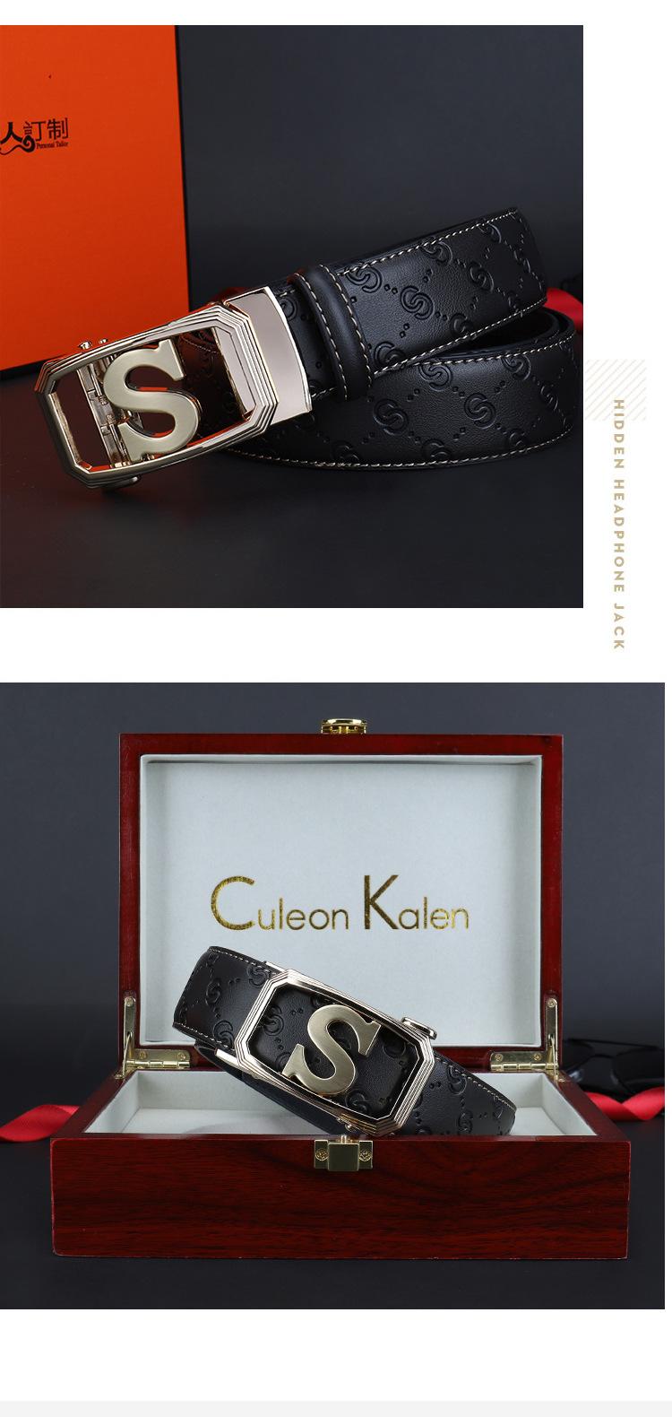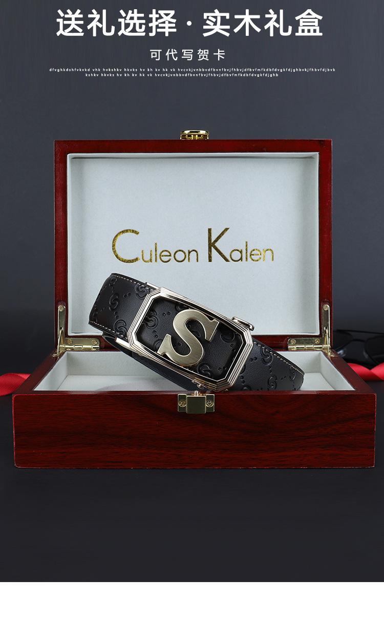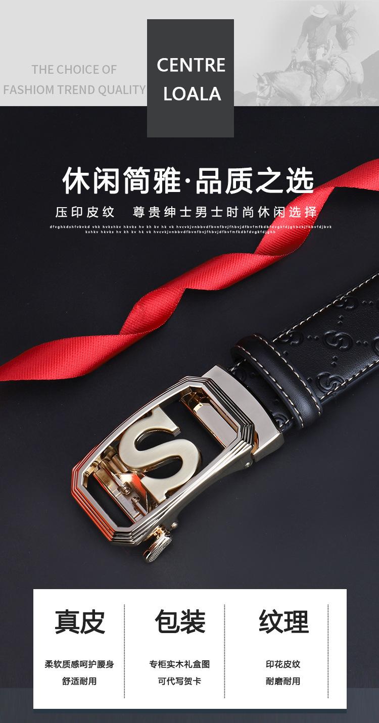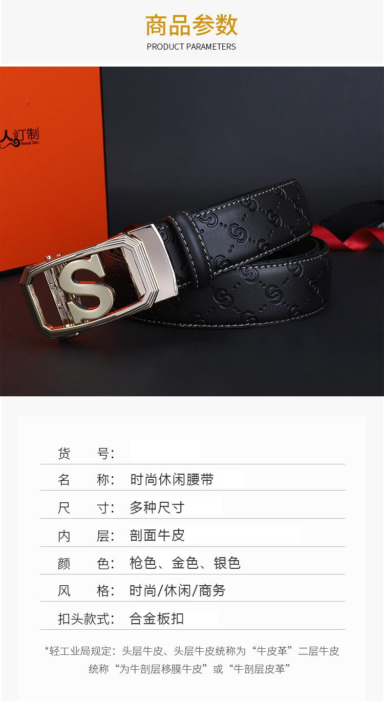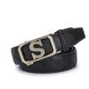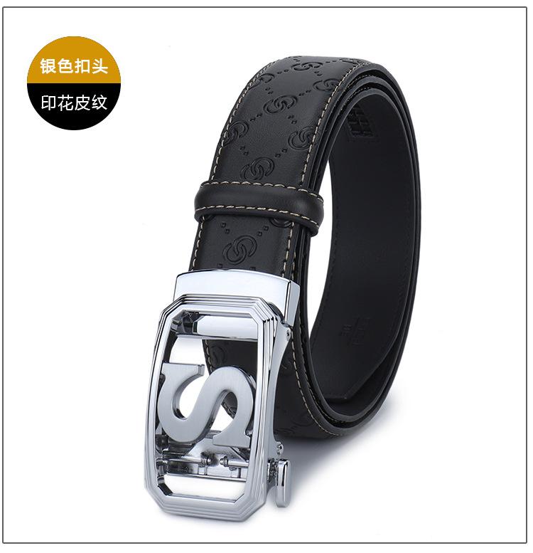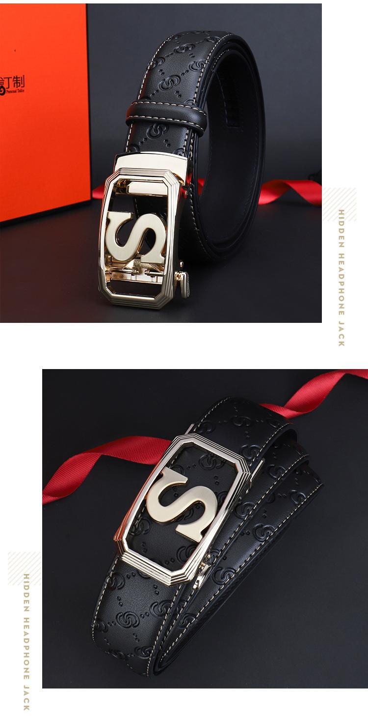 Cinturón de Acero Inoxidable Cuero Vacuno para Hombre Hebilla Automática Letra S Hebilla Dorada Cinturón con Patrón de Cuero Impreso Cinturón para Hombre de una Pieza Cabello
