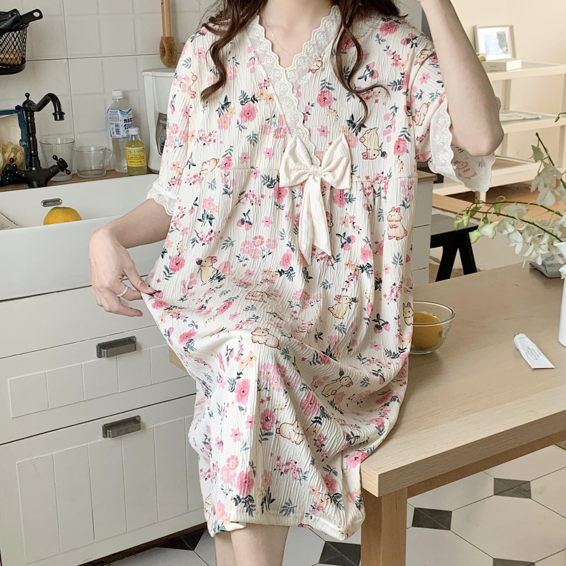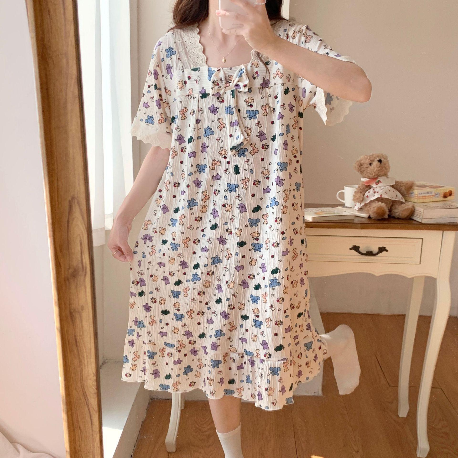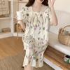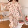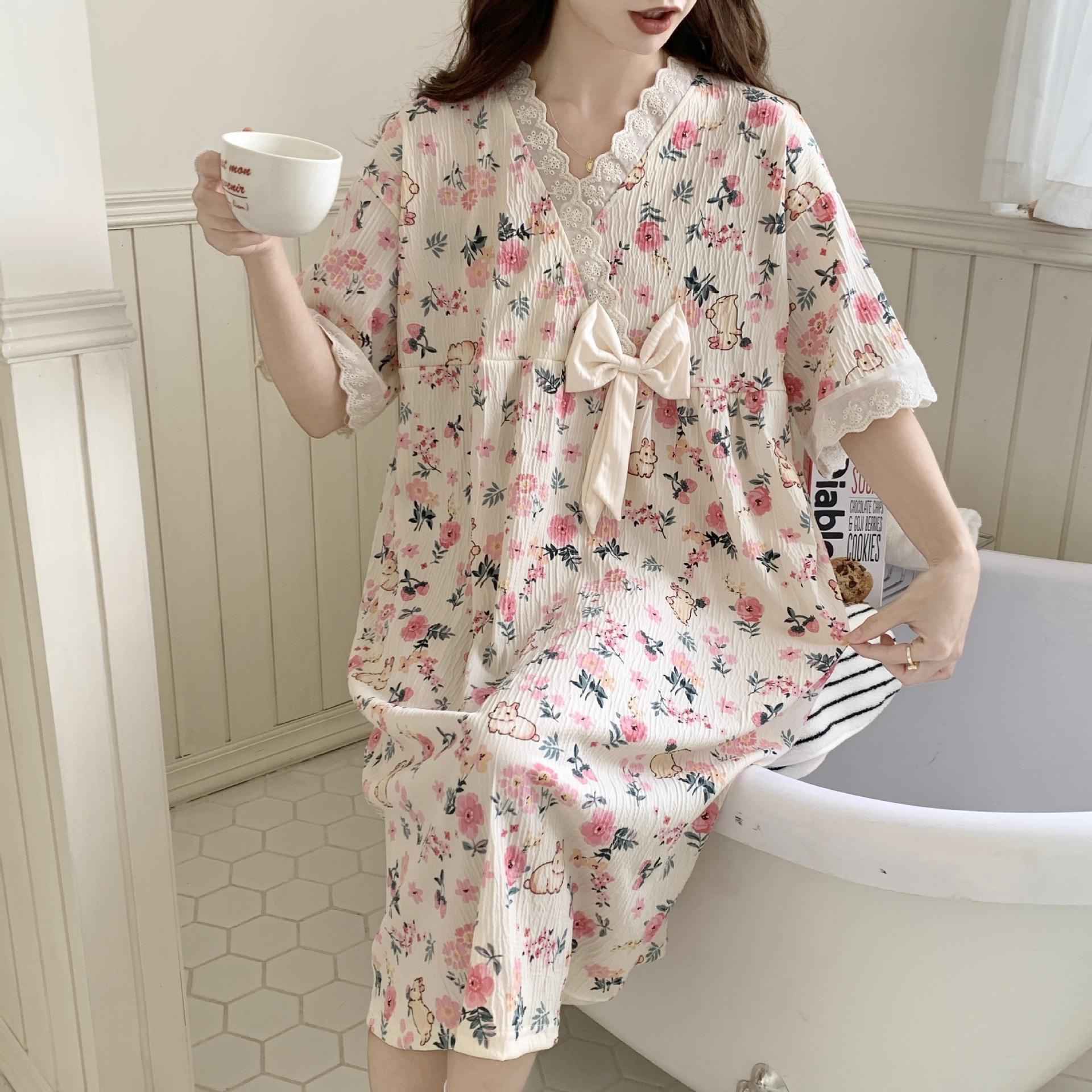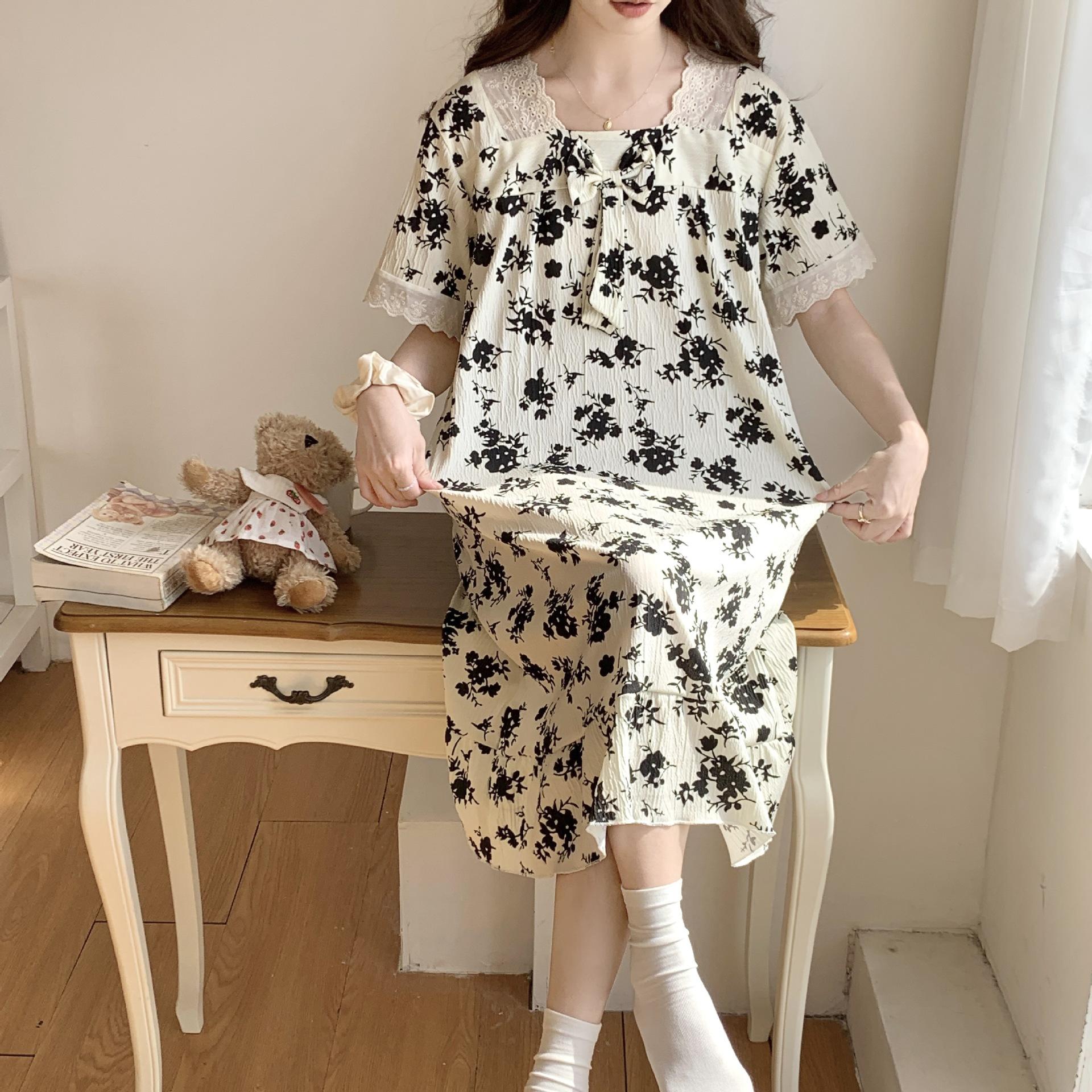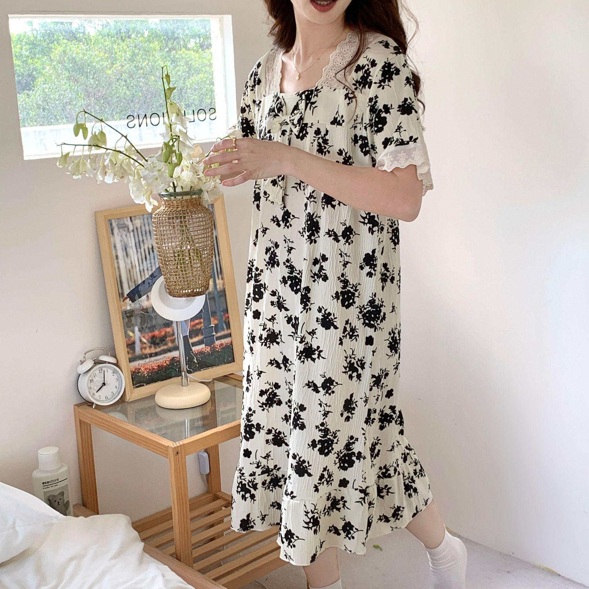 Nuevo camisón de verano de manga corta para mujer estilo coreano lindo crepé de algodón burbuja floral delgado vestido de moda para estar en casa