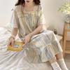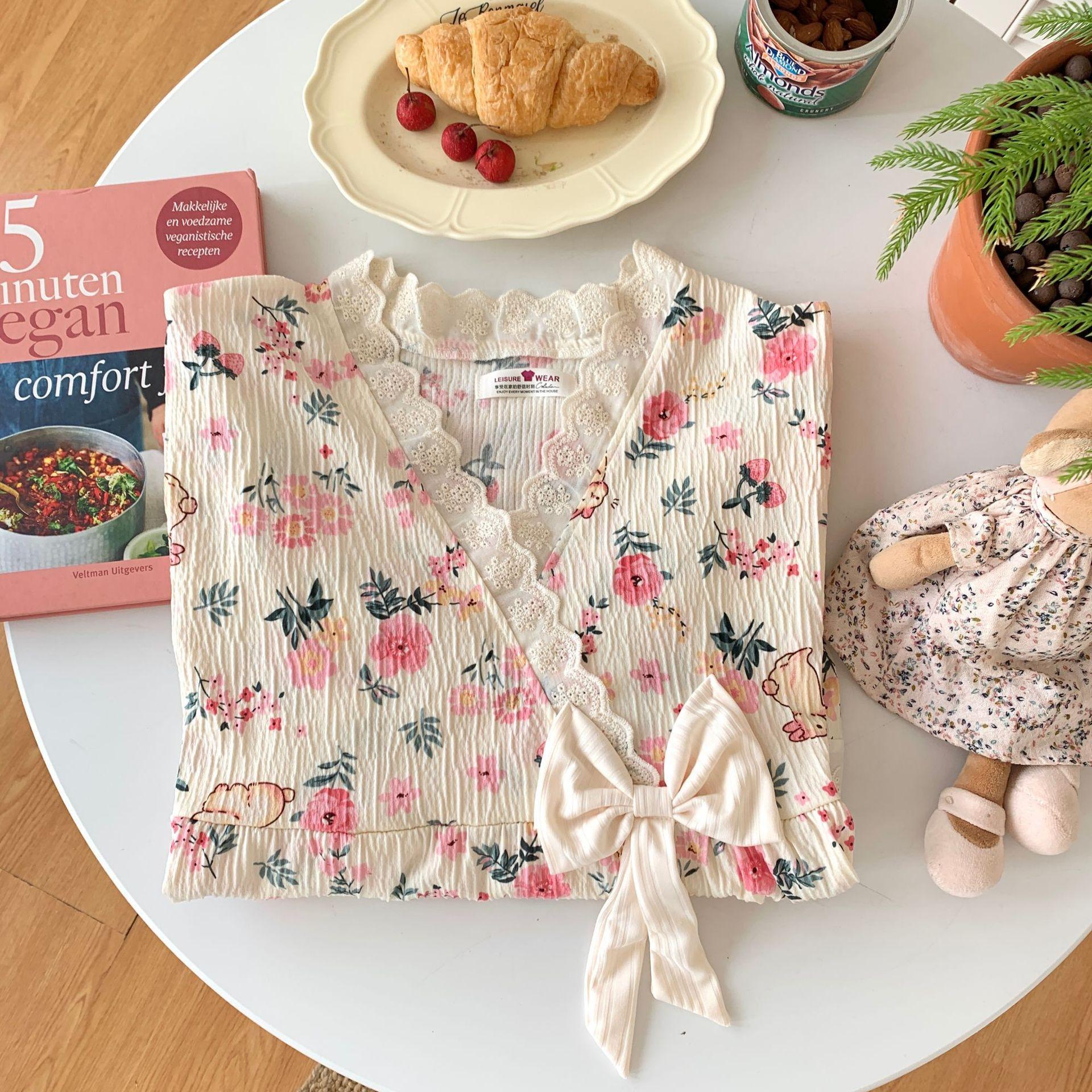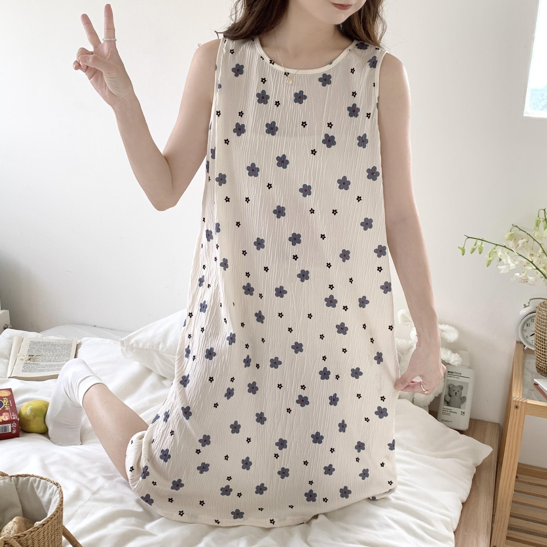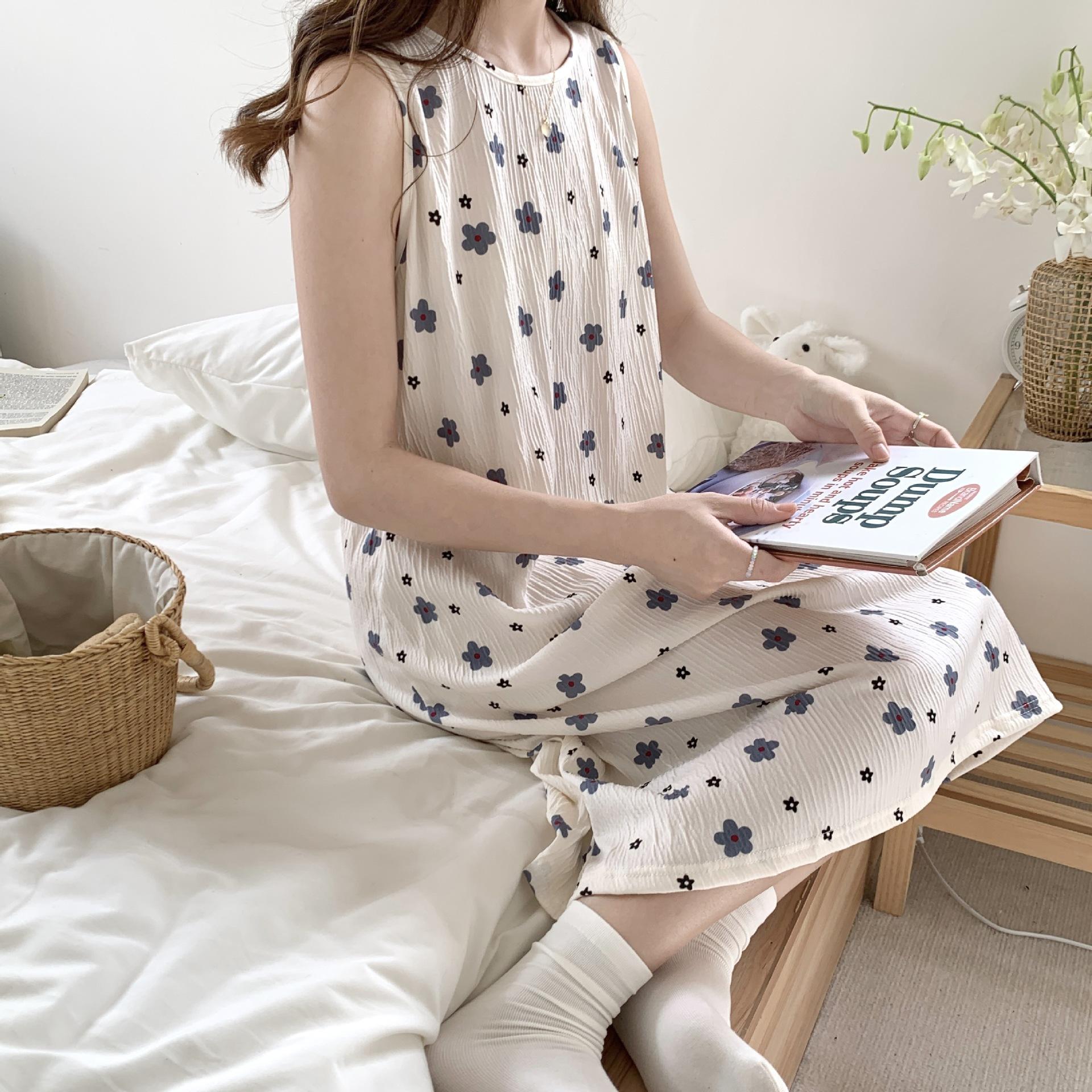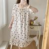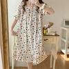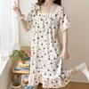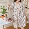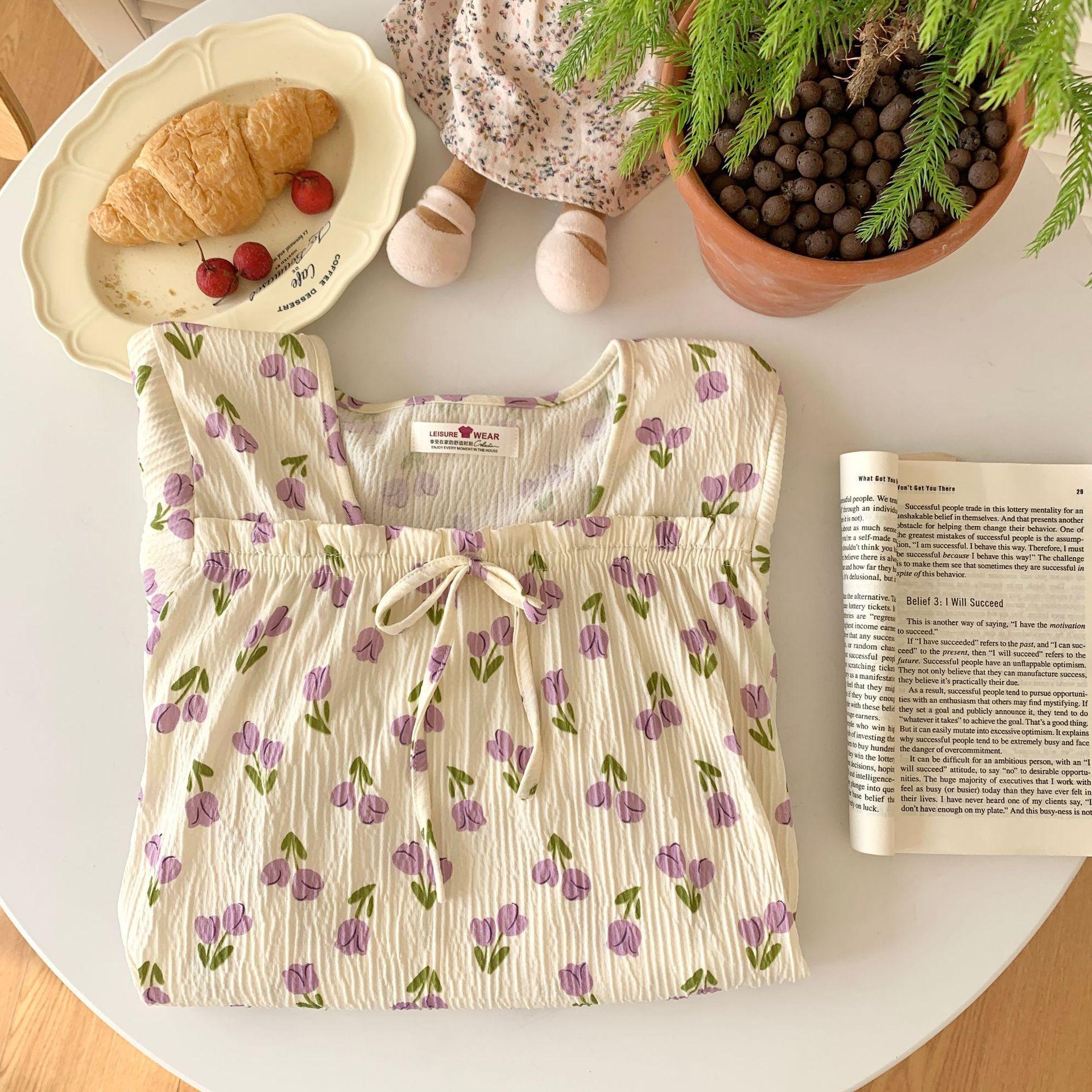 Nuevo camisón de verano de manga corta para mujer estilo coreano lindo crepé de algodón burbuja floral delgado vestido de moda para estar en casa