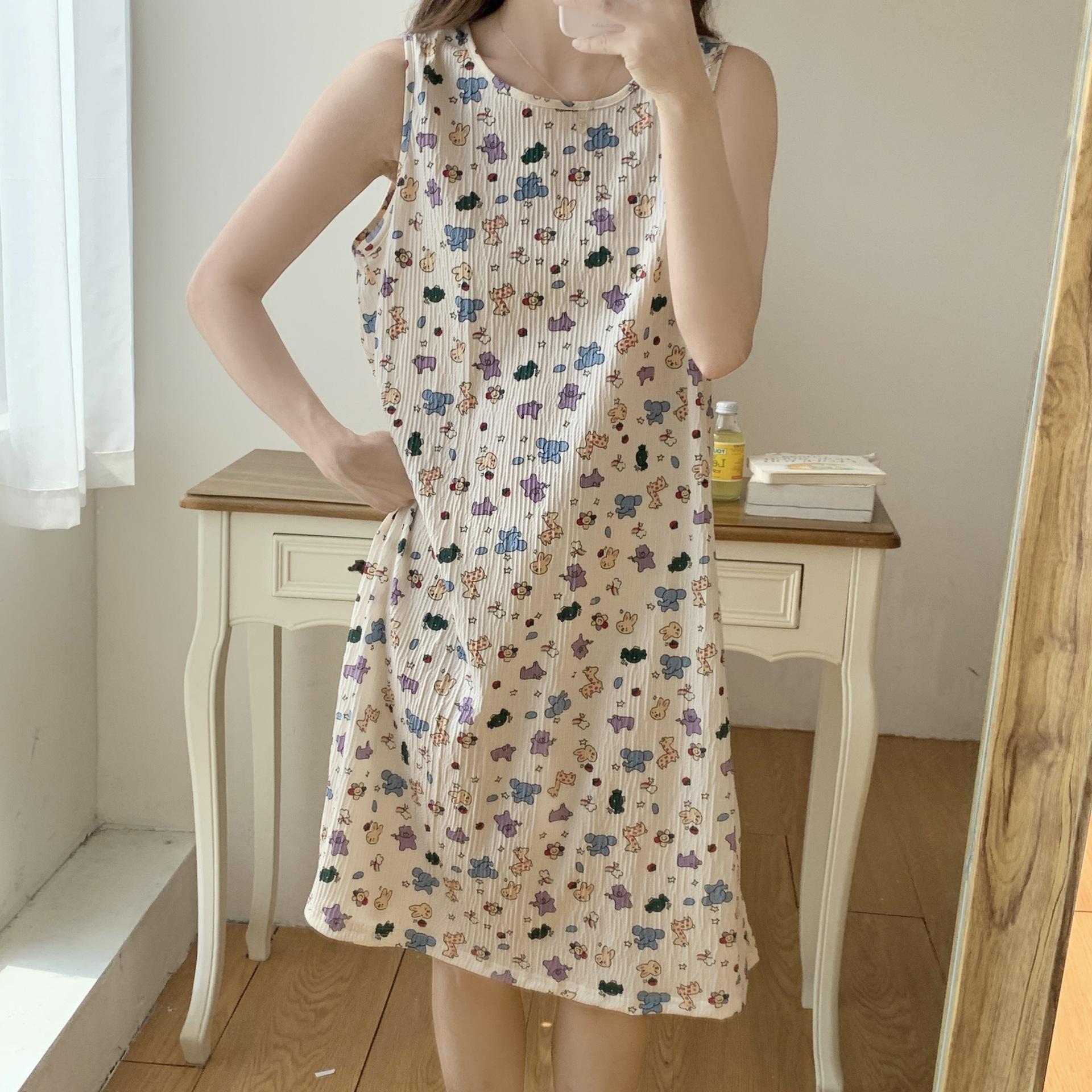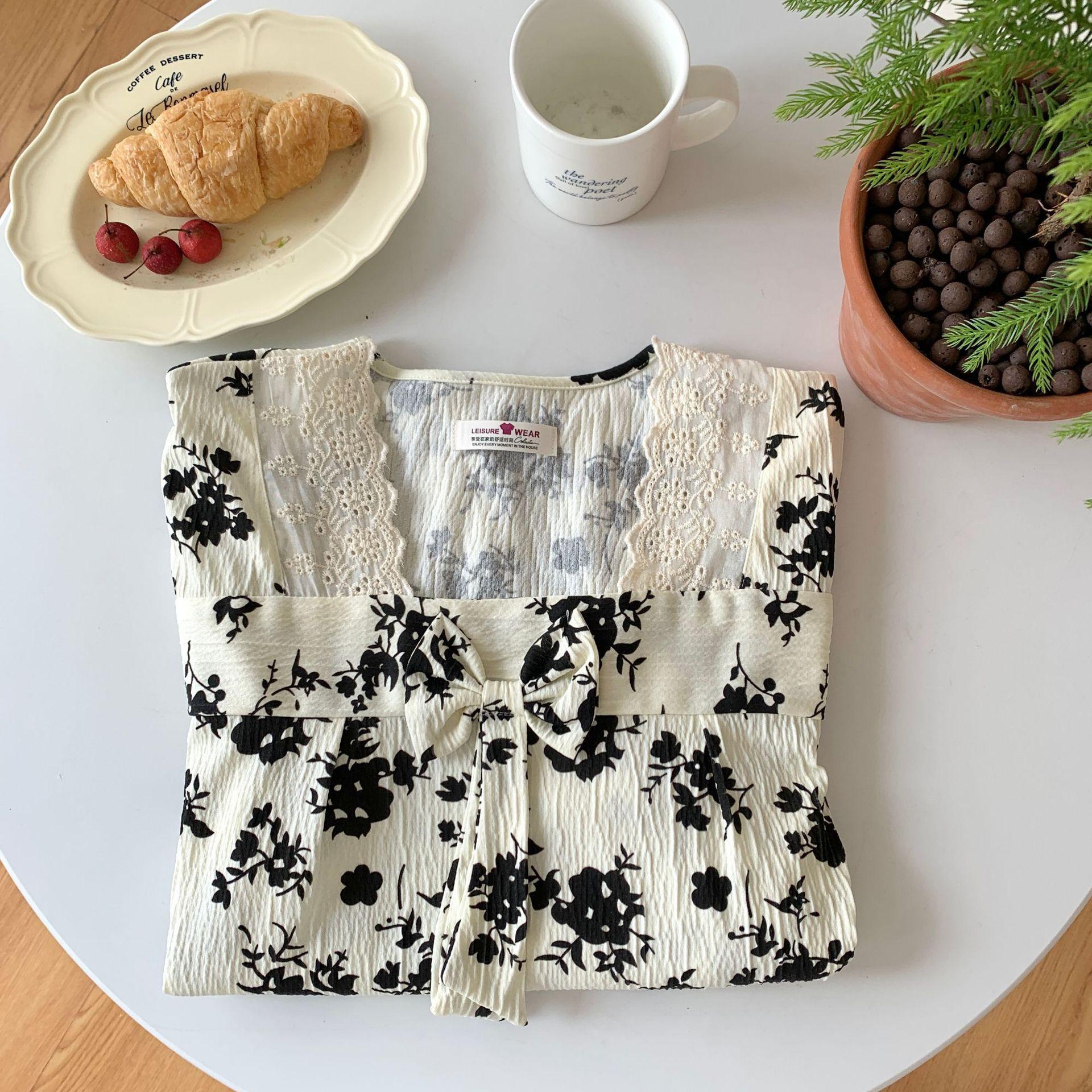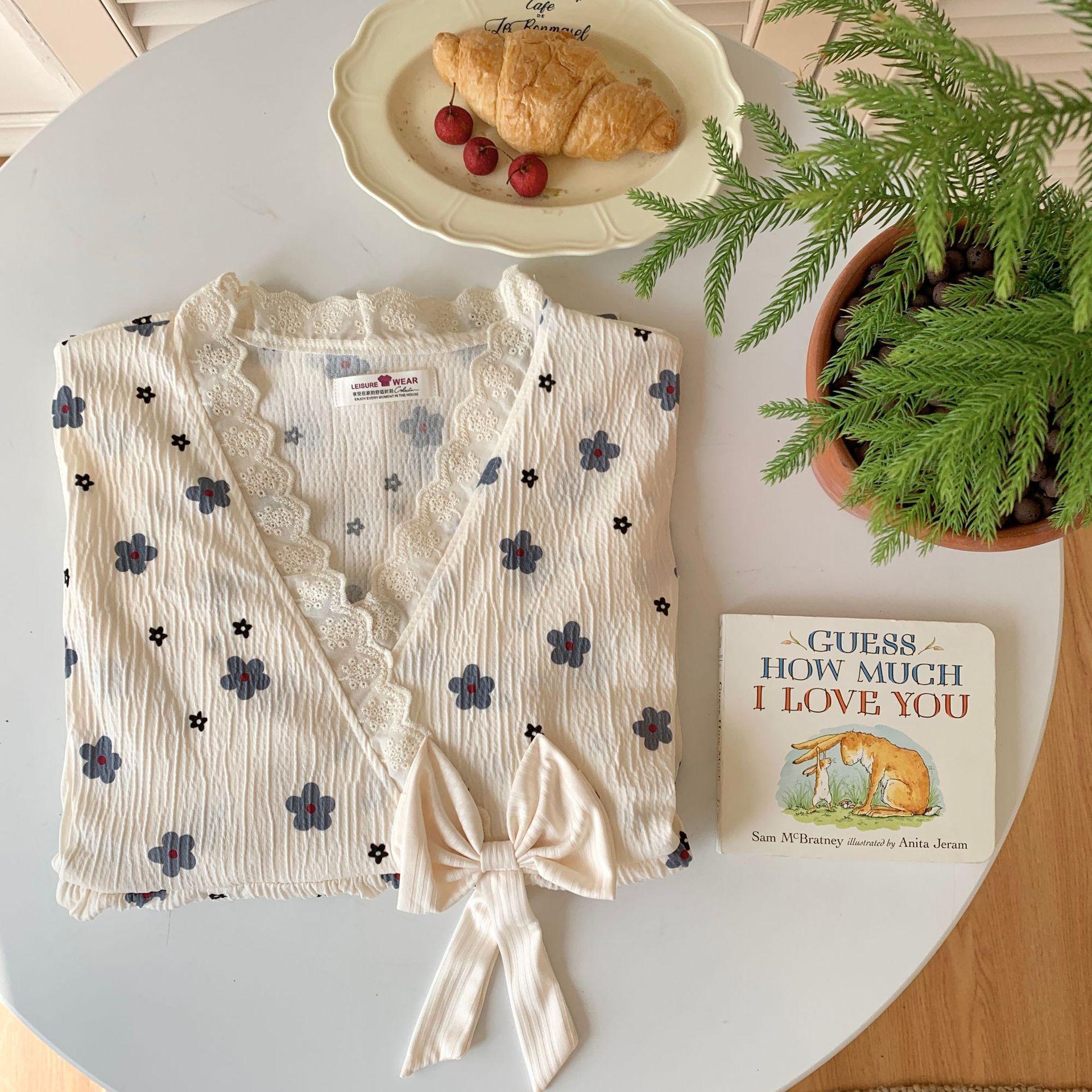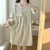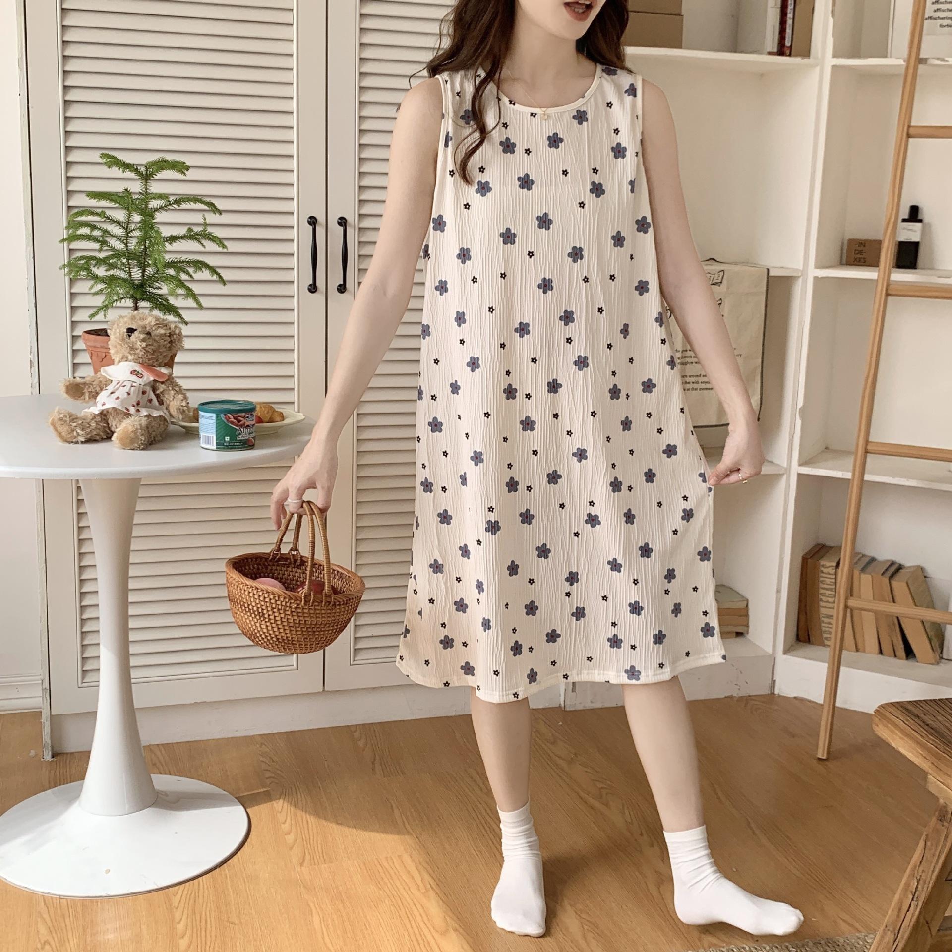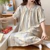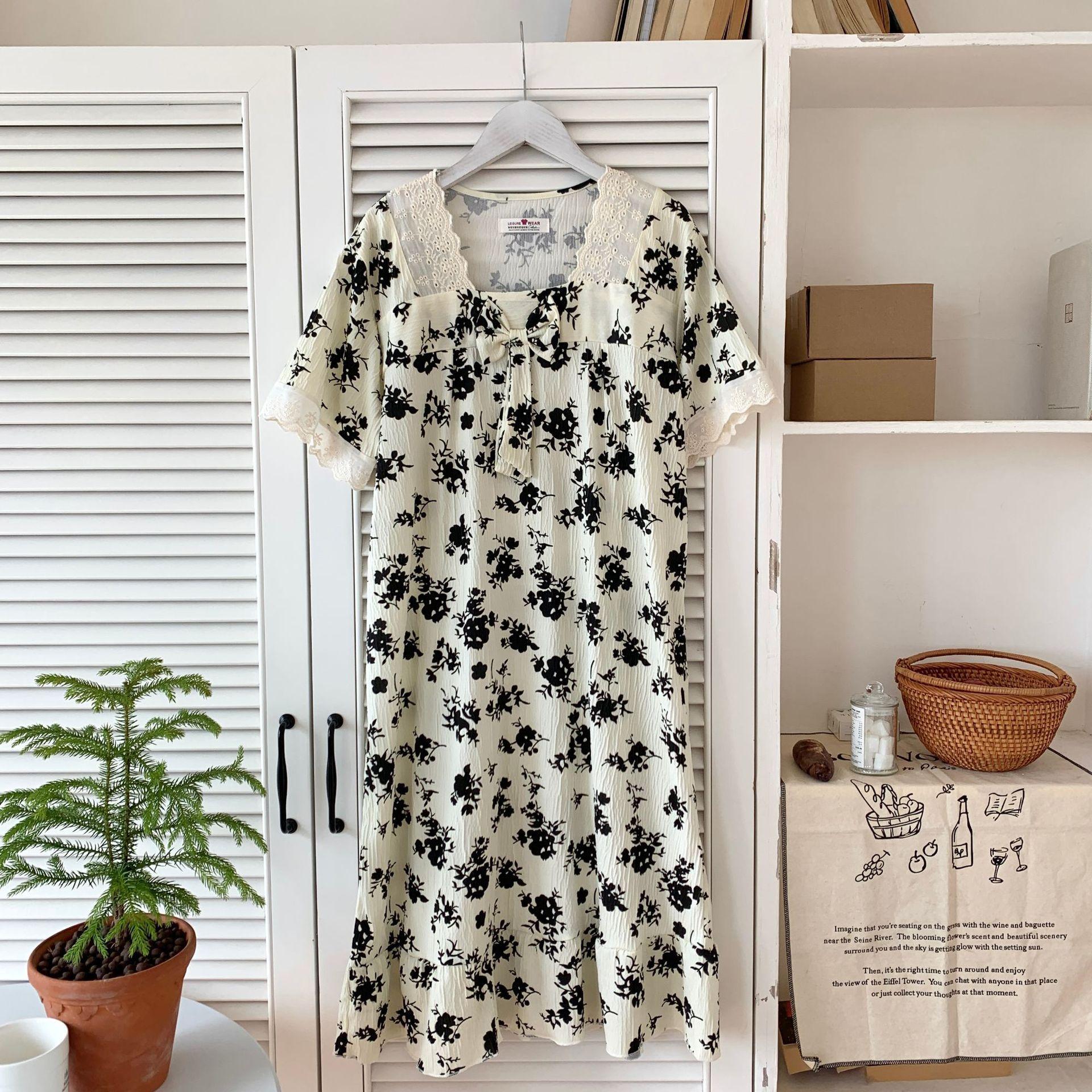 Nuevo camisón de verano de manga corta para mujer estilo coreano lindo crepé de algodón burbuja floral delgado vestido de moda para estar en casa