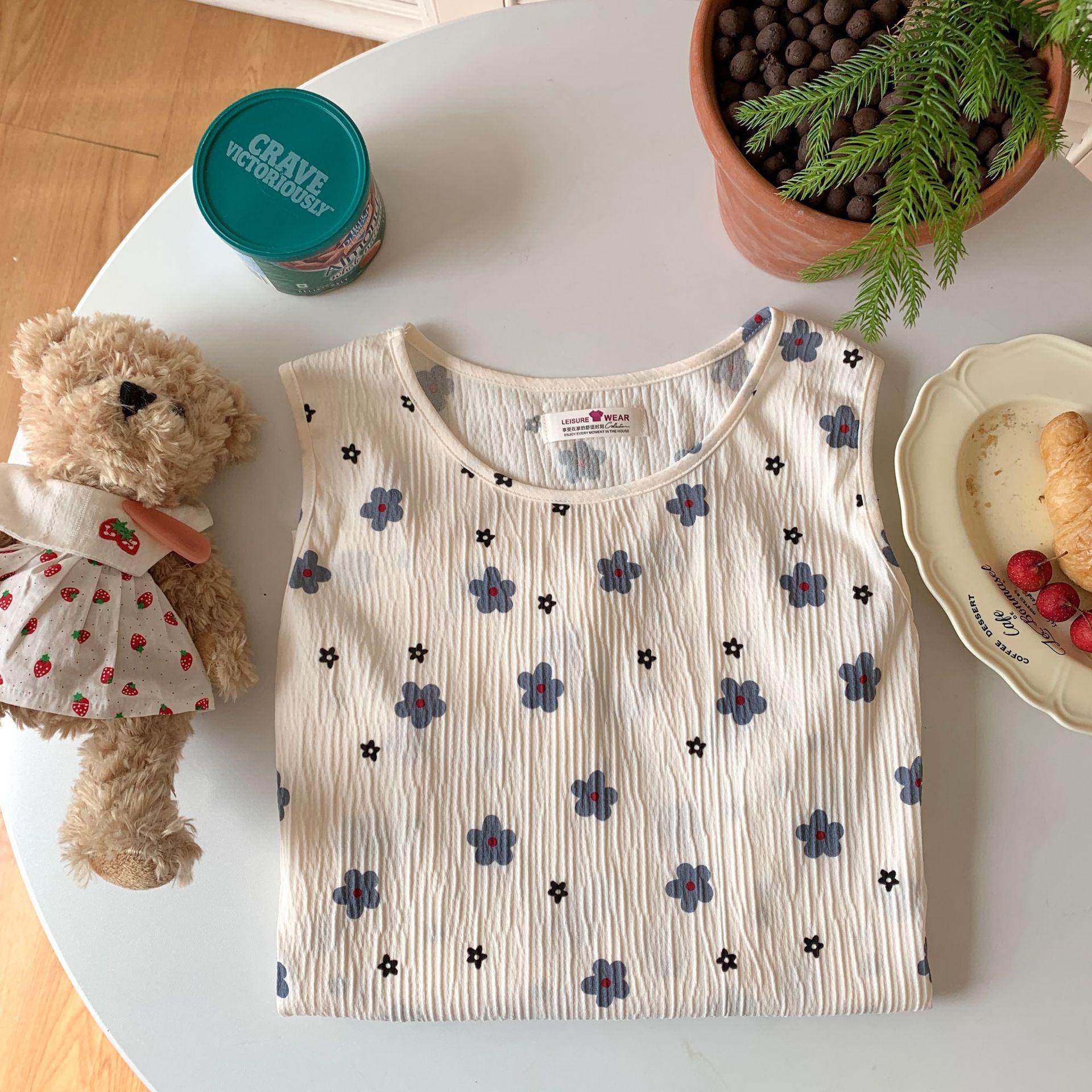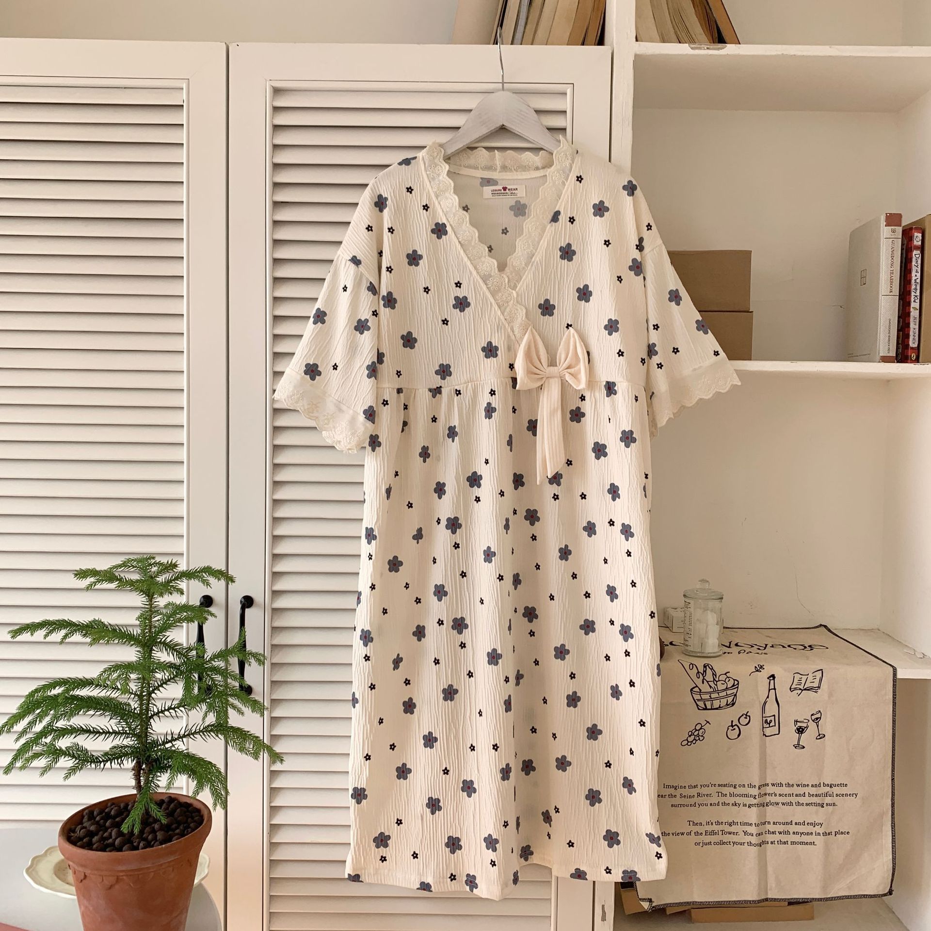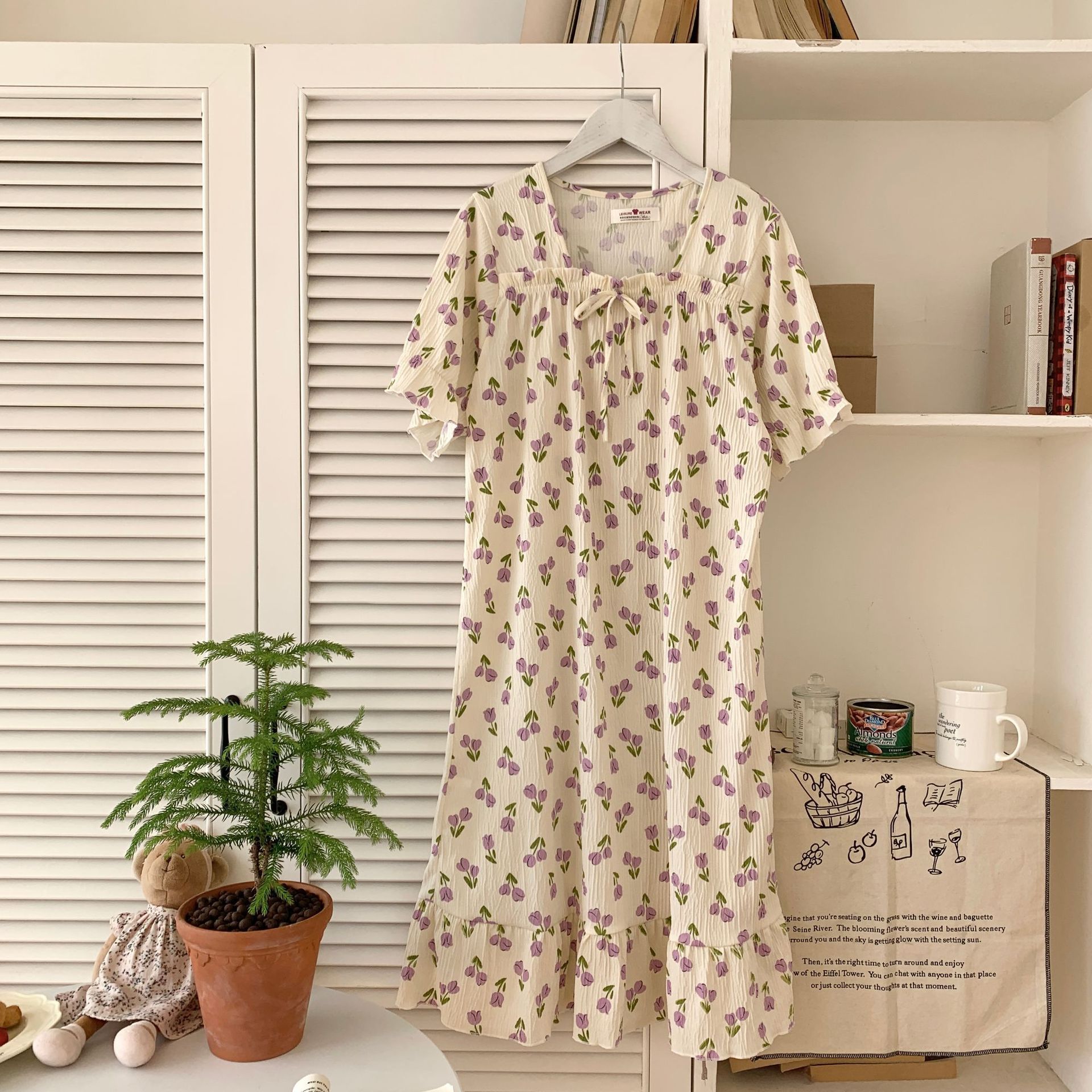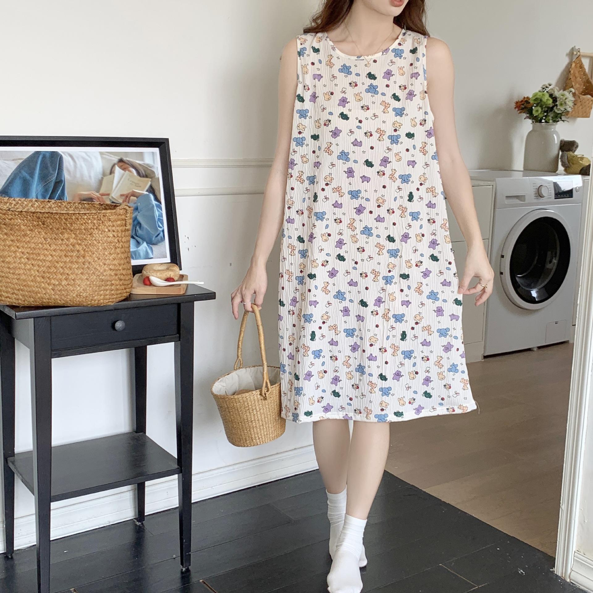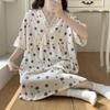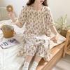 Nuevo camisón de verano de manga corta para mujer estilo coreano lindo crepé de algodón burbuja floral delgado vestido de moda para estar en casa