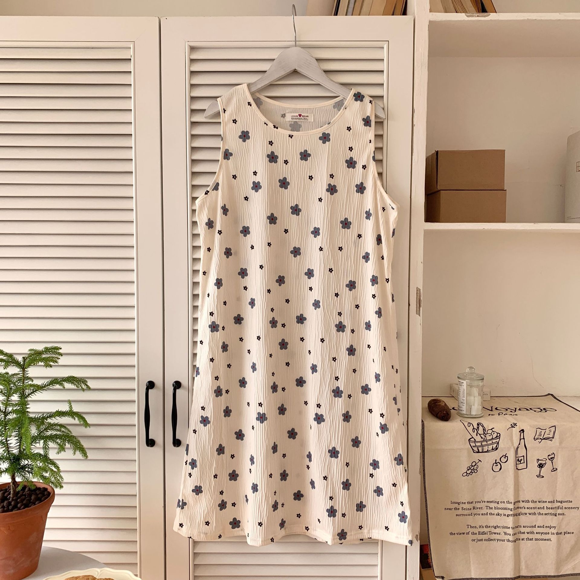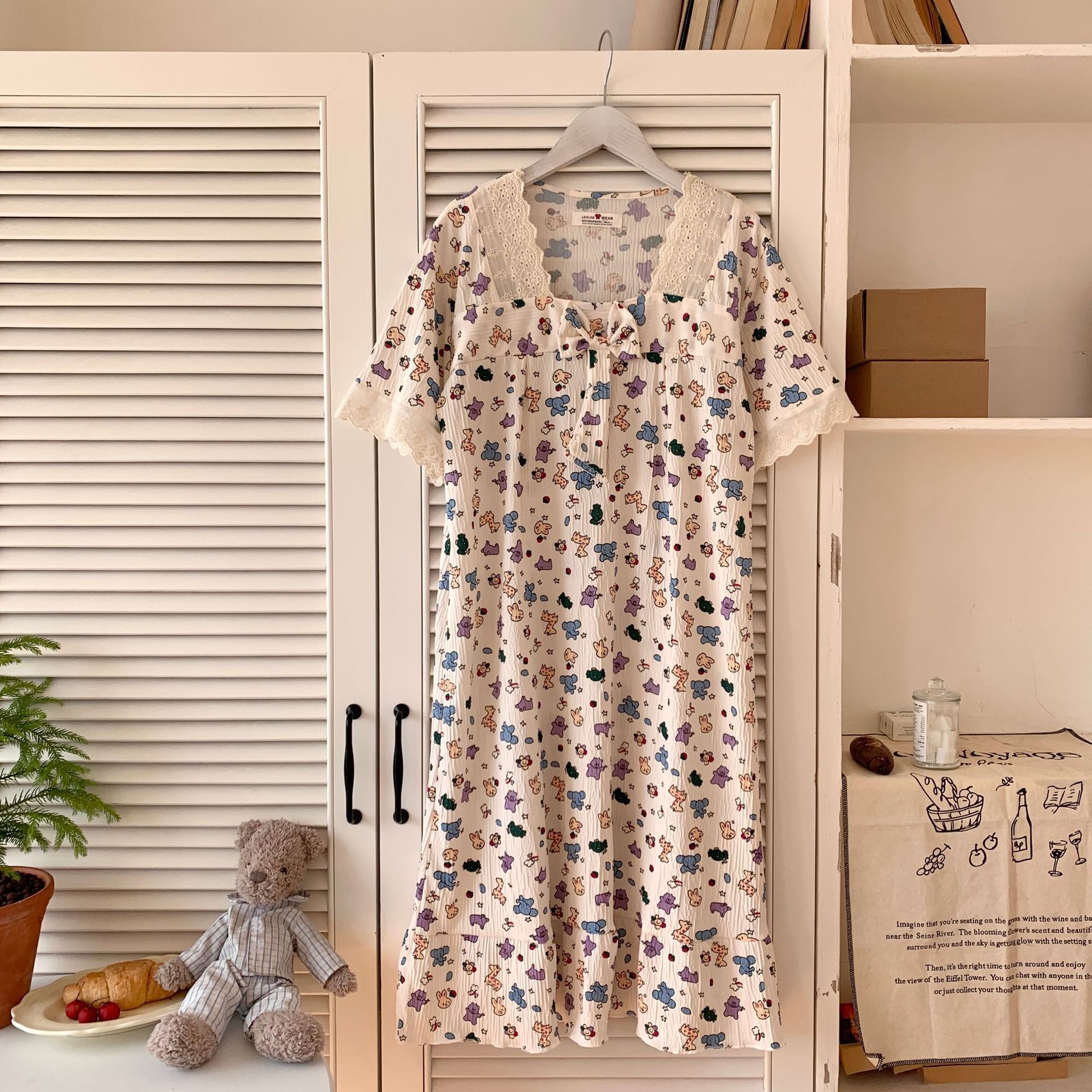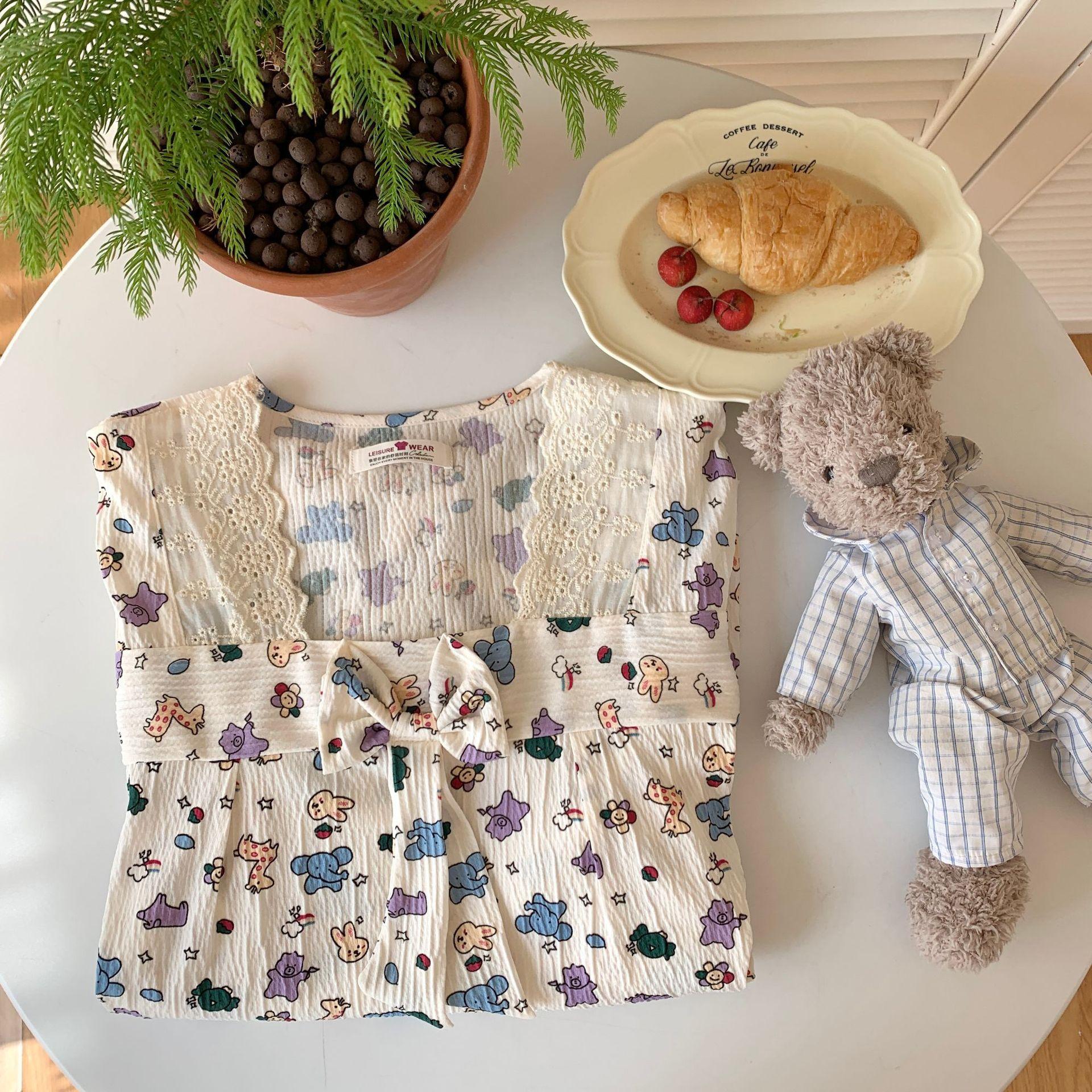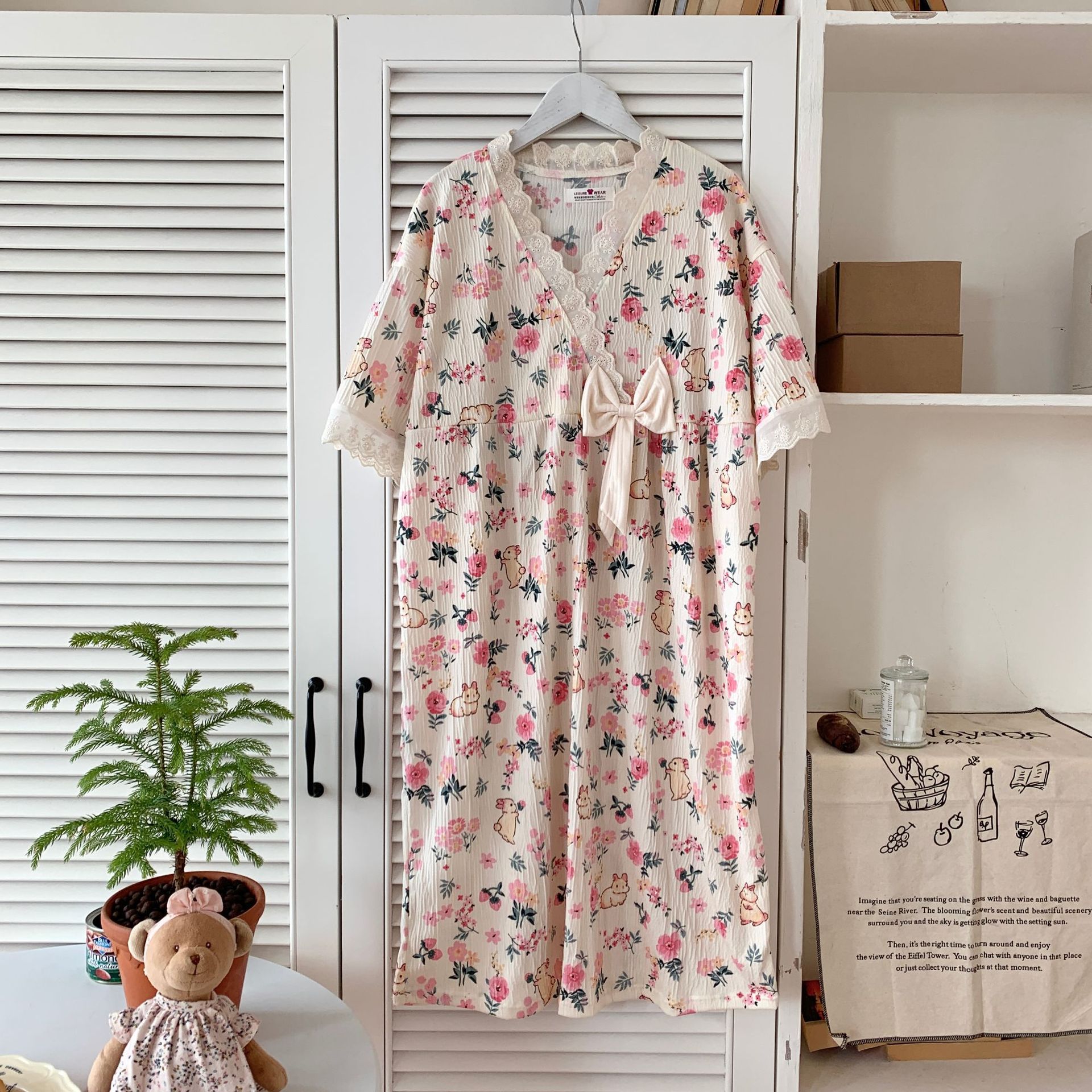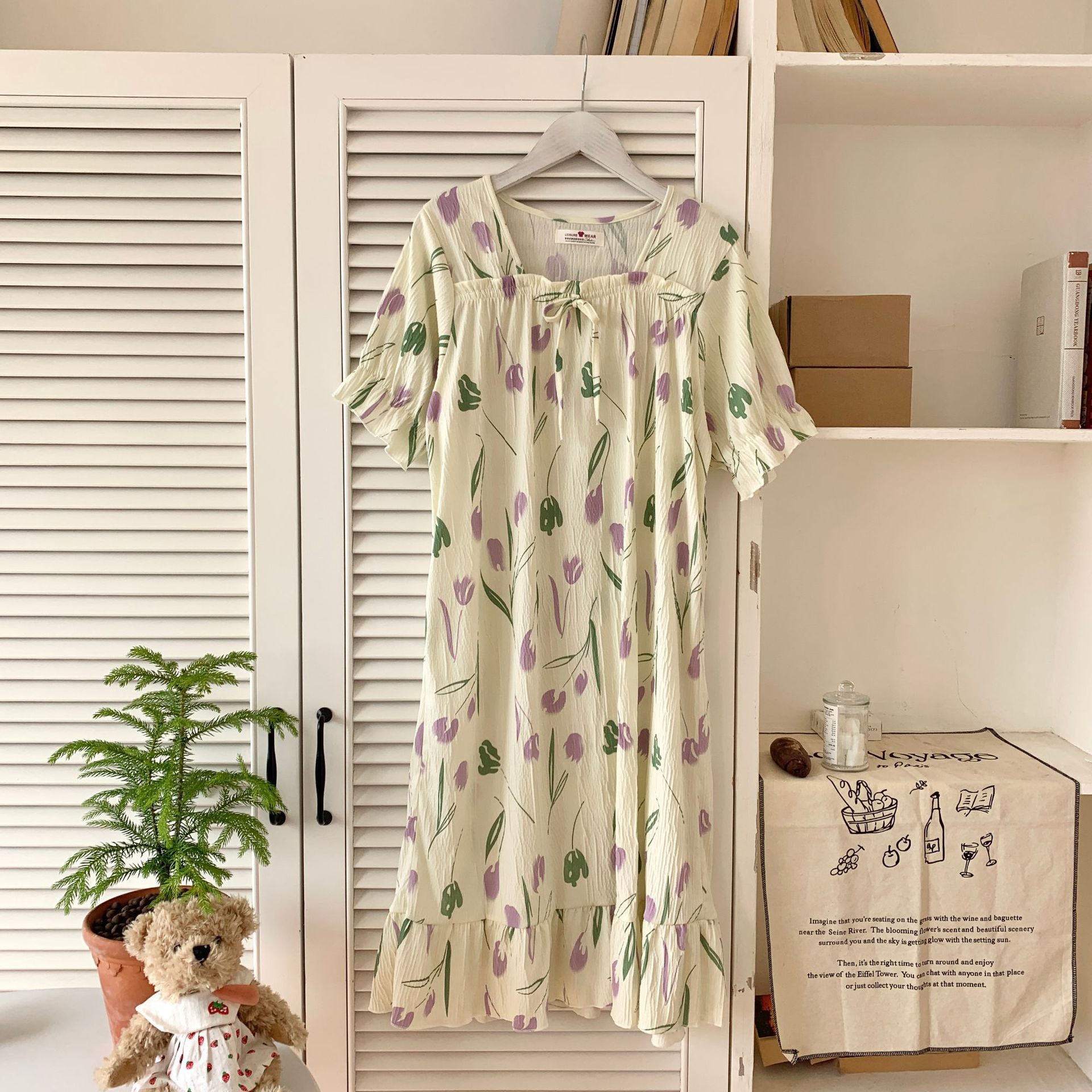 Nuevo camisón de verano de manga corta para mujer estilo coreano lindo crepé de algodón burbuja floral delgado vestido de moda para estar en casa