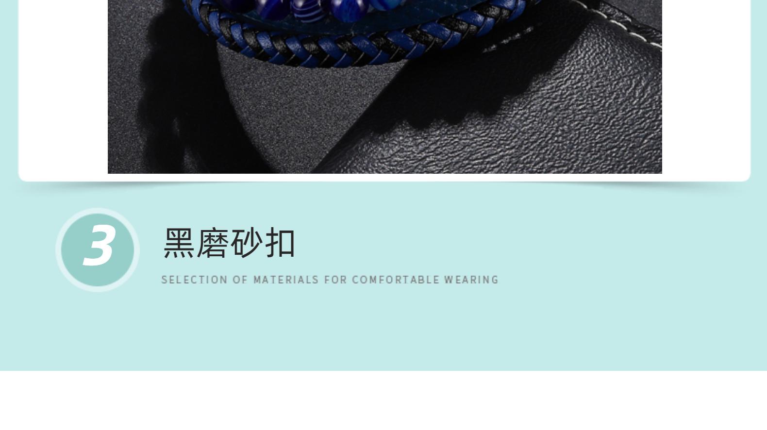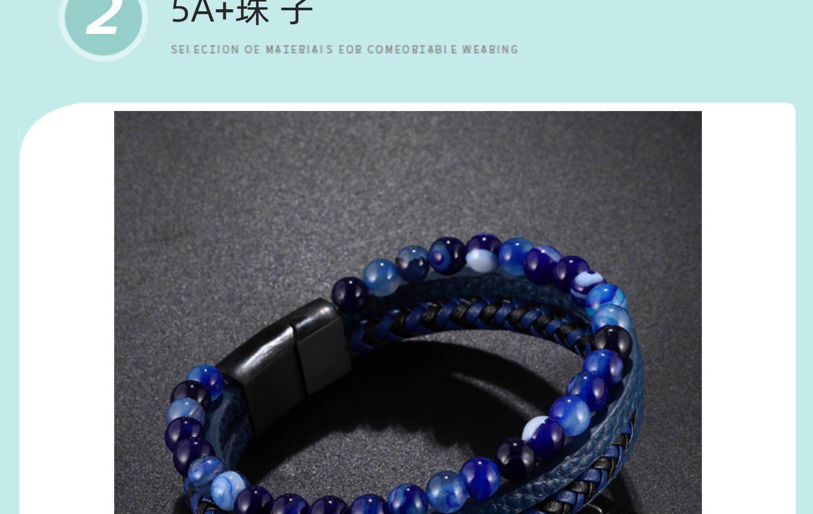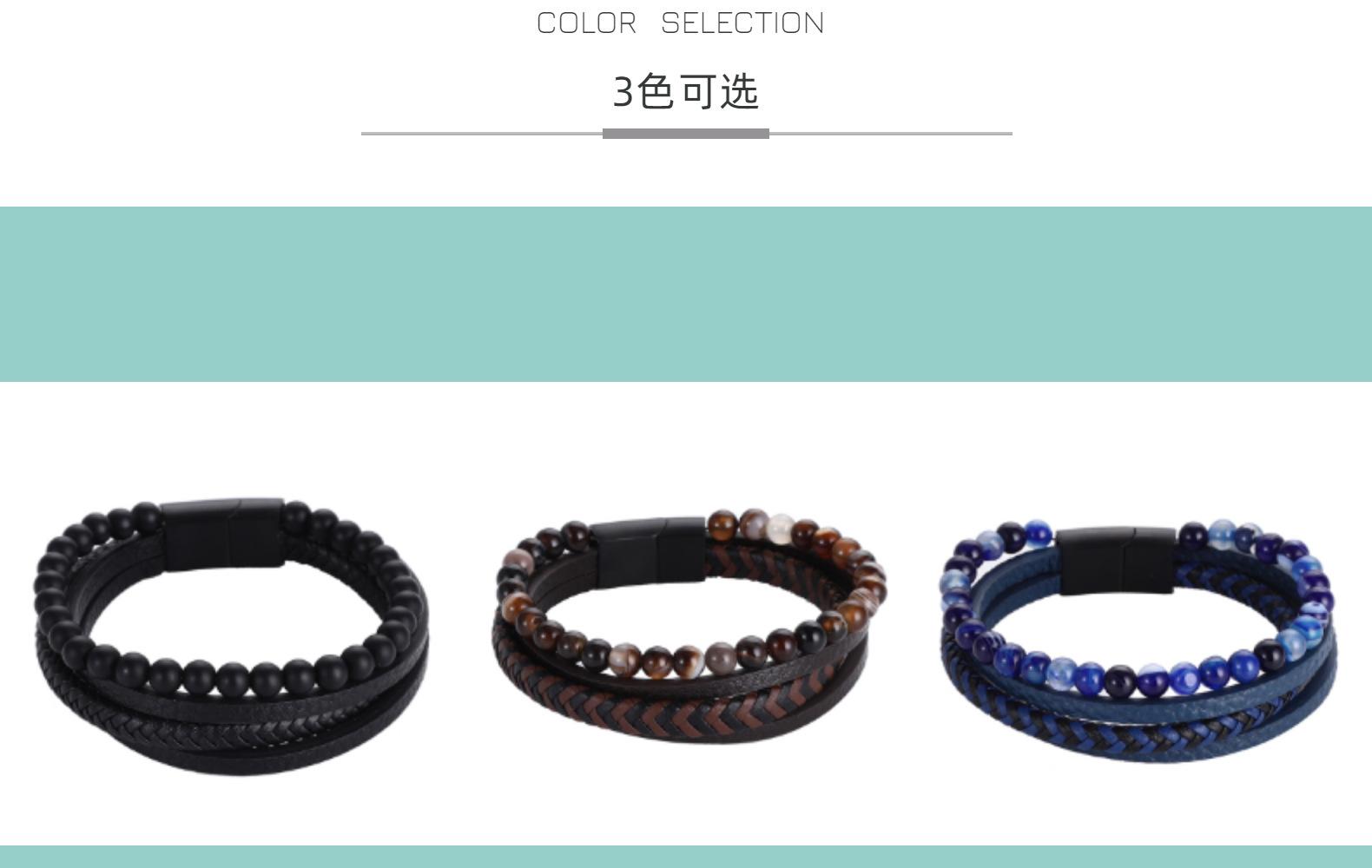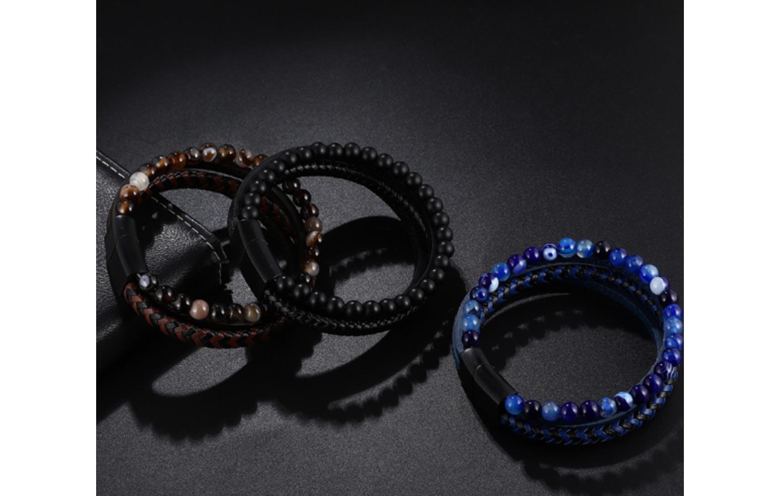 Black leather + black frosted beads, Brown skin + brown stripe beads, Blue leather + blue stripe beads