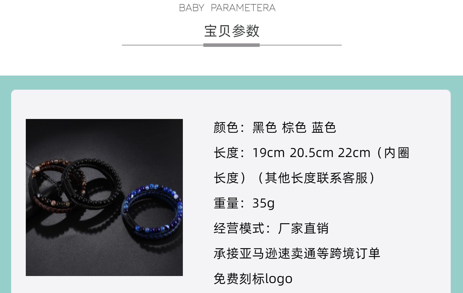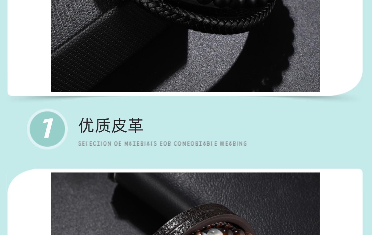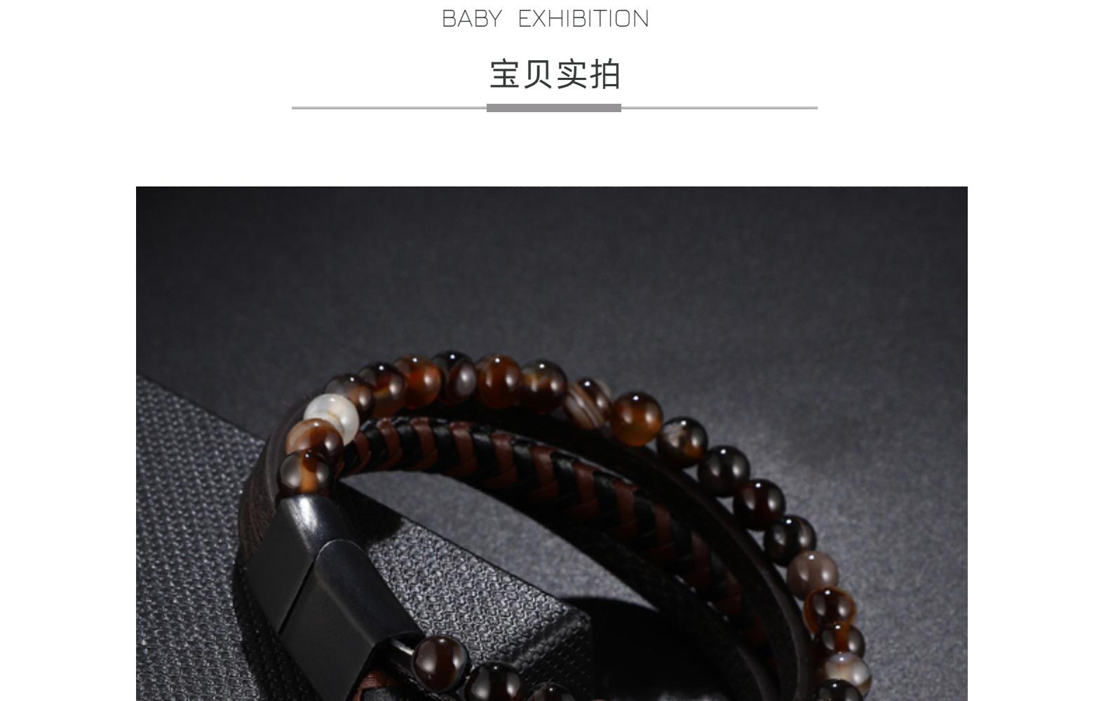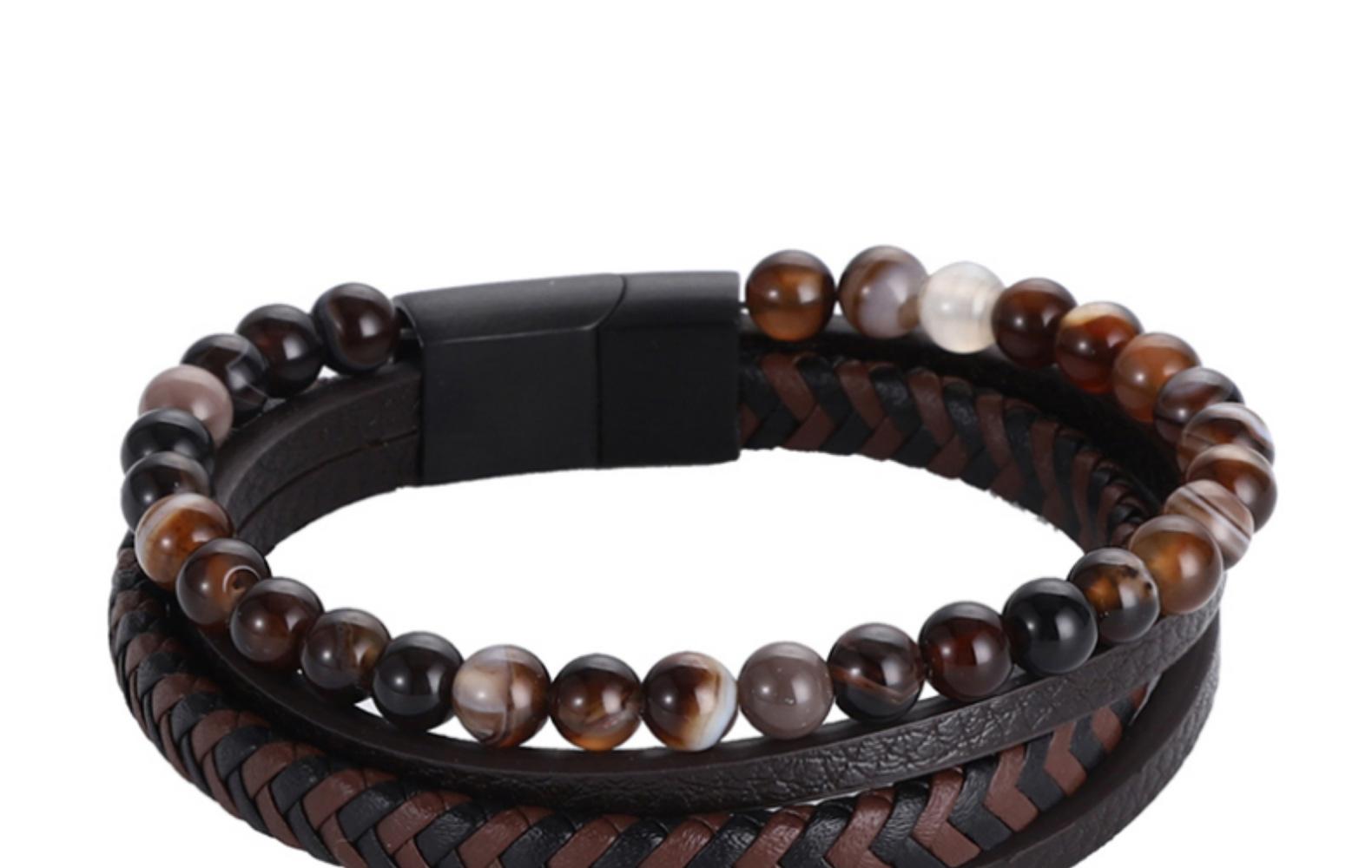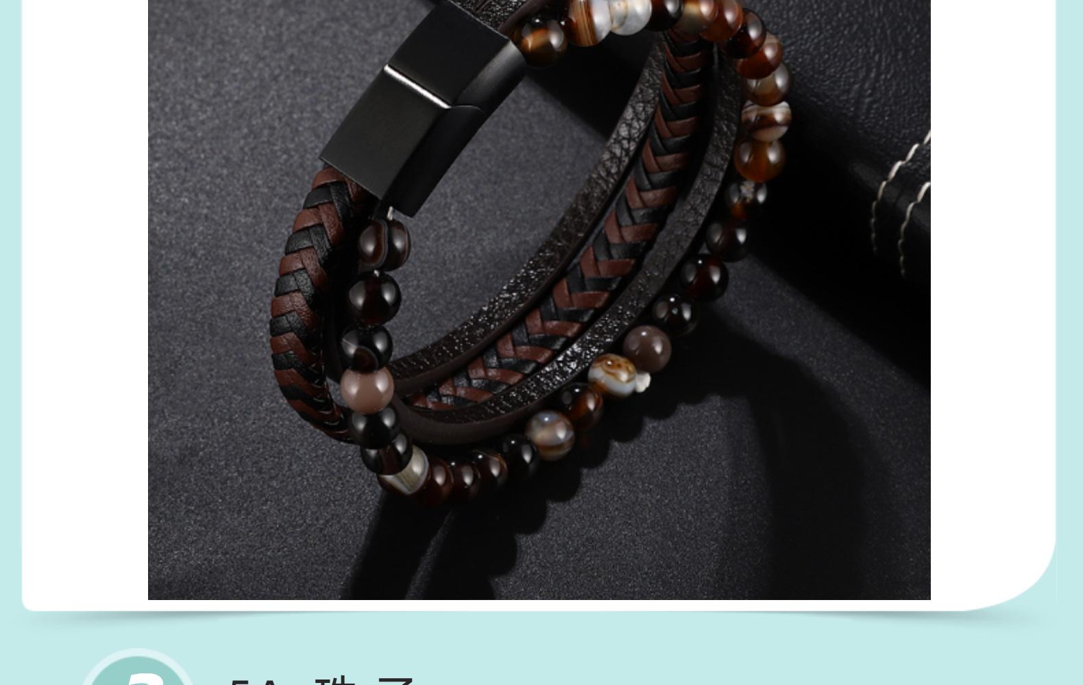 Black leather + black frosted beads, Brown skin + brown stripe beads, Blue leather + blue stripe beads