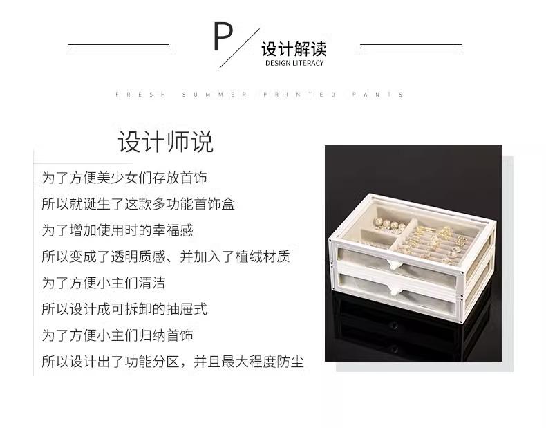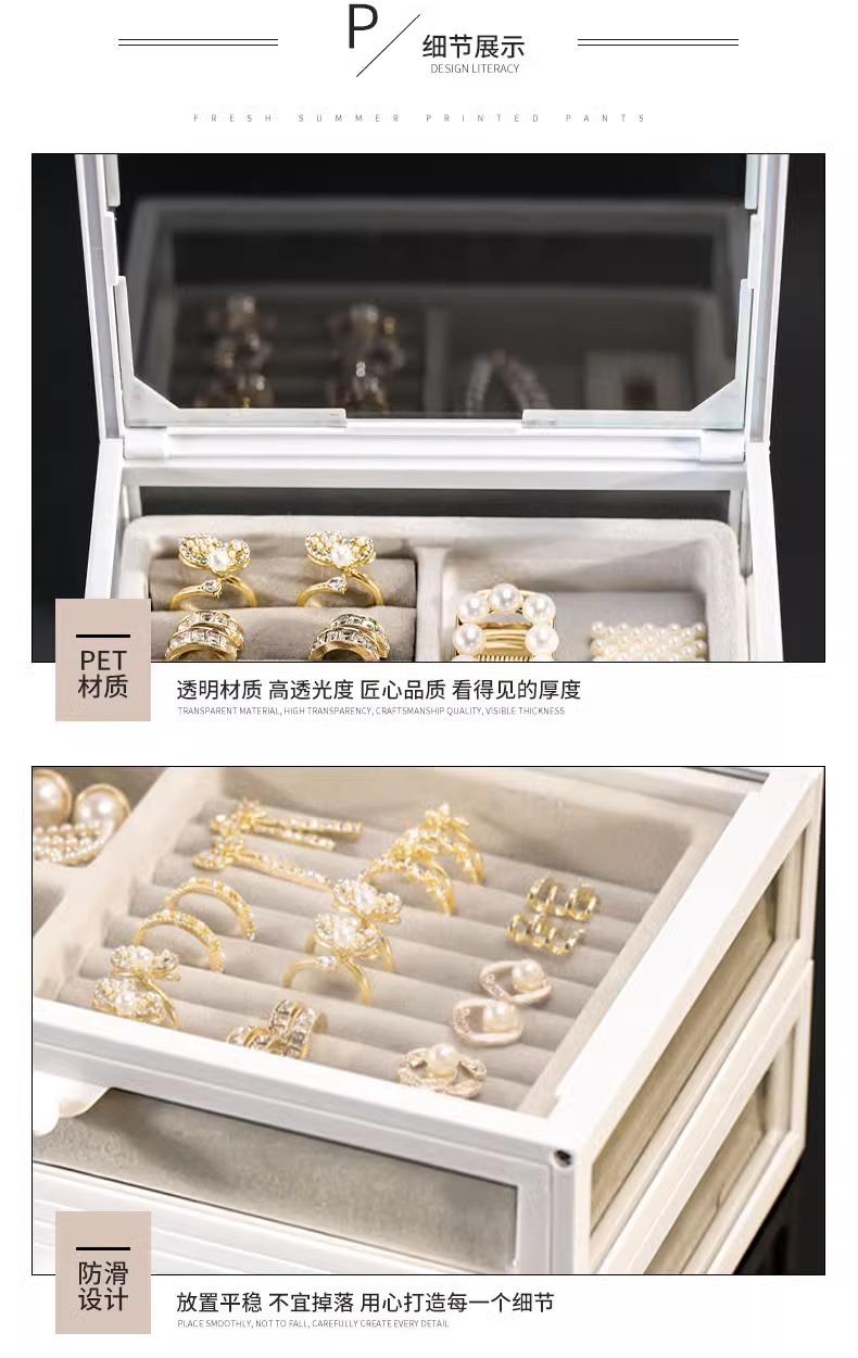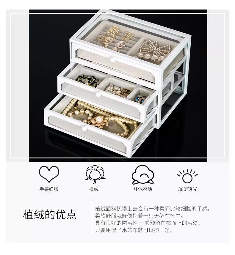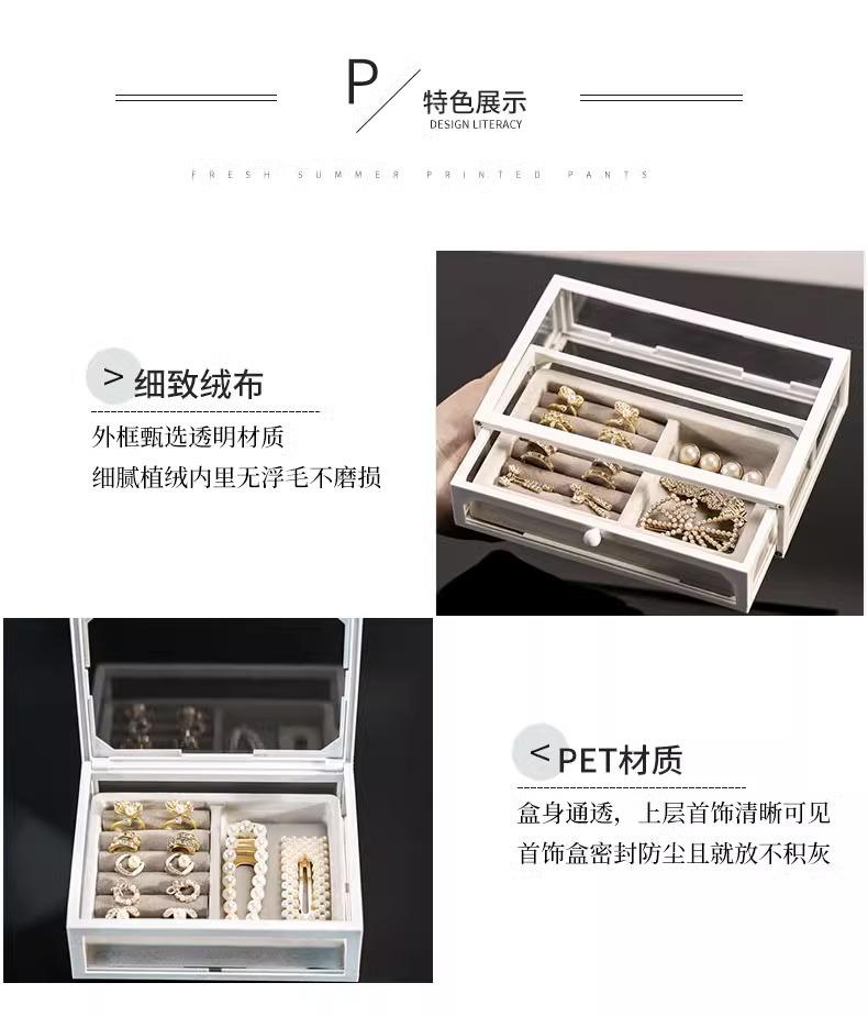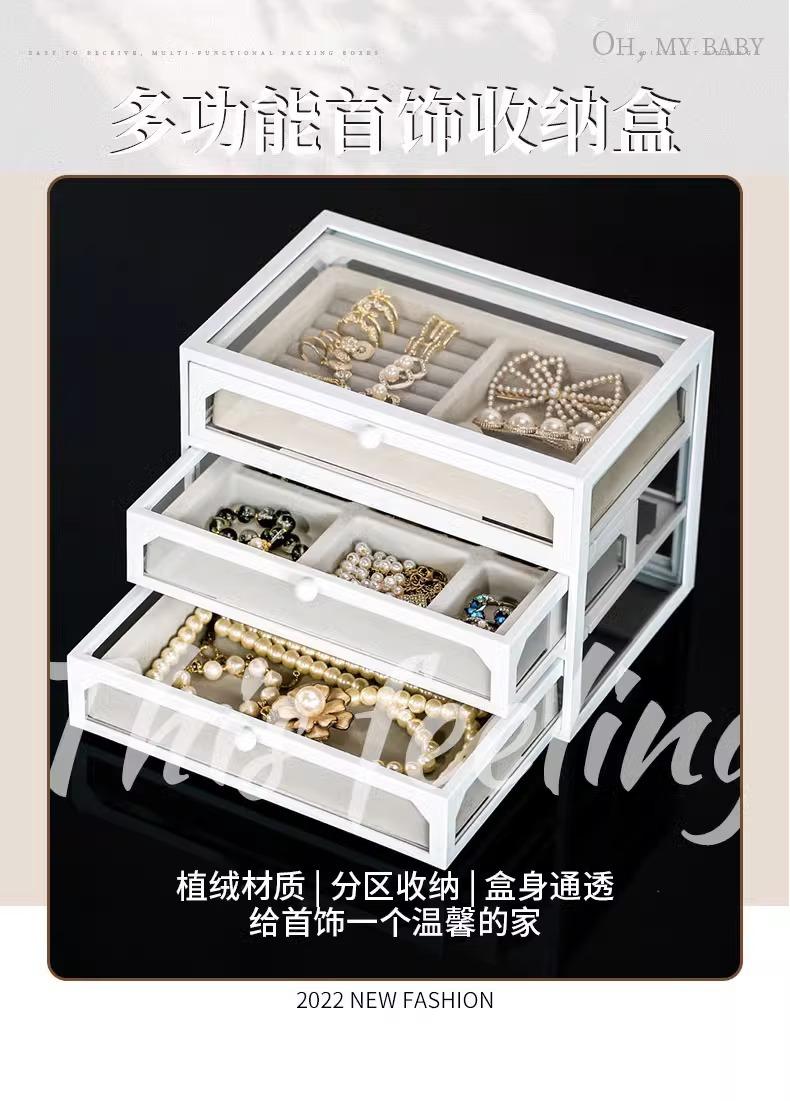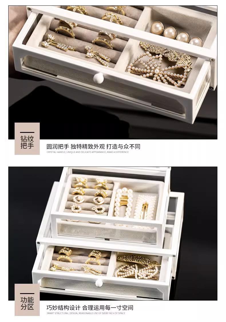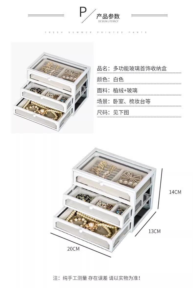 Caja de almacenamiento de joyas de vidrio, tocador de alta gama, cajón, armario, anillo, pendientes, pulsera antioxidante, caja a prueba de polvo