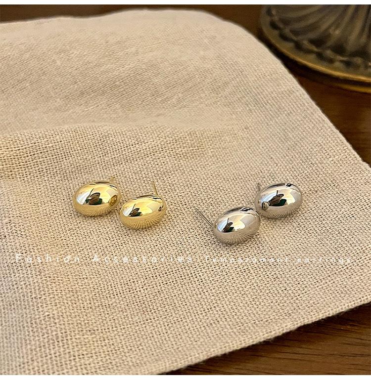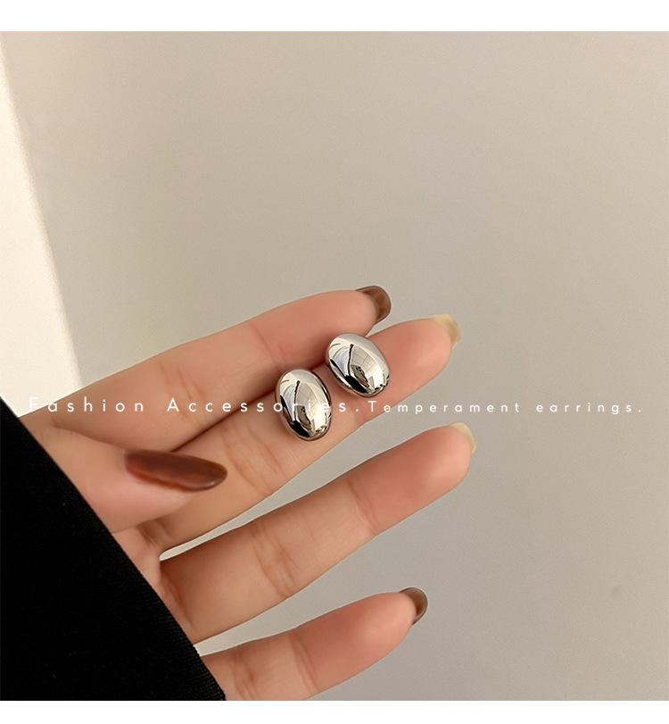 Pendientes sencillos con forma de frijol para mujer, con un temperamento dulce y moderno que combina con todo, pendientes de aguja de plata S925 con diseño de nicho a la moda.