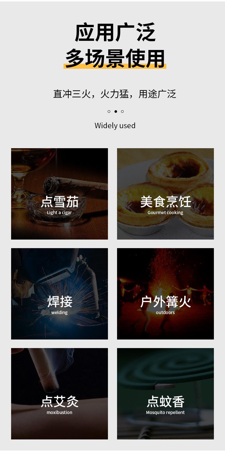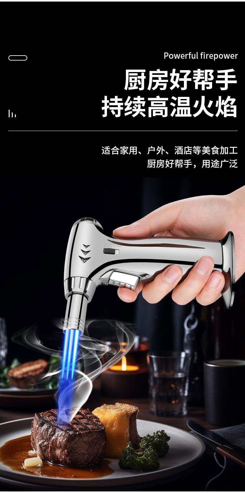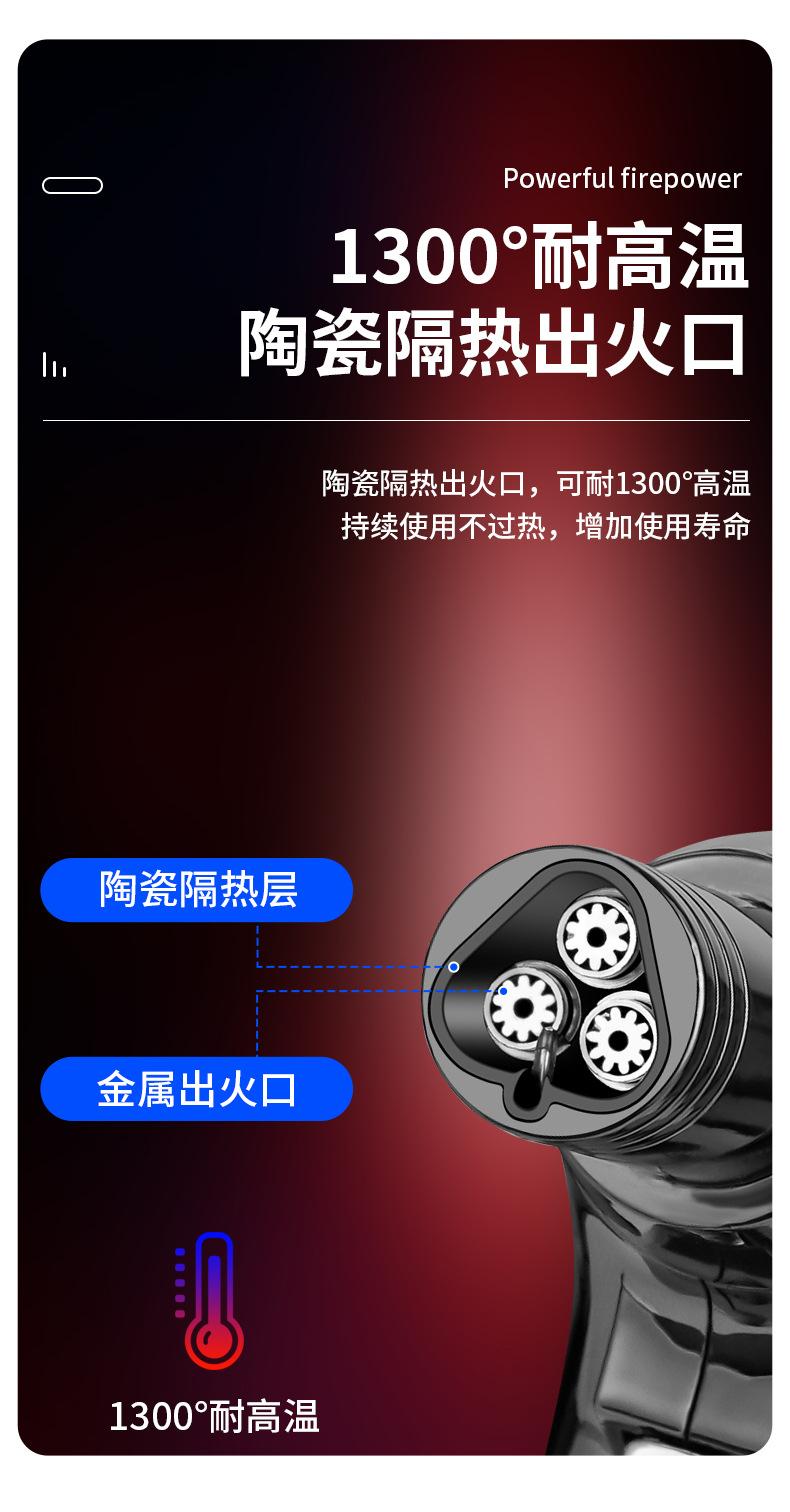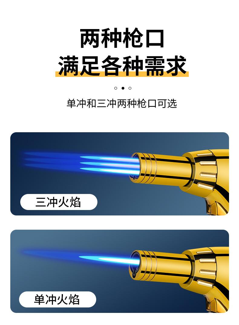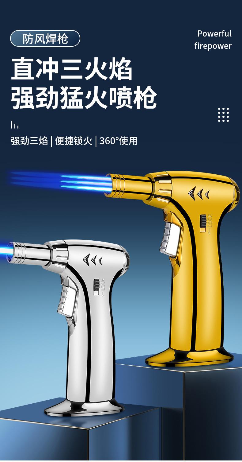 Nuevo encendedor de llama azul de tres fuegos de golpe directo, soplete, a prueba de viento, para puros, barbacoa, cocina exterior, portátil, soplete, transfronterizo