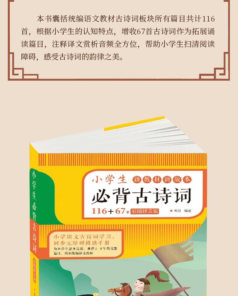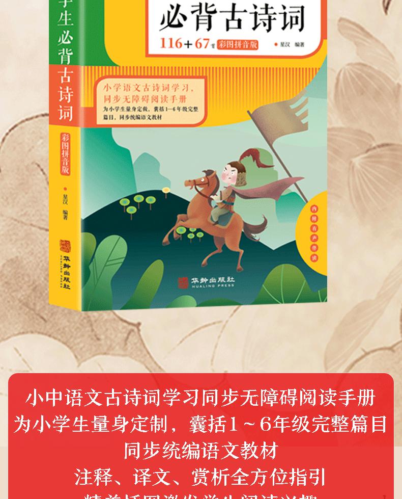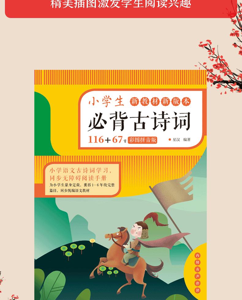 Los alumnos deben memorizar poesía antigua 116 67 figuras de color, edición Zhuyin, audio que acompaña la lectura del libro de texto PEP sincrónico, edición genuina