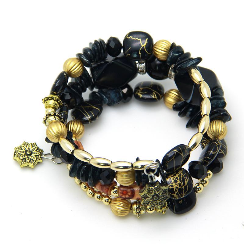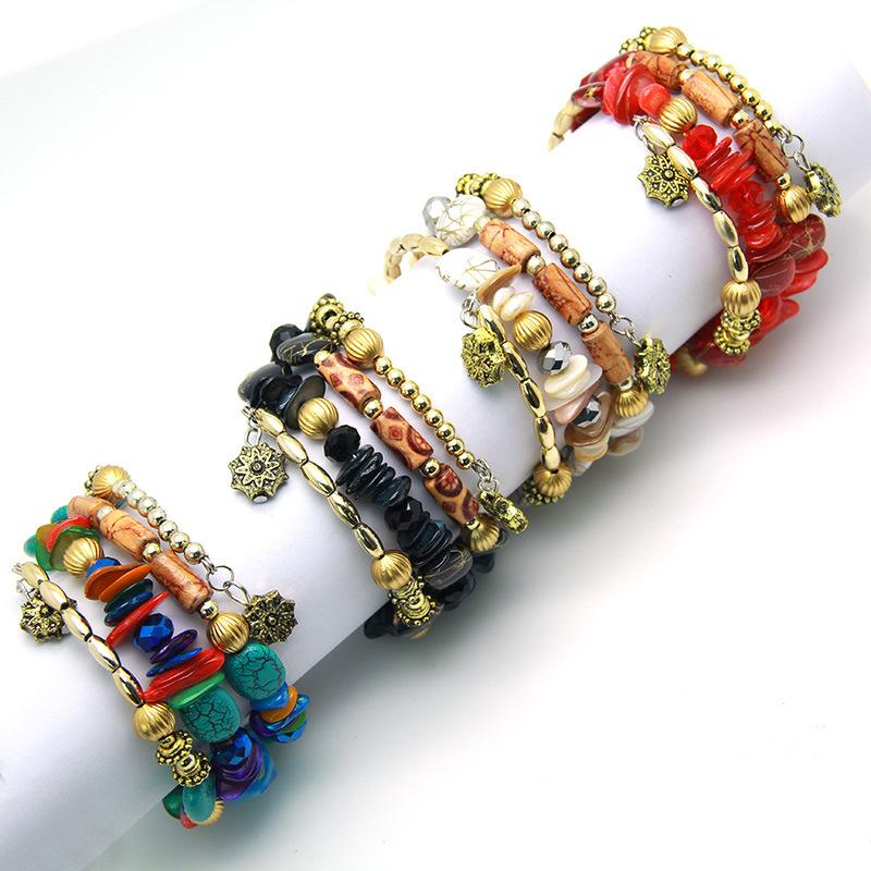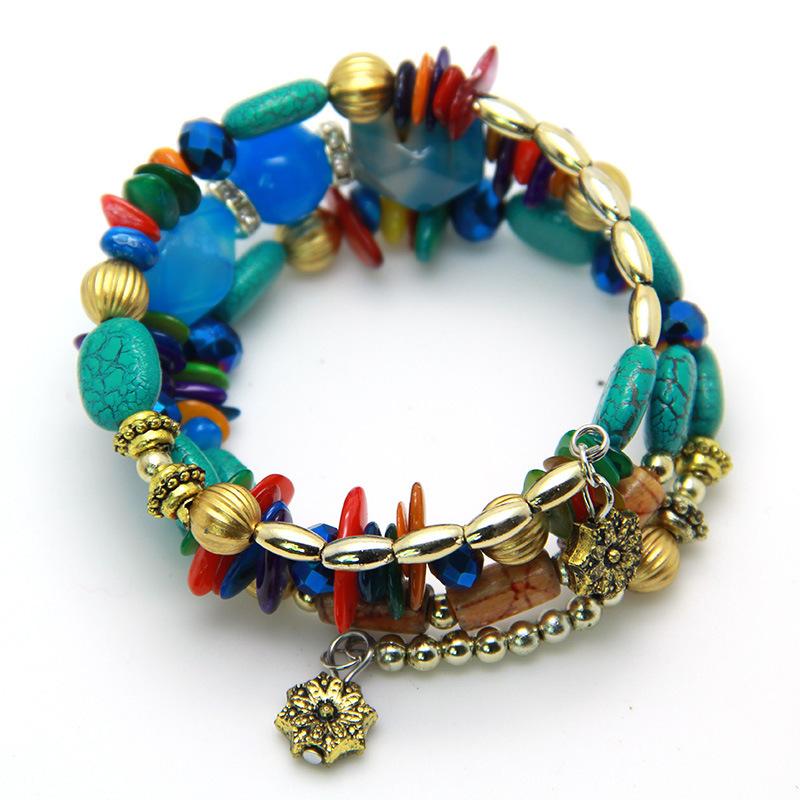 Suministro transfronterizo de pulsera europea y americana vintage imitación piedra natural turquesa ágata con cuentas multicapa enrollada generación cabello
