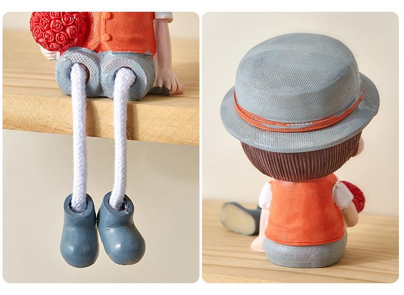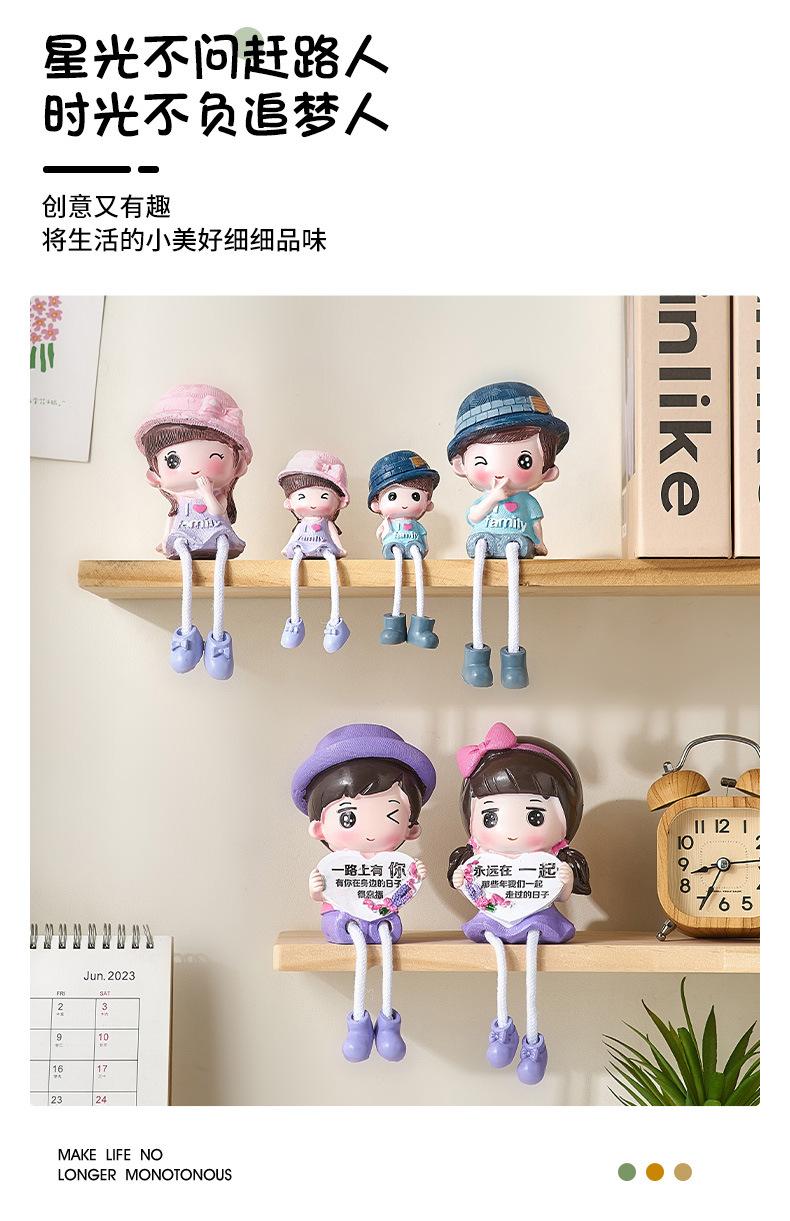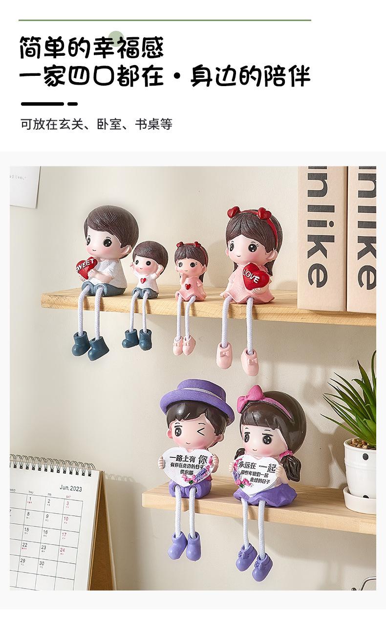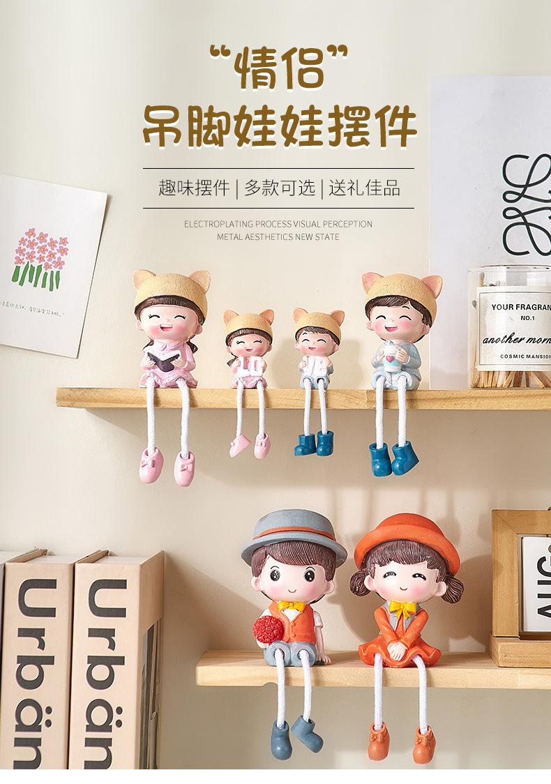 Muñeca de pareja de dibujos animados con pies colgantes, ideal como decoración para el hogar, el dormitorio o el estante, regalo para el Día del Niño o cumpleaños de una niña.