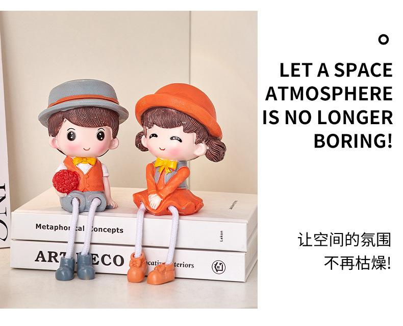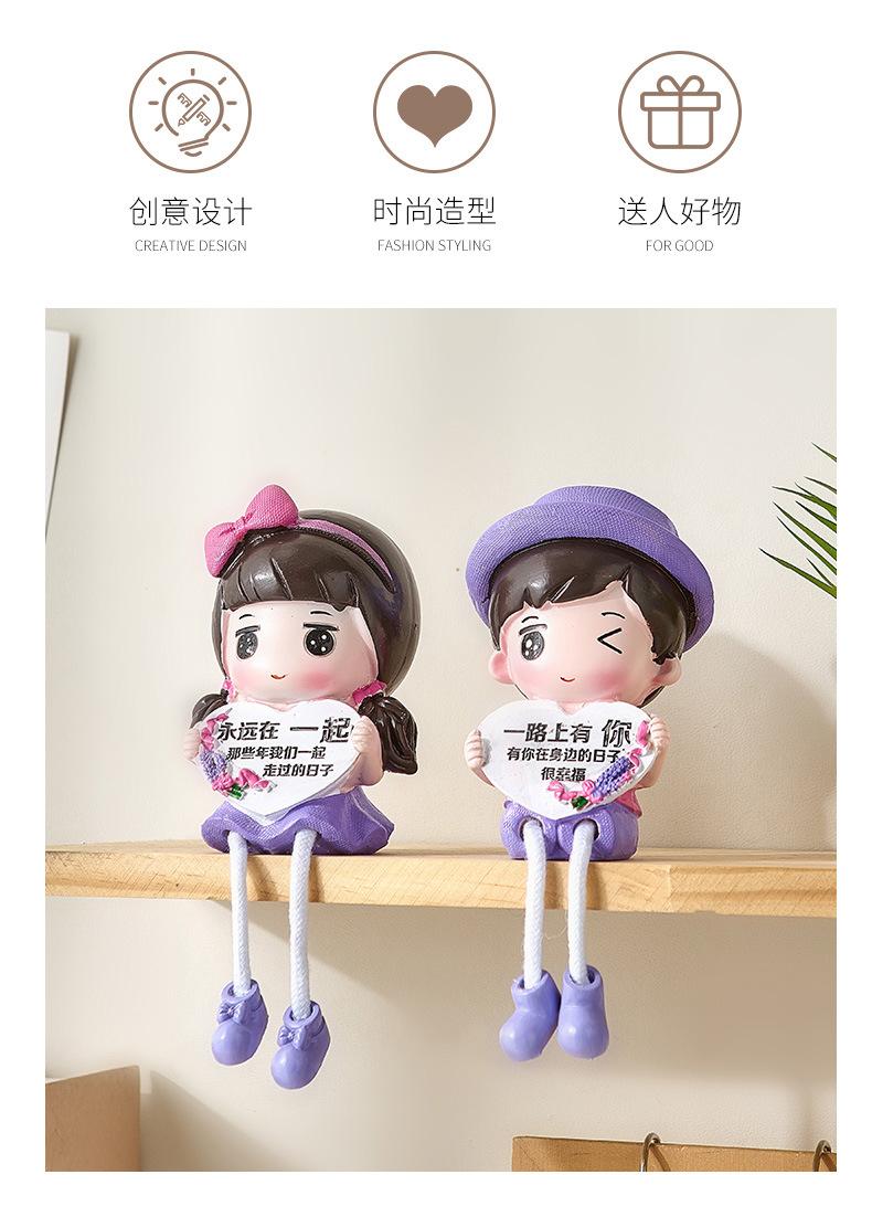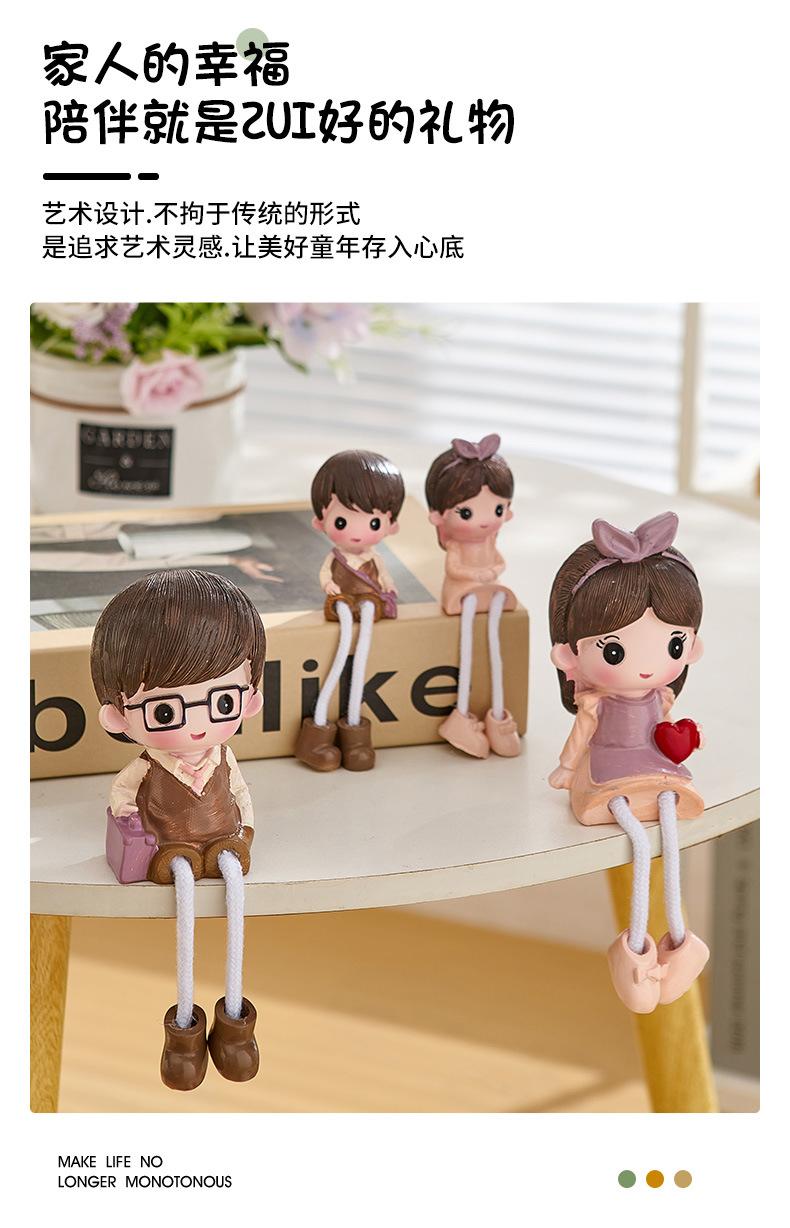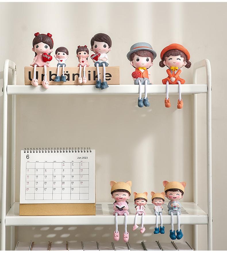 Muñeca de pareja de dibujos animados con pies colgantes, ideal como decoración para el hogar, el dormitorio o el estante, regalo para el Día del Niño o cumpleaños de una niña.