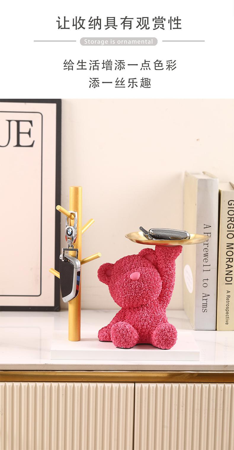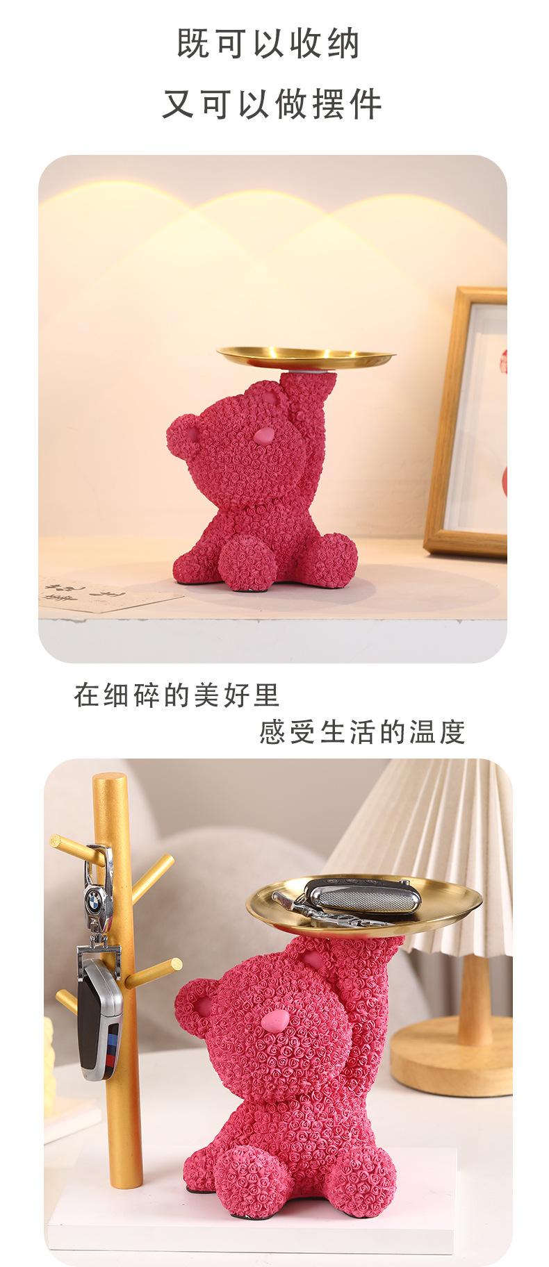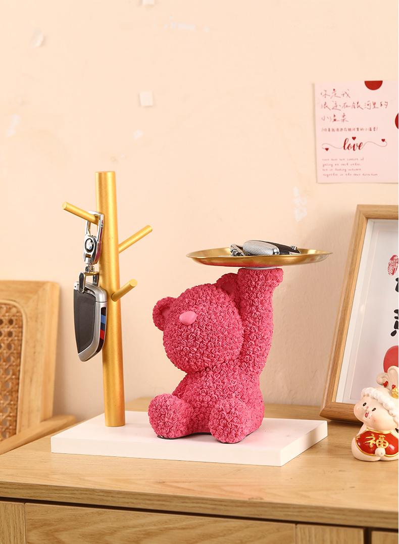 Bandeja de almacenamiento con adornos de oso de rosa Tanabata románticos y creativos para sala de estar, TV, vinoteca, dormitorio, escritorio