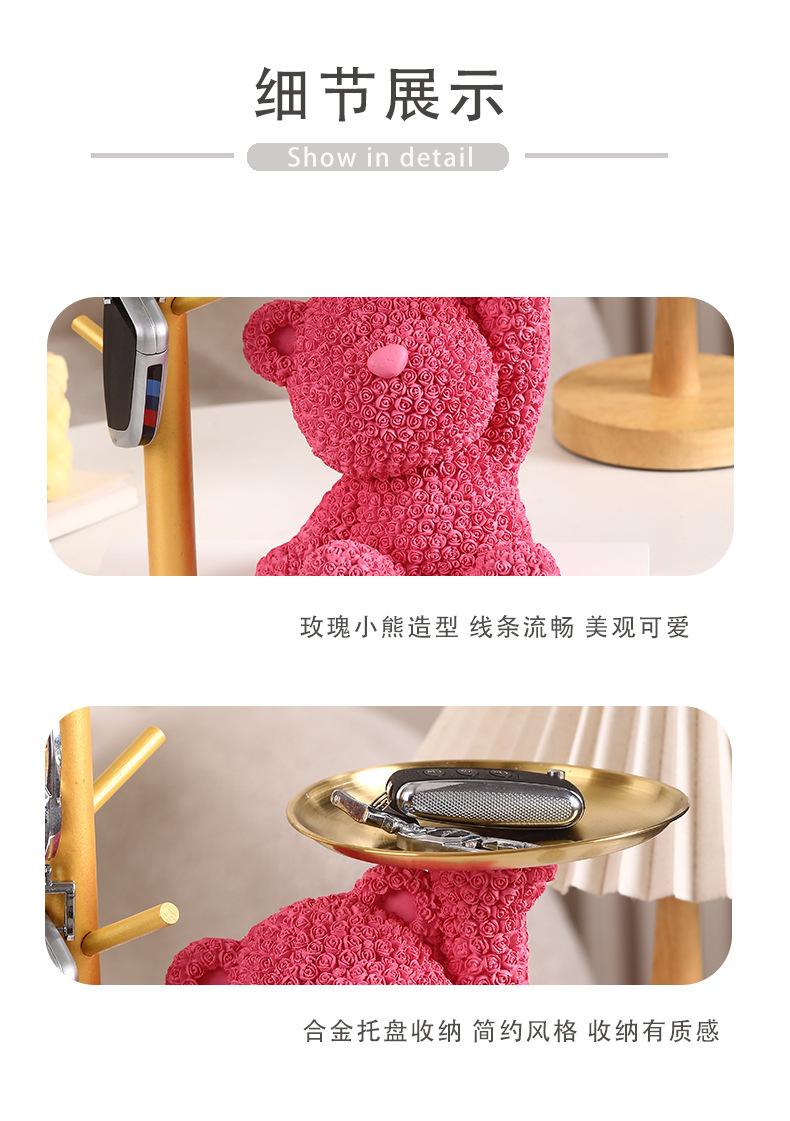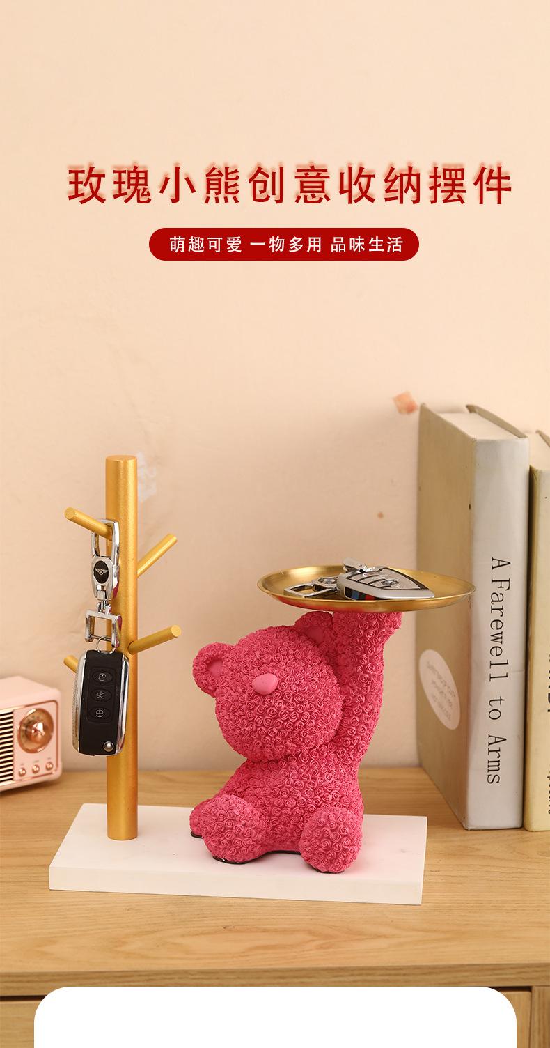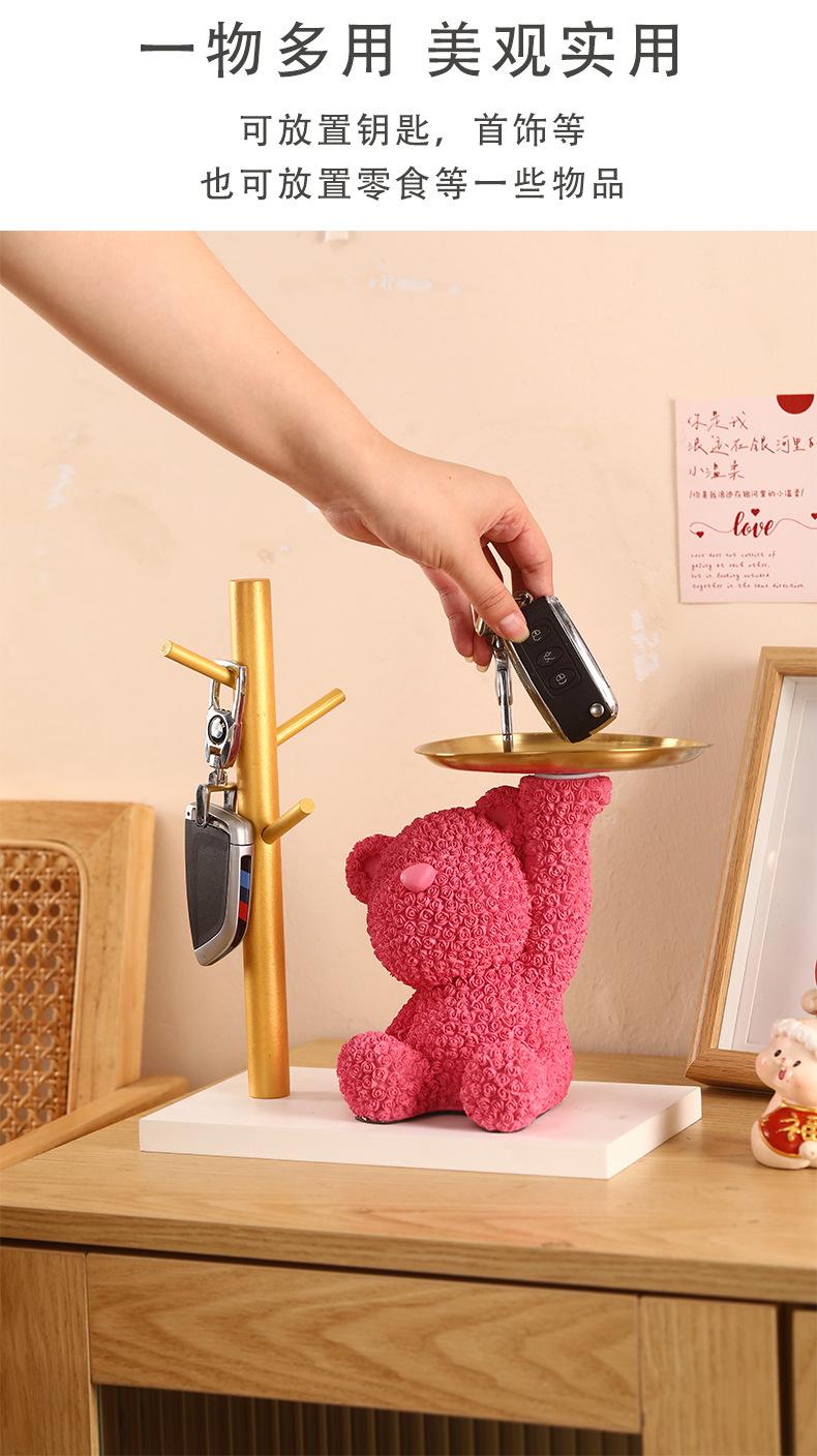 Bandeja de almacenamiento con adornos de oso de rosa Tanabata románticos y creativos para sala de estar, TV, vinoteca, dormitorio, escritorio