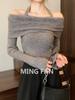 Suéter de punto con costuras de encaje y hombros descubiertos para mujer, novedad de verano 2024