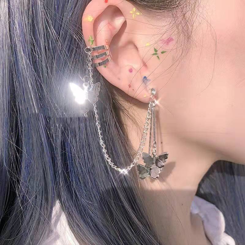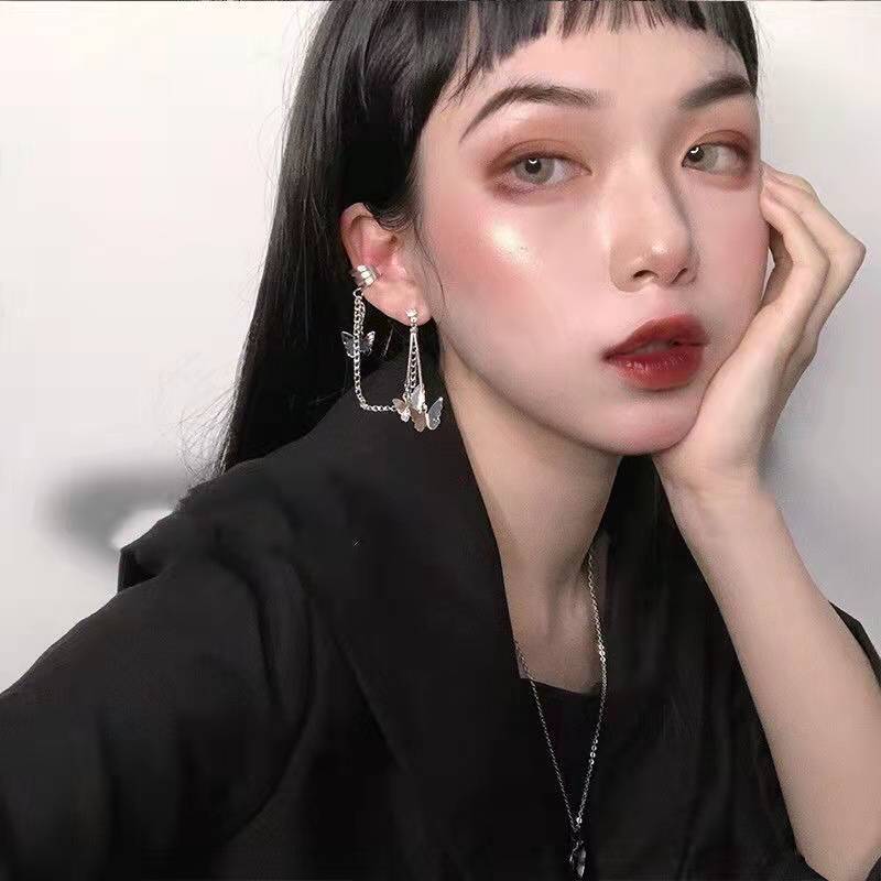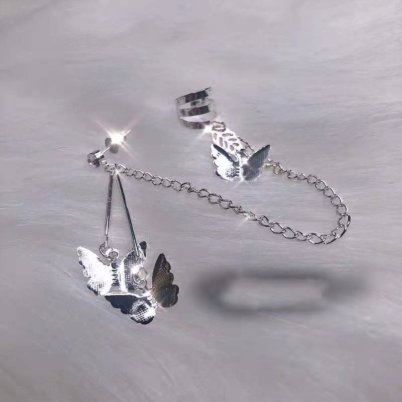 Hibiscus Chen - Versión coreana de pendientes de mariposa de acero de titanio para mujer, pendientes de viento dulce y fresco, pendientes de clip para la oreja de una sola pieza, joyería