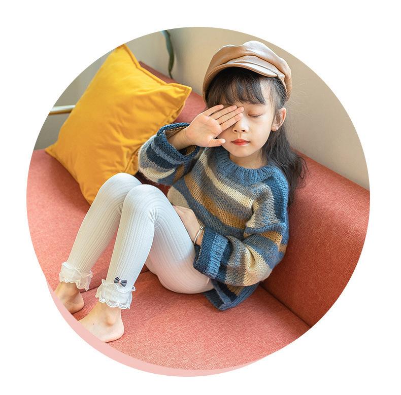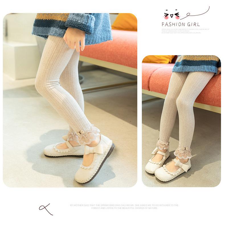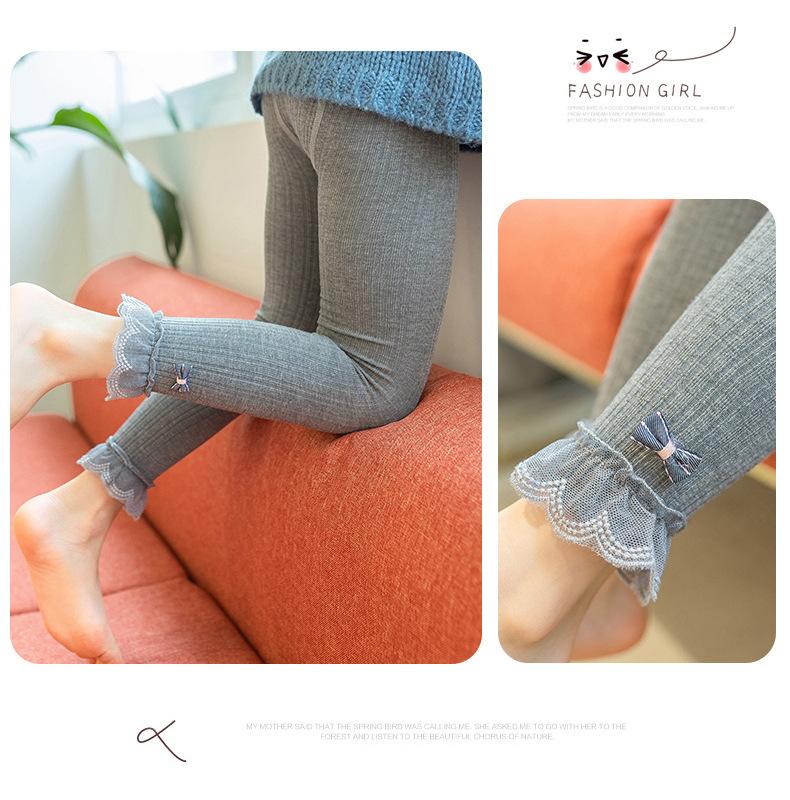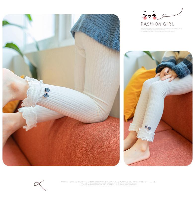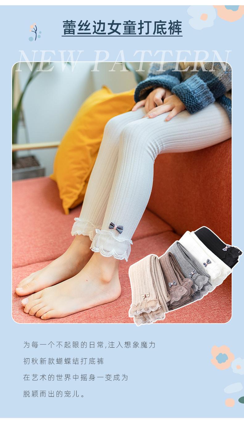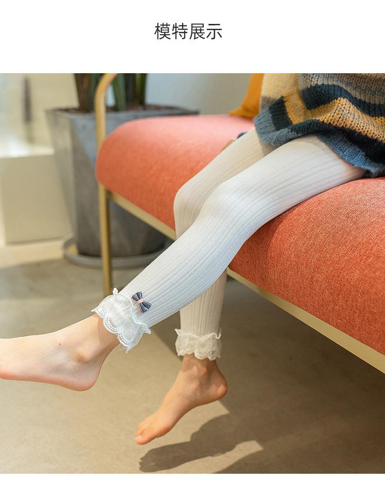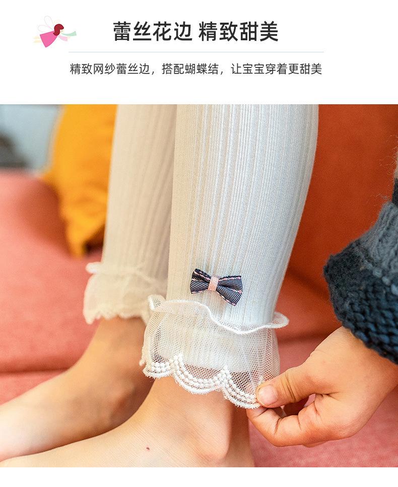 Leggings para niños 2021 primavera pantimedias de nueve puntos fabricantes borde de encaje lazo niñas pantimedias de bebé