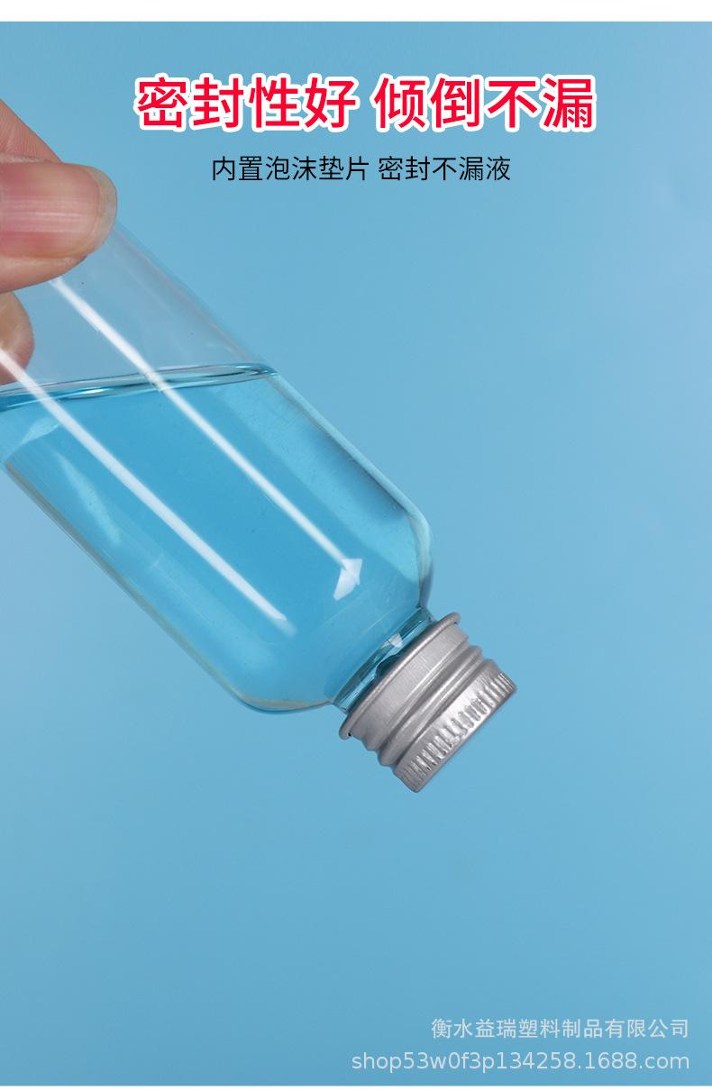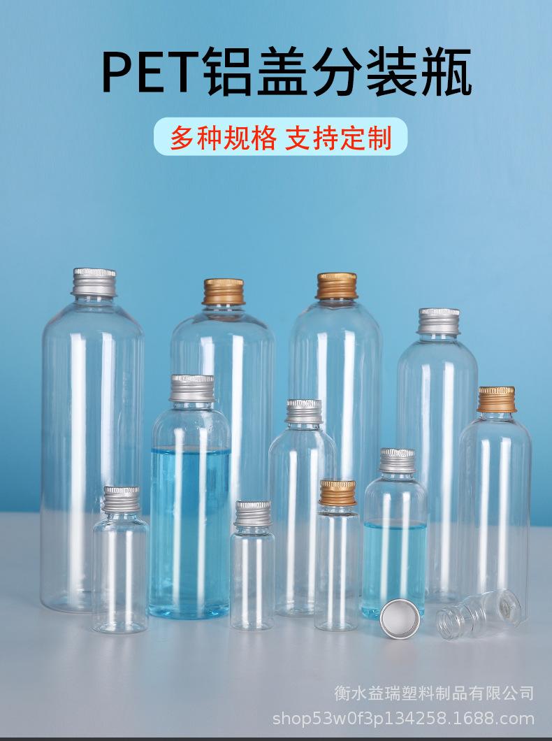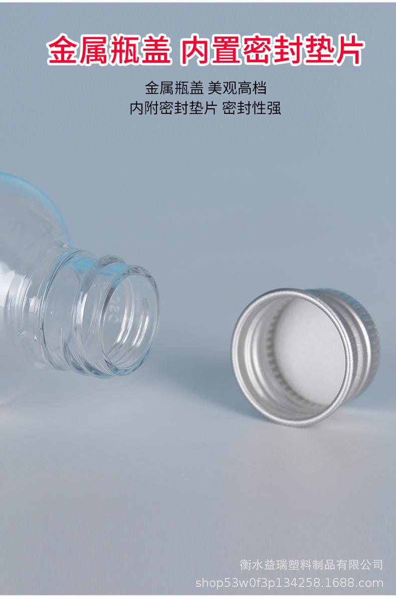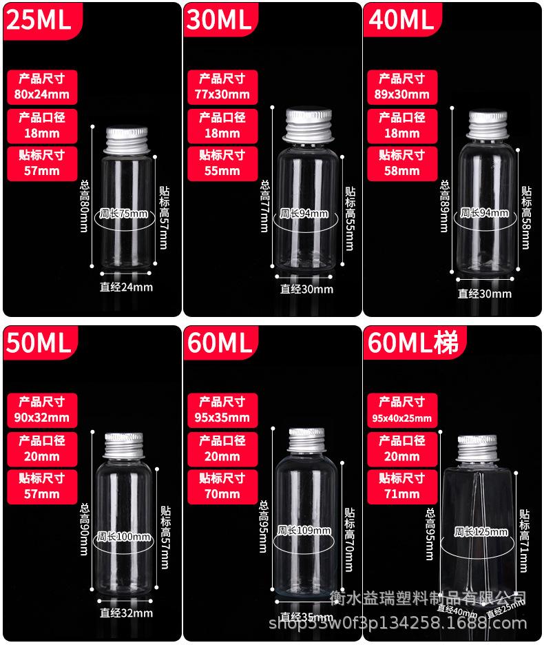 Botella de plástico PET con tapa de aluminio transparente, 20 ml y 25 ml, color dorado y plateado, sellada con líquido, de boca pequeña, venta al por mayor de fábrica