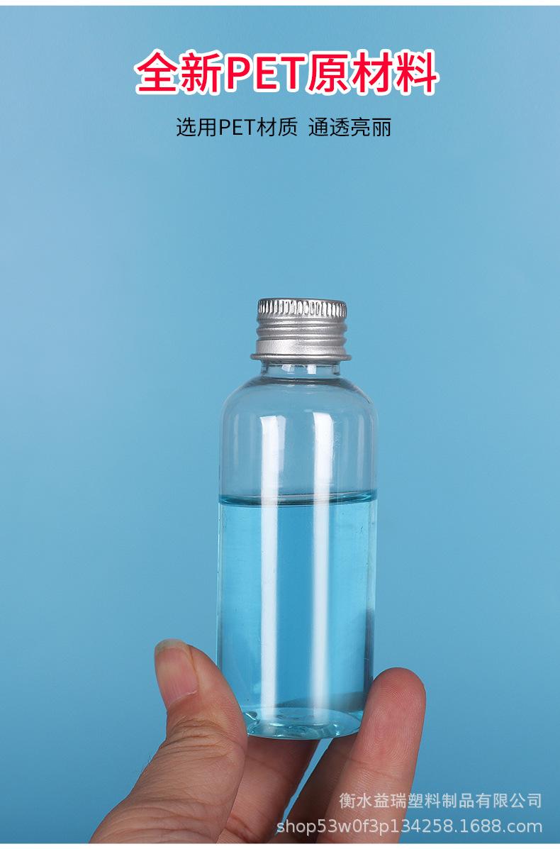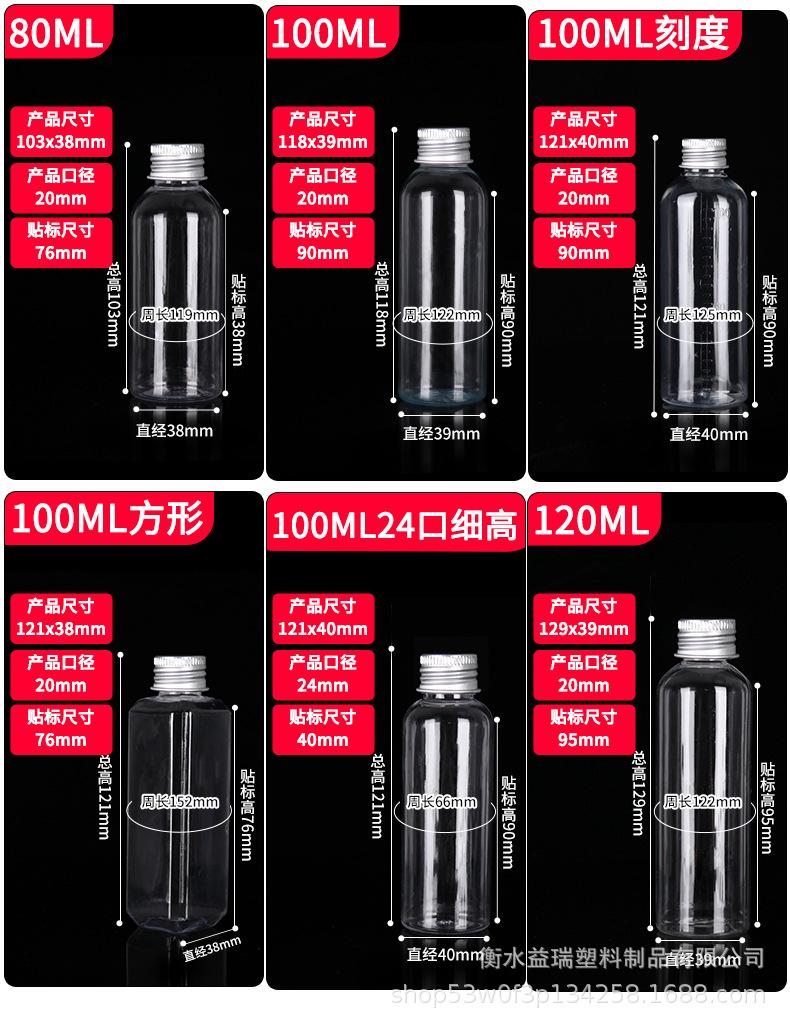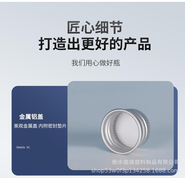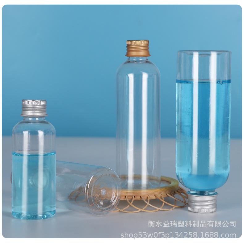 Botella de plástico PET con tapa de aluminio transparente, 20 ml y 25 ml, color dorado y plateado, sellada con líquido, de boca pequeña, venta al por mayor de fábrica