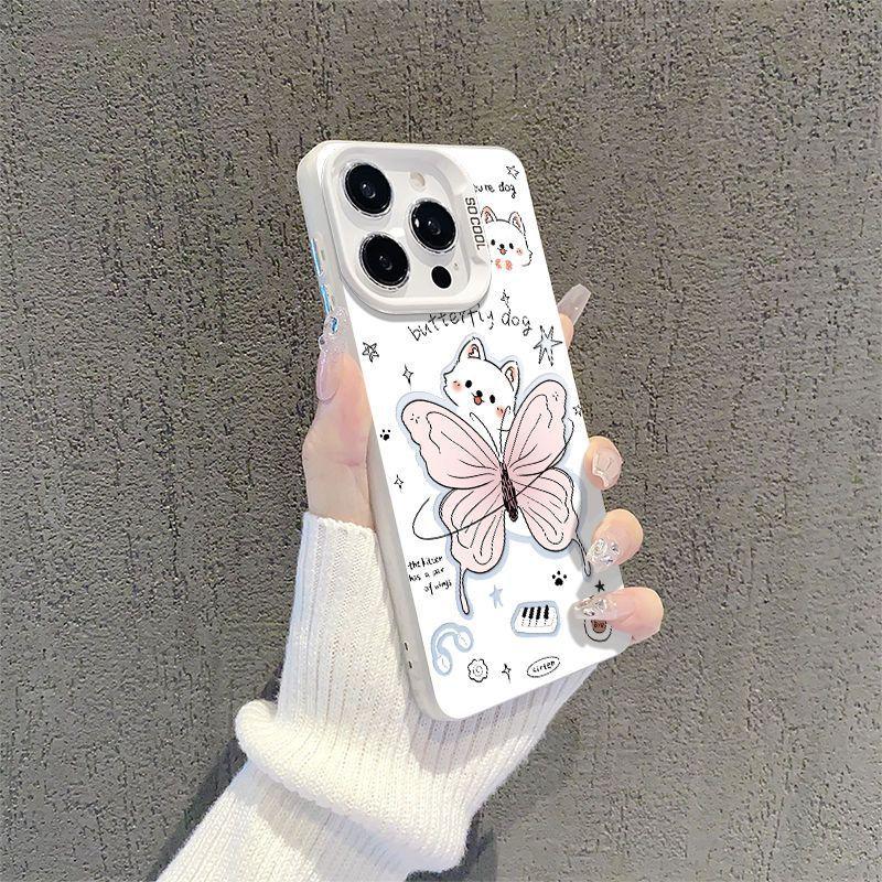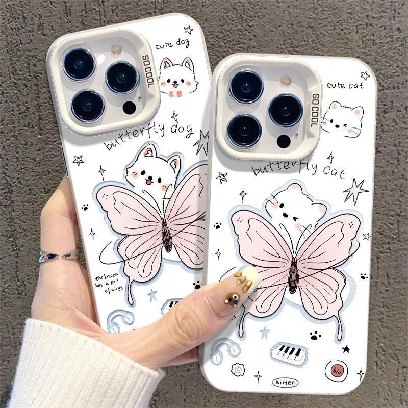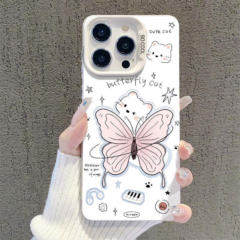 Estuche con diseño de mariposa plateada y gatito para Apple Pro Max 16, paquete completo, XS Max Frosted XR, 14/13/12/11